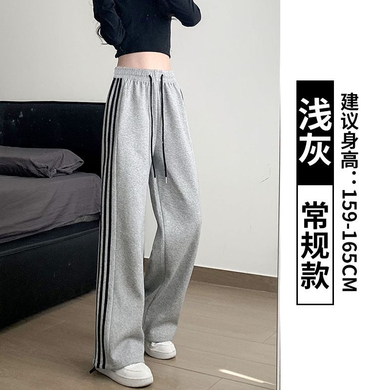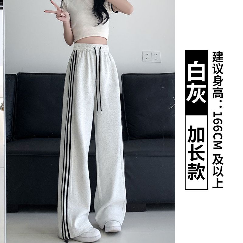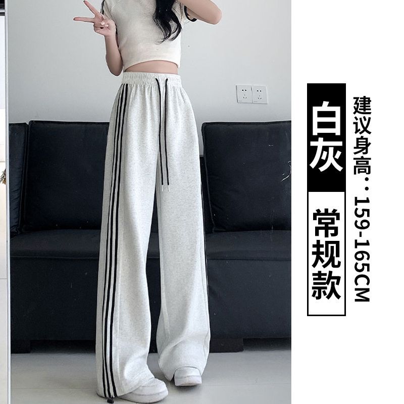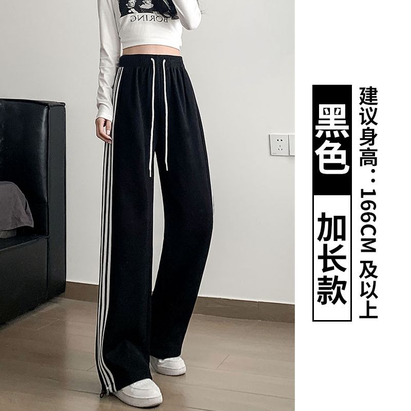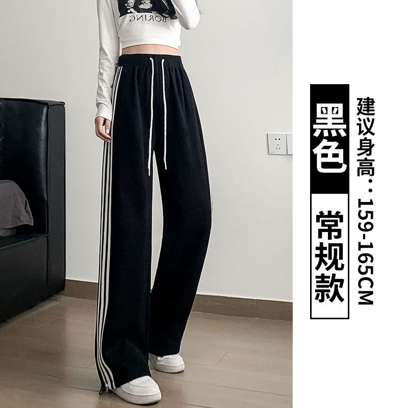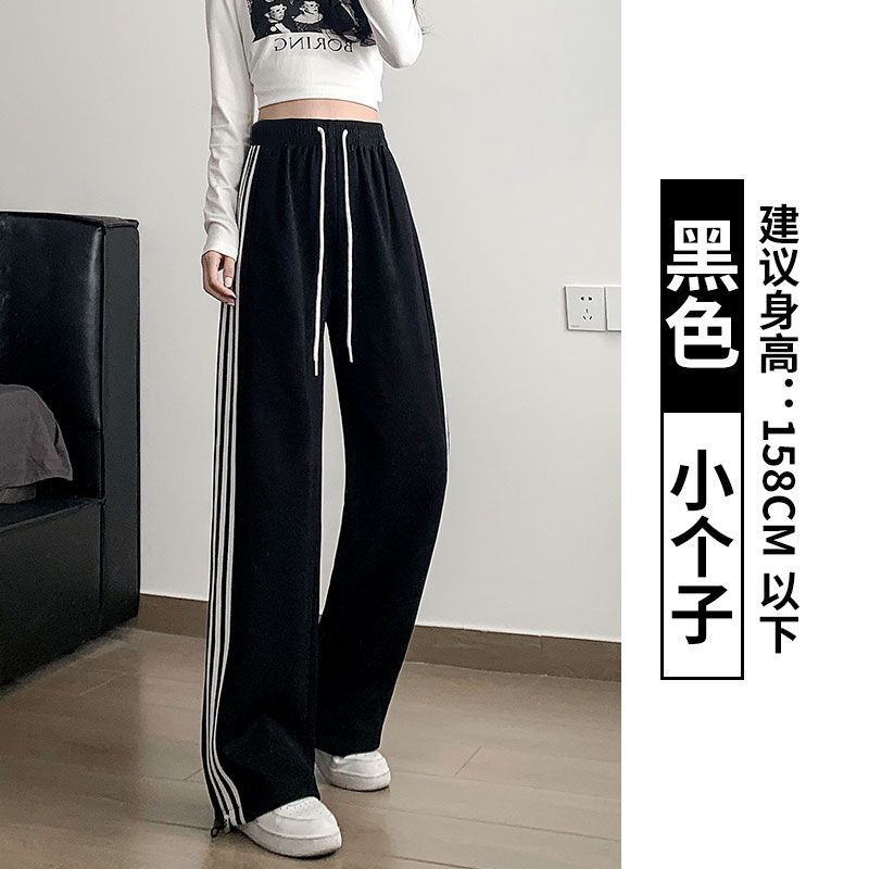 ZIMMUR运动裤女2024新款宽松显瘦条纹休闲阔腿裤百搭束脚裤女ins