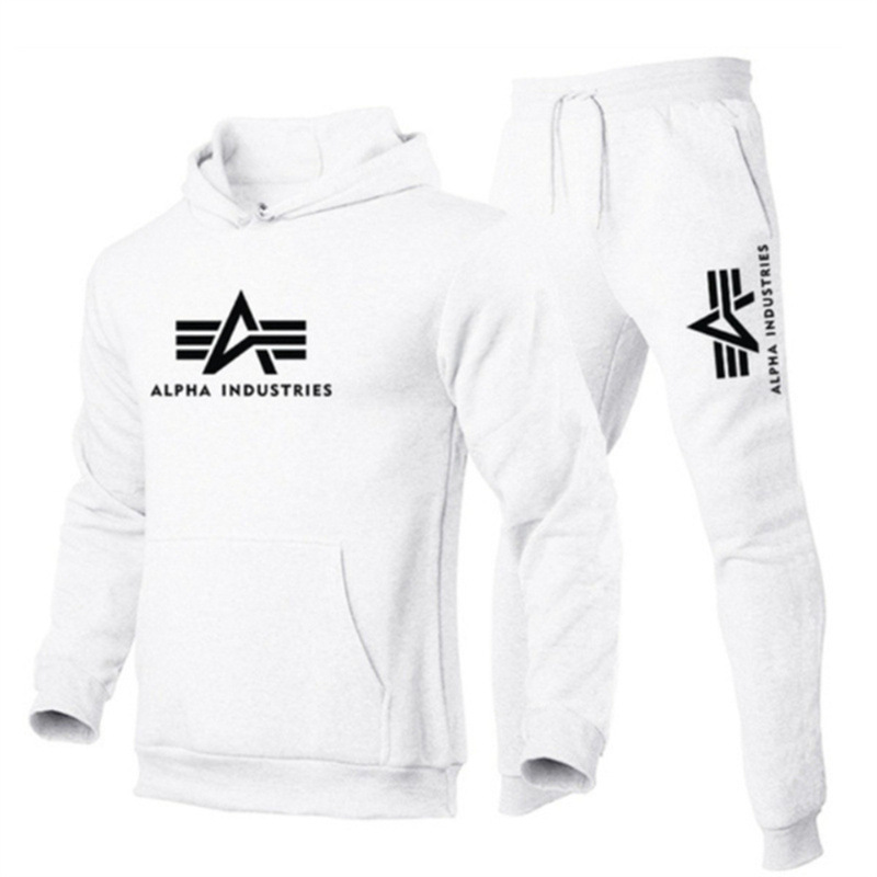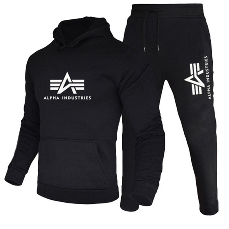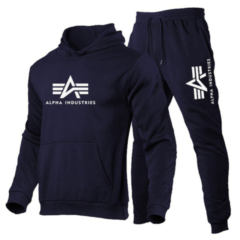 2024新款潮牌印花休闲运动卫衣男套装秋冬加绒男士套头连帽衫服装