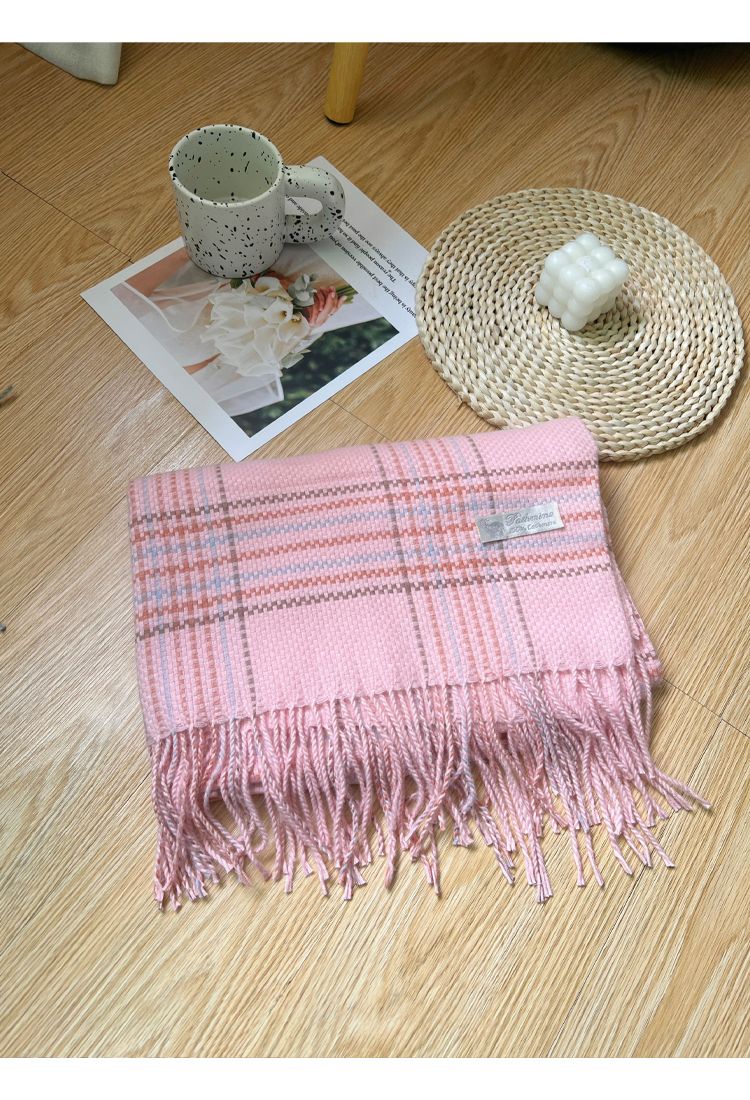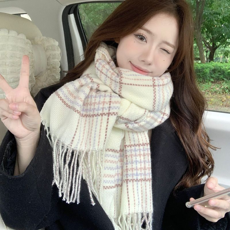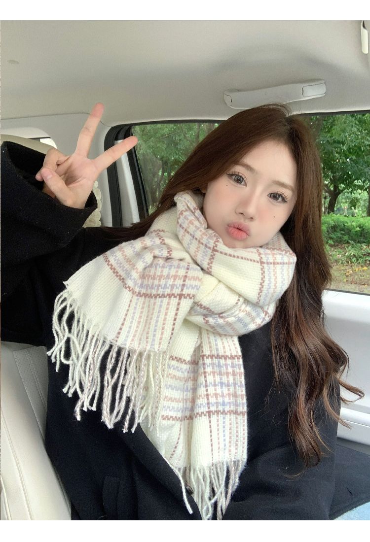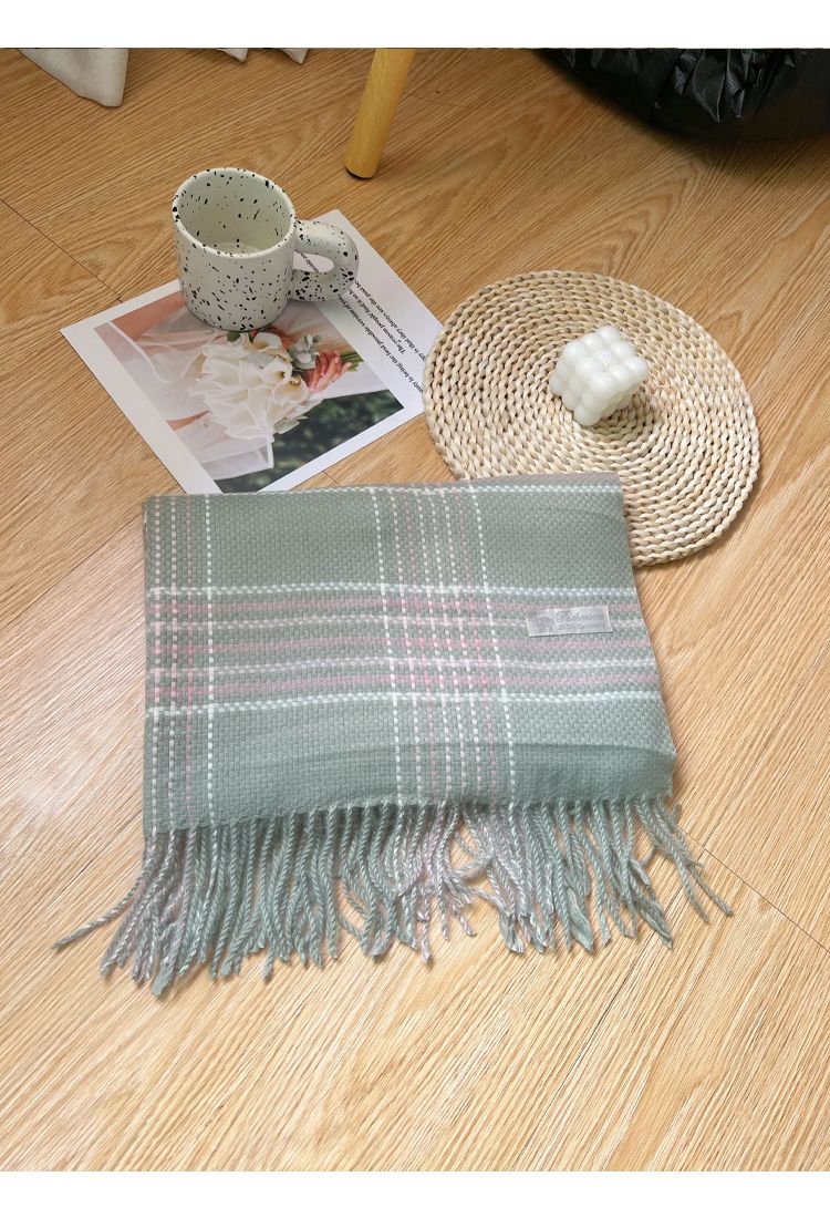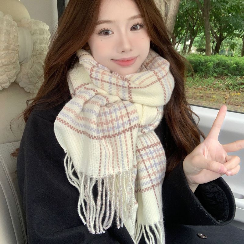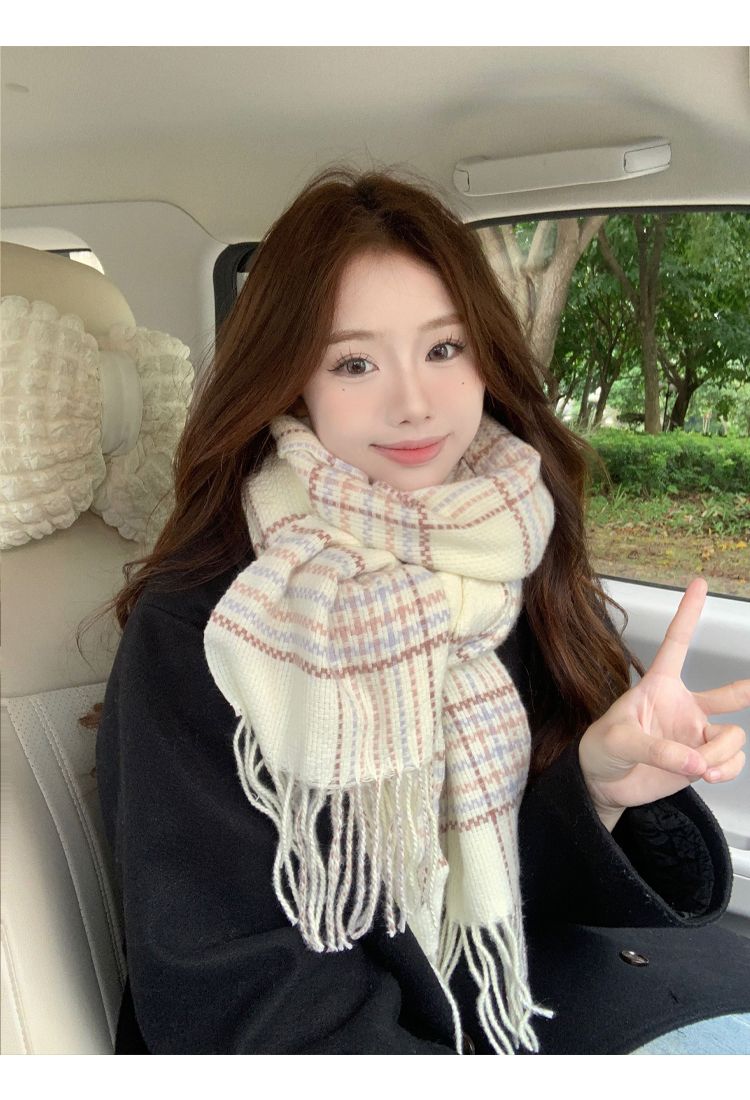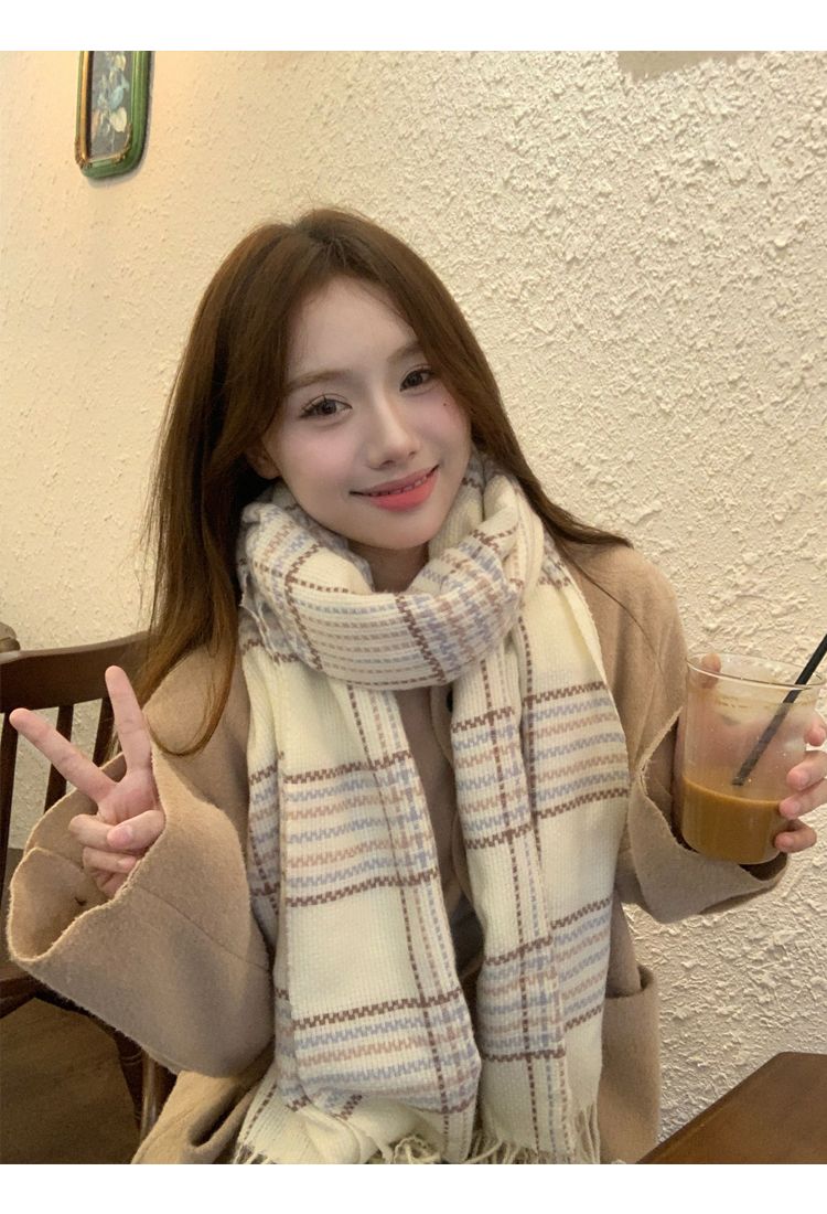 高级感秋冬季仿羊绒韩版格子围巾女冬季2023新款百搭学生保暖围脖