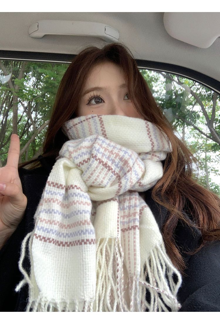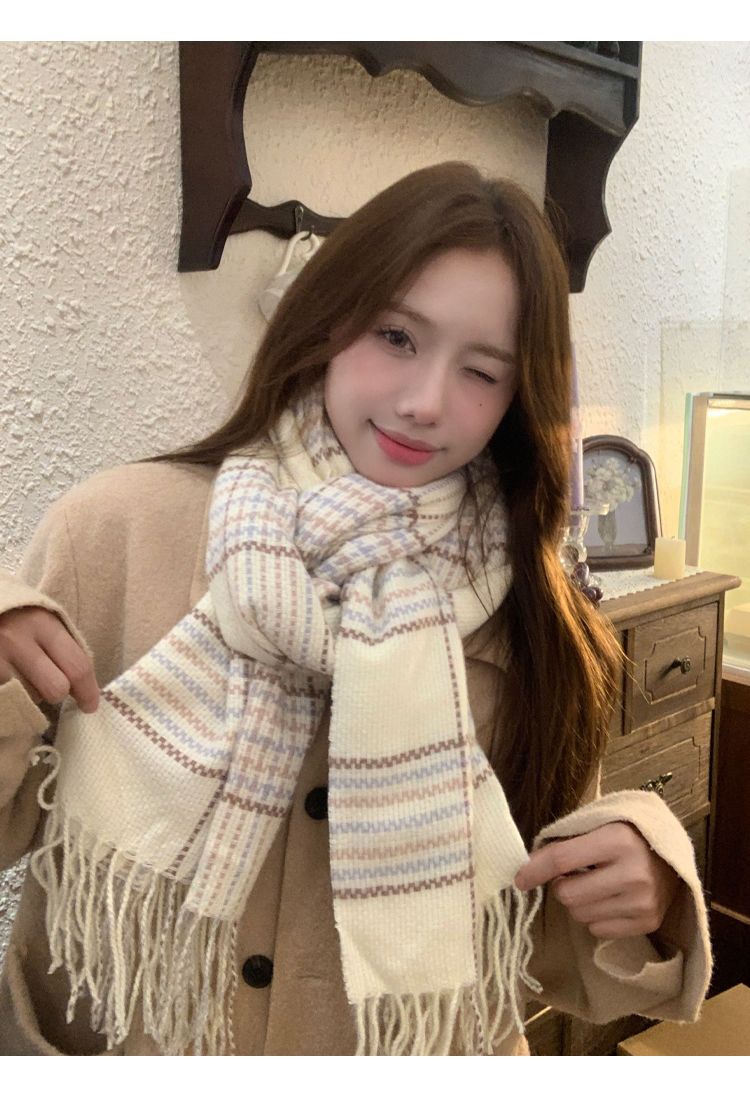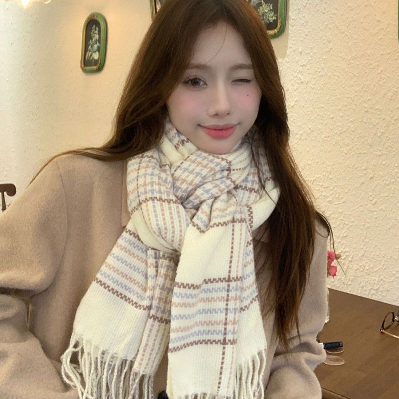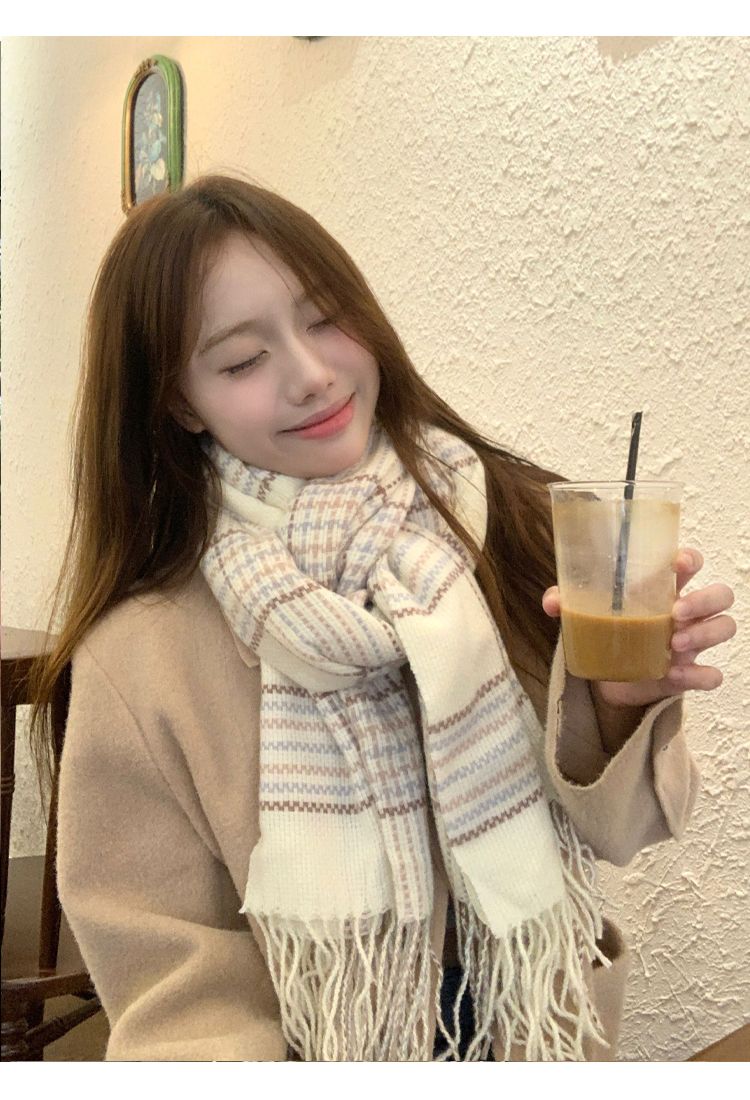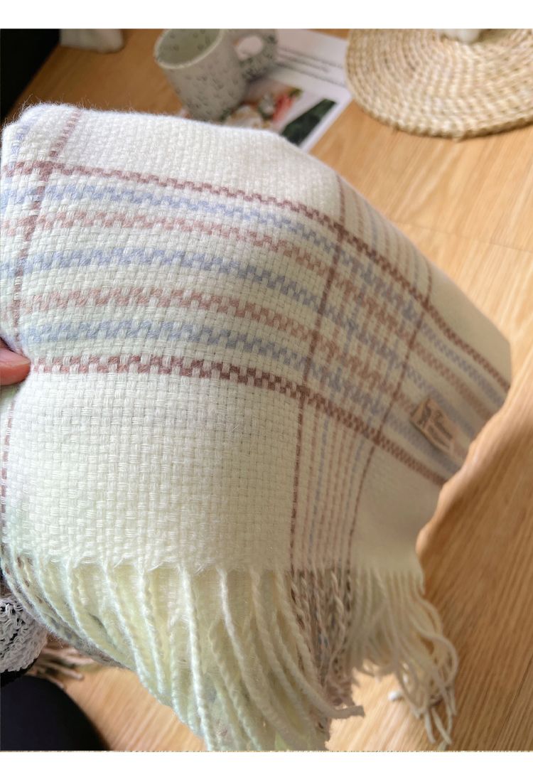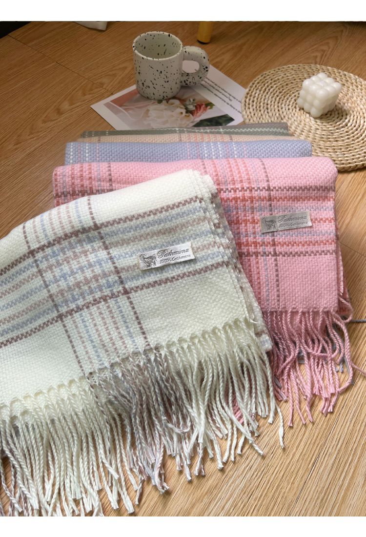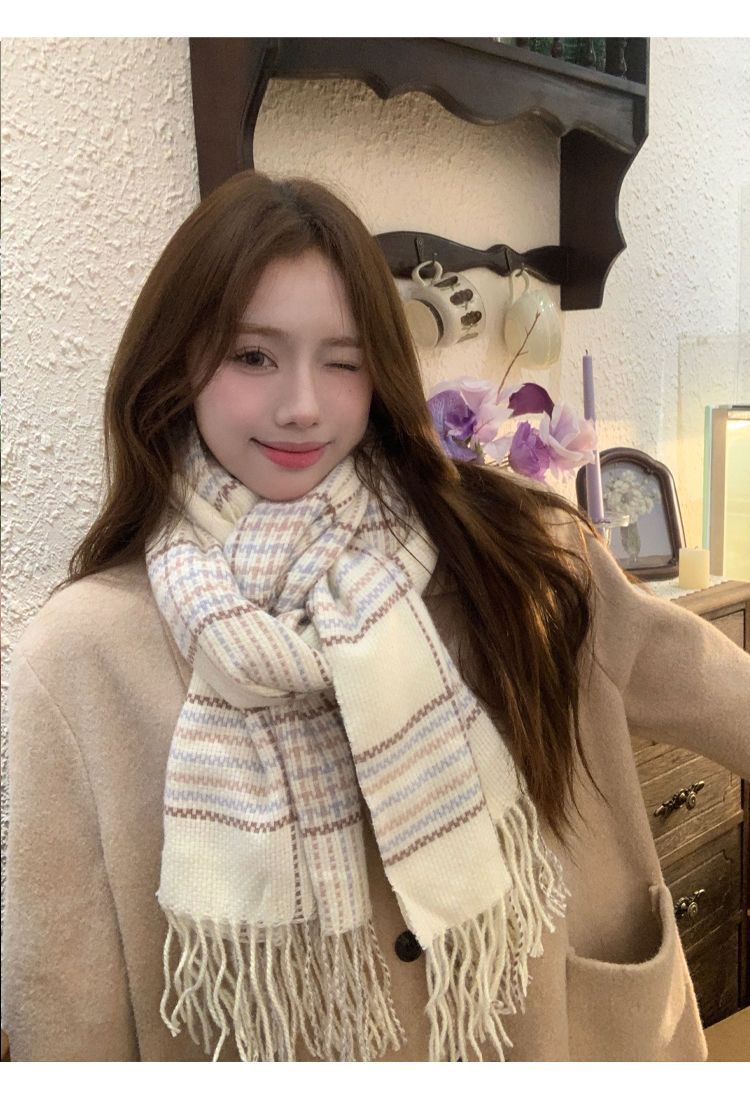 高级感秋冬季仿羊绒韩版格子围巾女冬季2023新款百搭学生保暖围脖