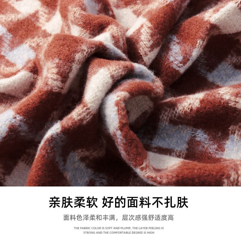 回力韩系围巾氛围冬季高级新款加厚保暖围脖格子学生披肩百搭情侣