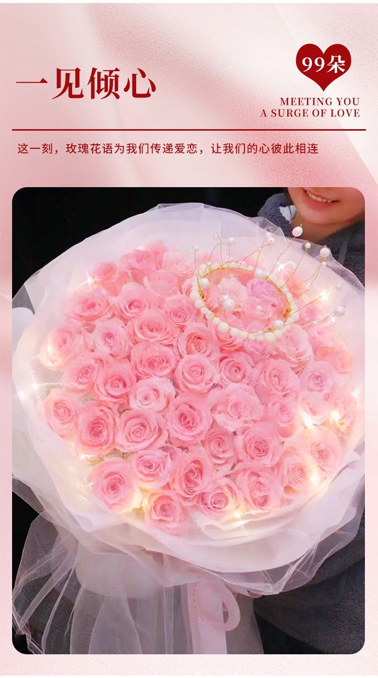 | 52 pink rose + starry crown(52朵粉玫瑰+满天星皇冠) | USD $34.62 | 99999 piece available |