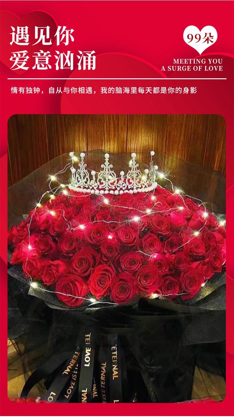 | 99 red roses + starry crown(99朵红玫瑰+满天星皇冠) | USD $40.14 | 99999 piece available |