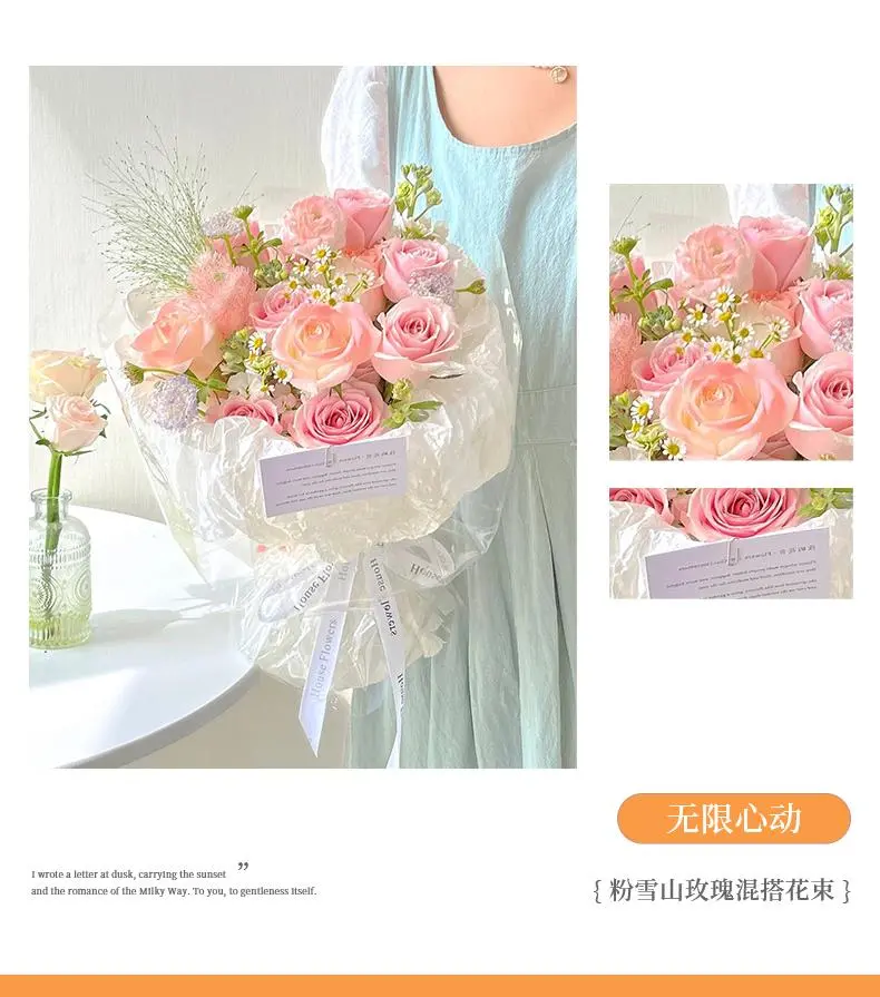 | [infinite heartbeat] pink snow mountain rose mixed bouquet(【无限心动】粉雪山玫瑰混搭花束) | USD $21.55 | 99999 piece available |