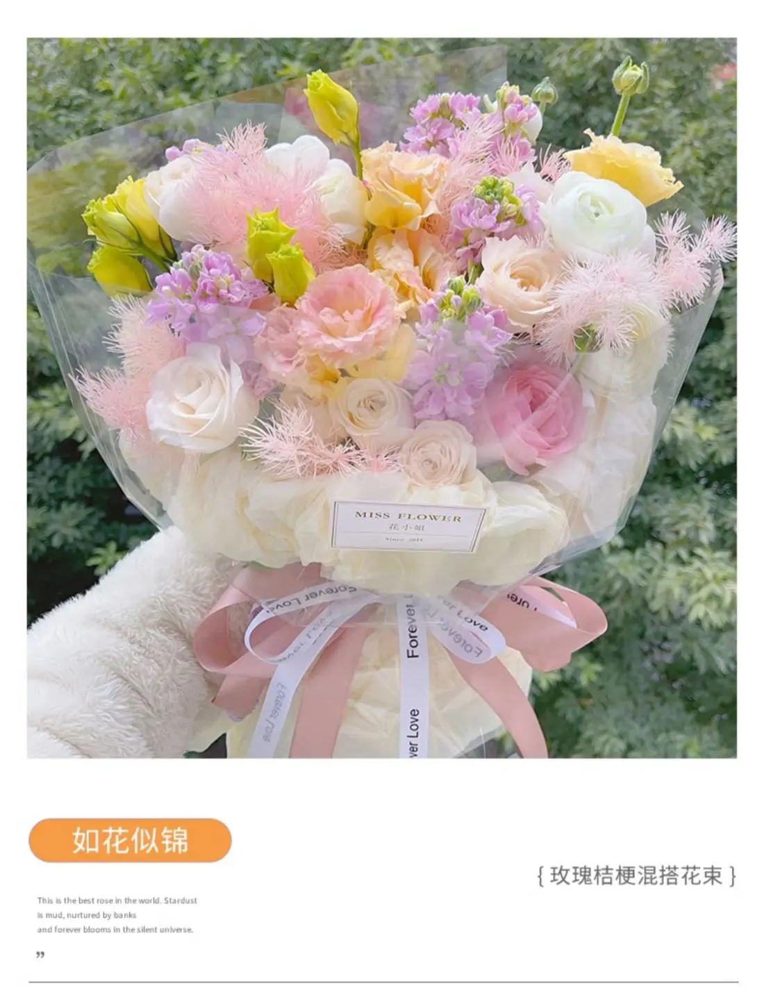 | [bright flower pattern] rose platycodon grandiflorum mixed bouquet(【如花似锦】玫瑰桔梗混搭花束) | USD $24.68 | 99999 piece available |
