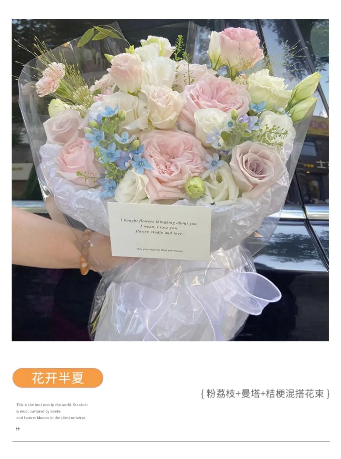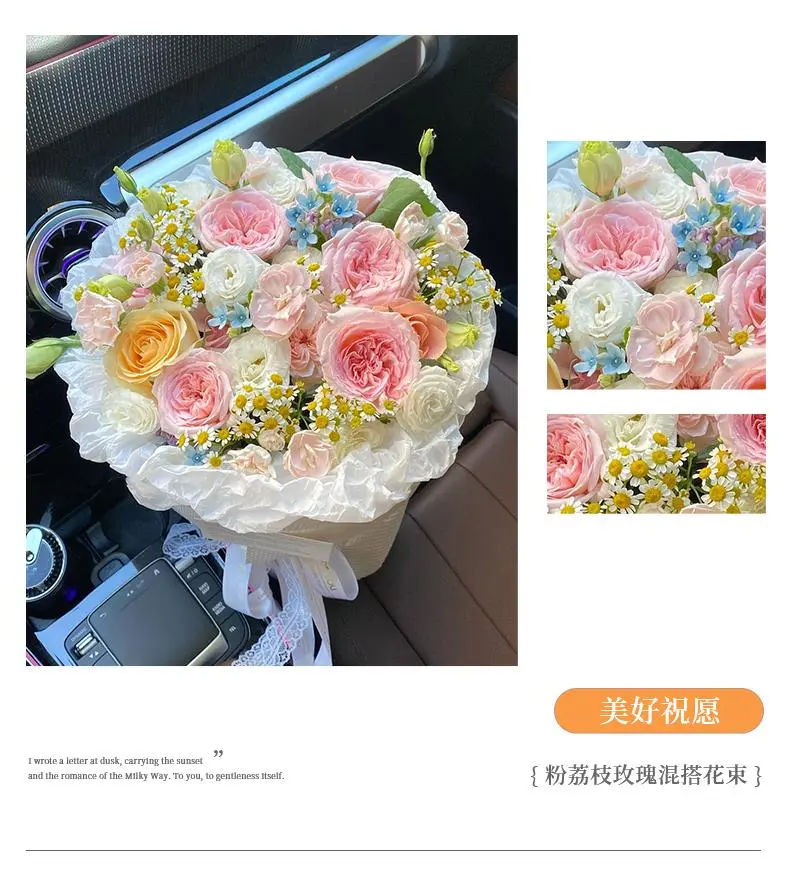 | [good wishes] pink litchi rose mixed bouquet(【美好祝愿】粉荔枝玫瑰混搭花束) | USD $24.31 | 99999 piece available |