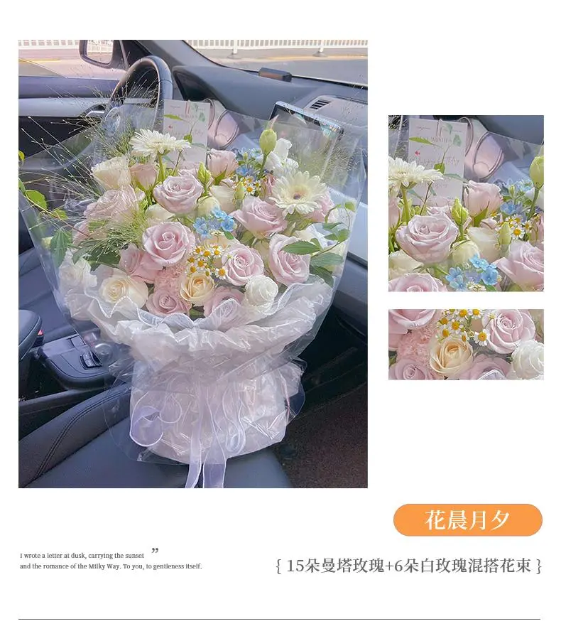| [morning and evening] 15 manta roses +6 white rose mixed bouquet(【花晨月夕】15朵曼塔玫瑰+6朵白玫瑰混搭花束) | USD $26.15 | 99999 piece available |