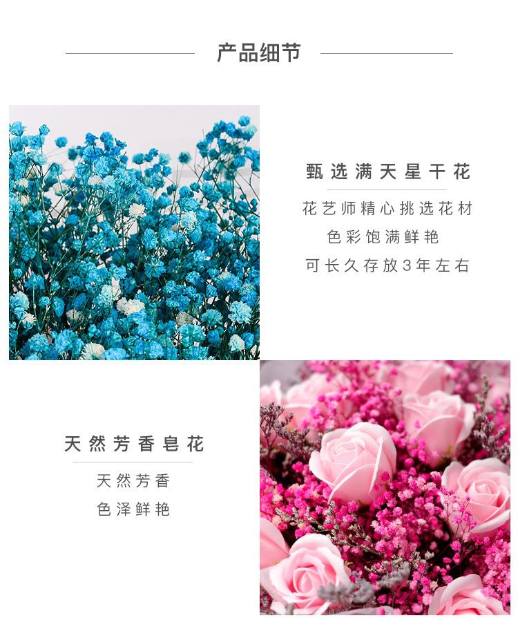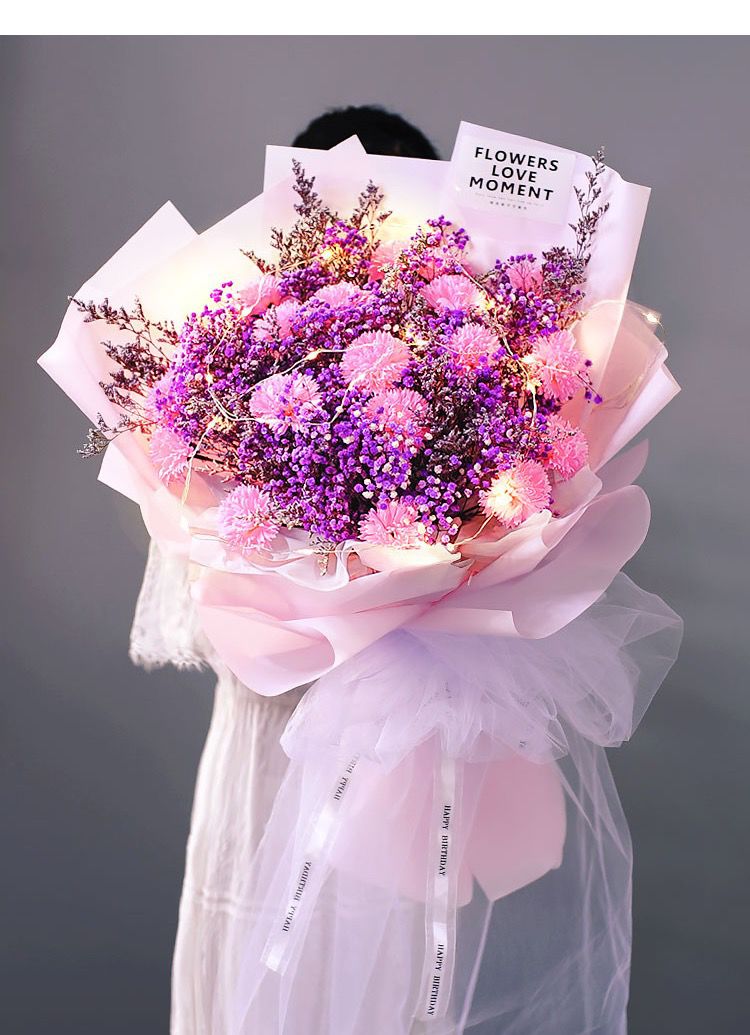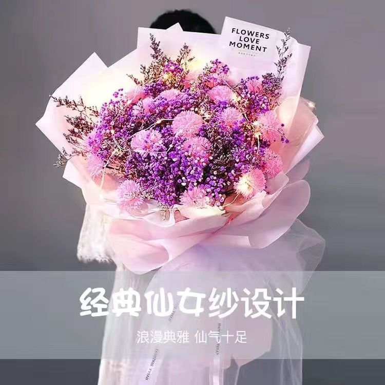 满天星真花干花永生花束送女友老婆闺蜜生日七夕情人节礼物送情侣
