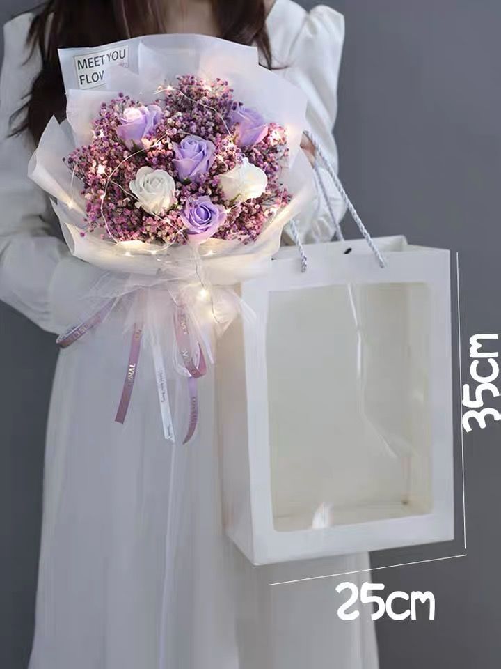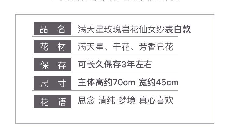 | 6 pink and white rose pink starry sky + gift bag + lighting chain(6朵粉白玫瑰 粉满天星 +礼袋+灯串) | USD $6.6 | 99999 piece available |
