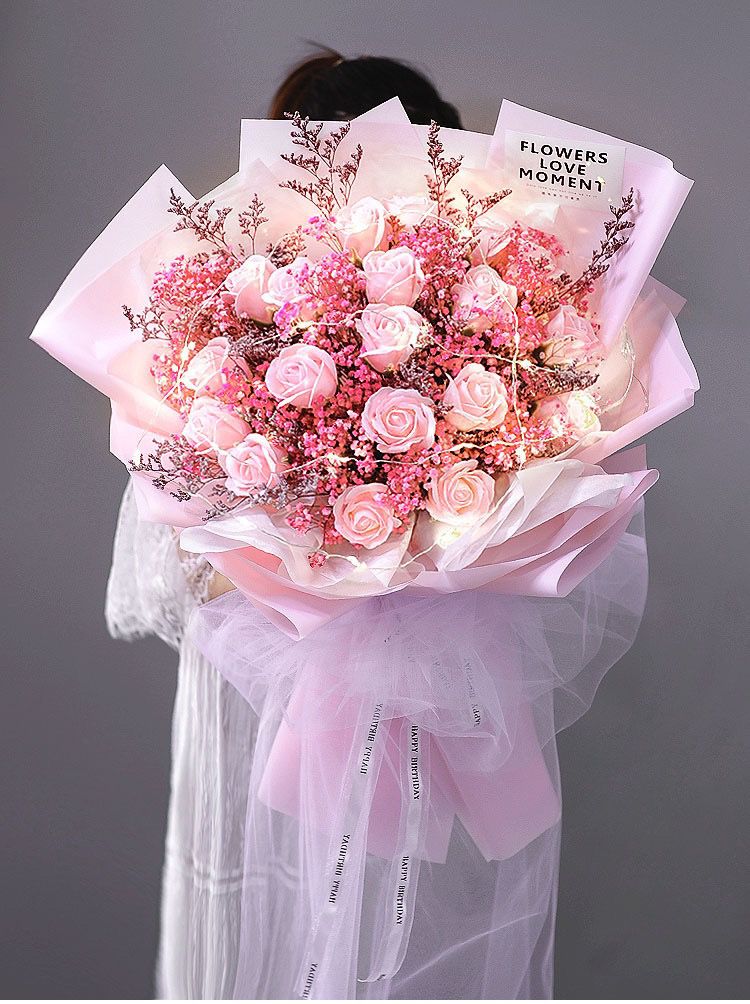 | 33 pink soap flower rose pink starry birthday lights(33朵粉香皂花玫瑰 粉满天星 生日灯) | USD $13.05 | 99999 piece available |