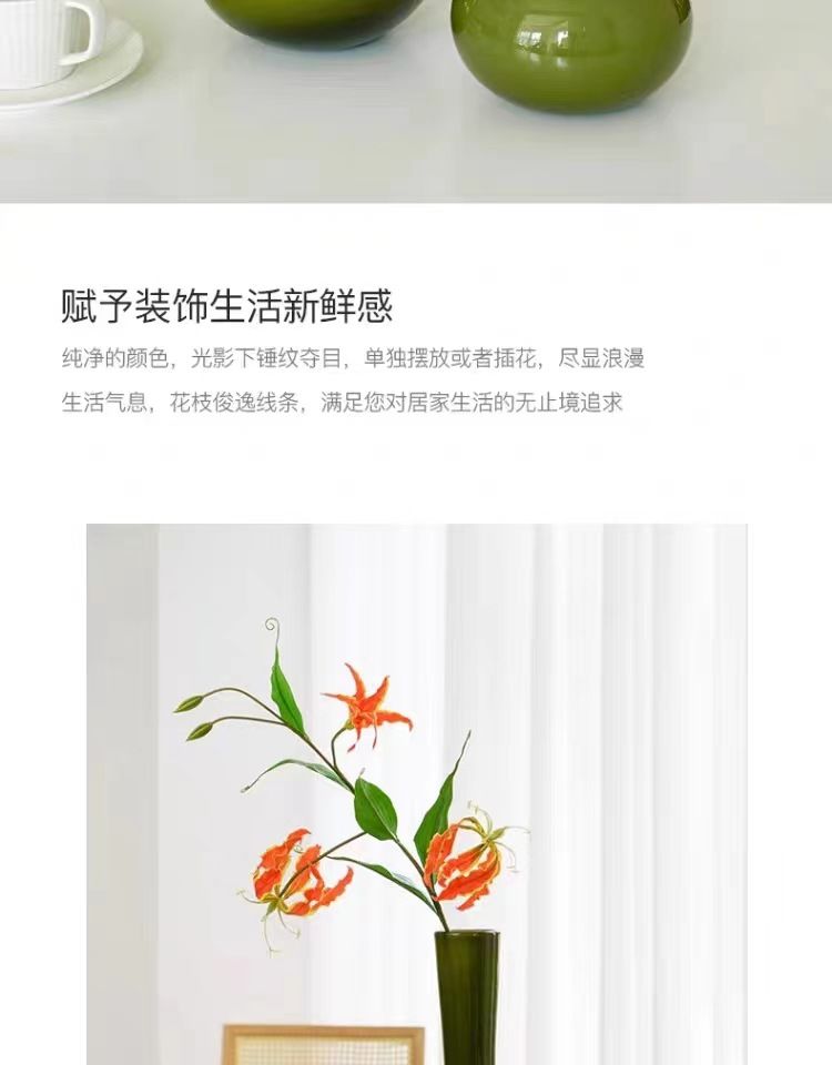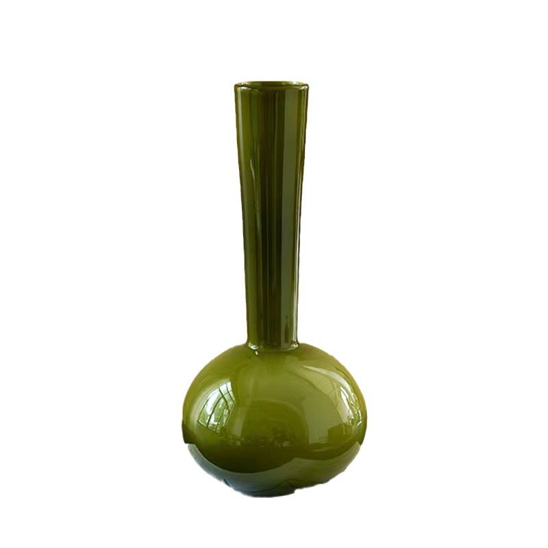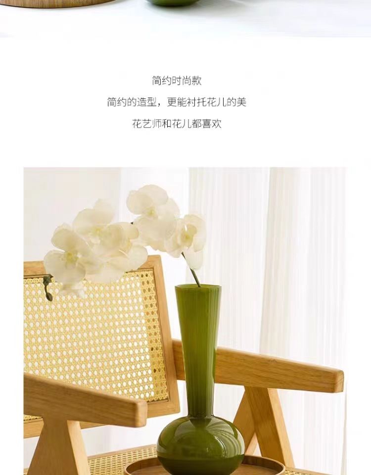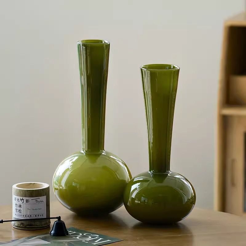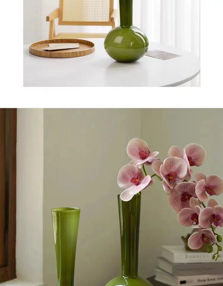法式中古高级感琉璃花瓶橄榄绿手工小众艺术蝴蝶兰插花瓶客厅摆件