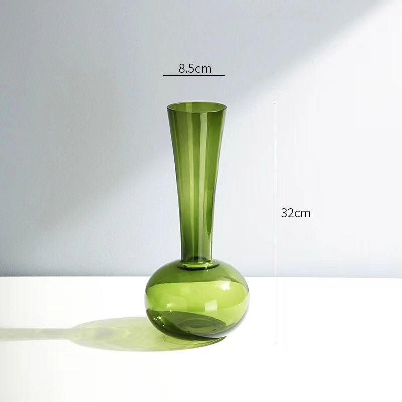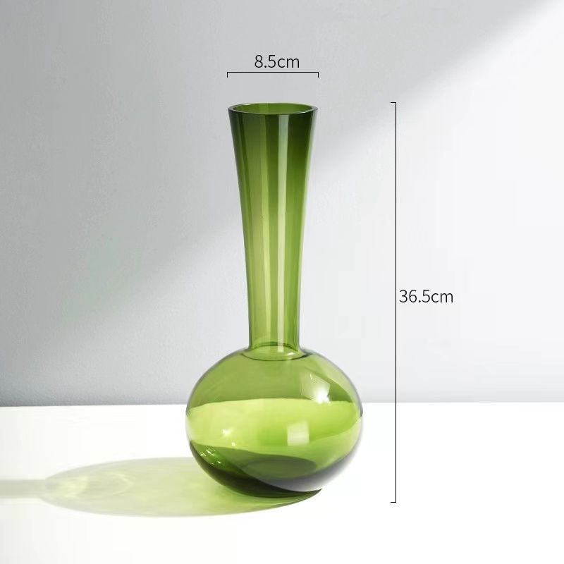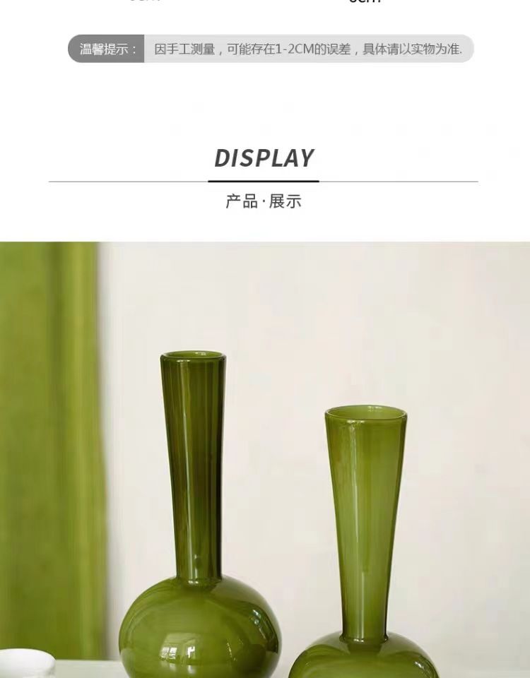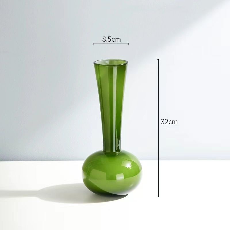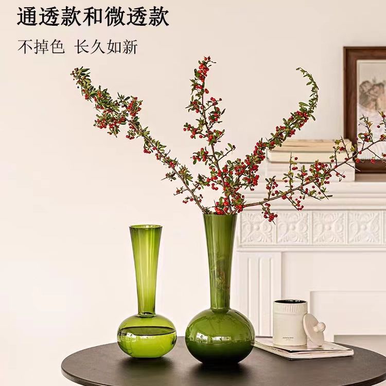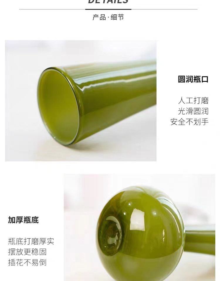 法式中古高级感琉璃花瓶橄榄绿手工小众艺术蝴蝶兰插花瓶客厅摆件