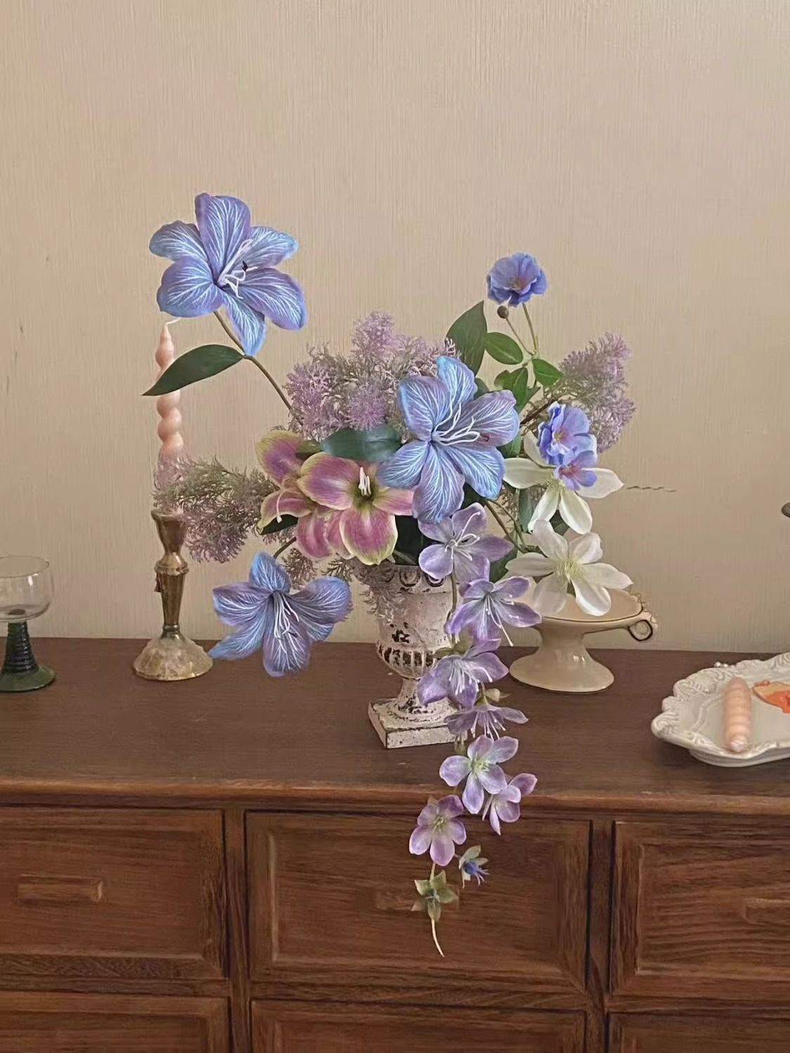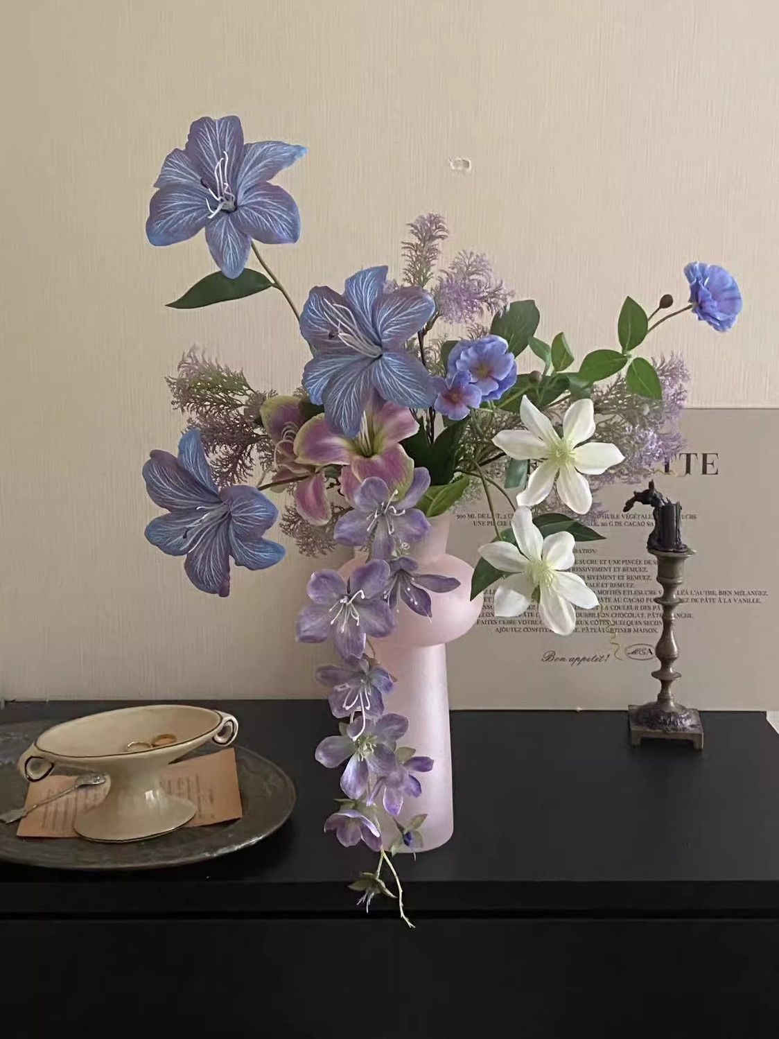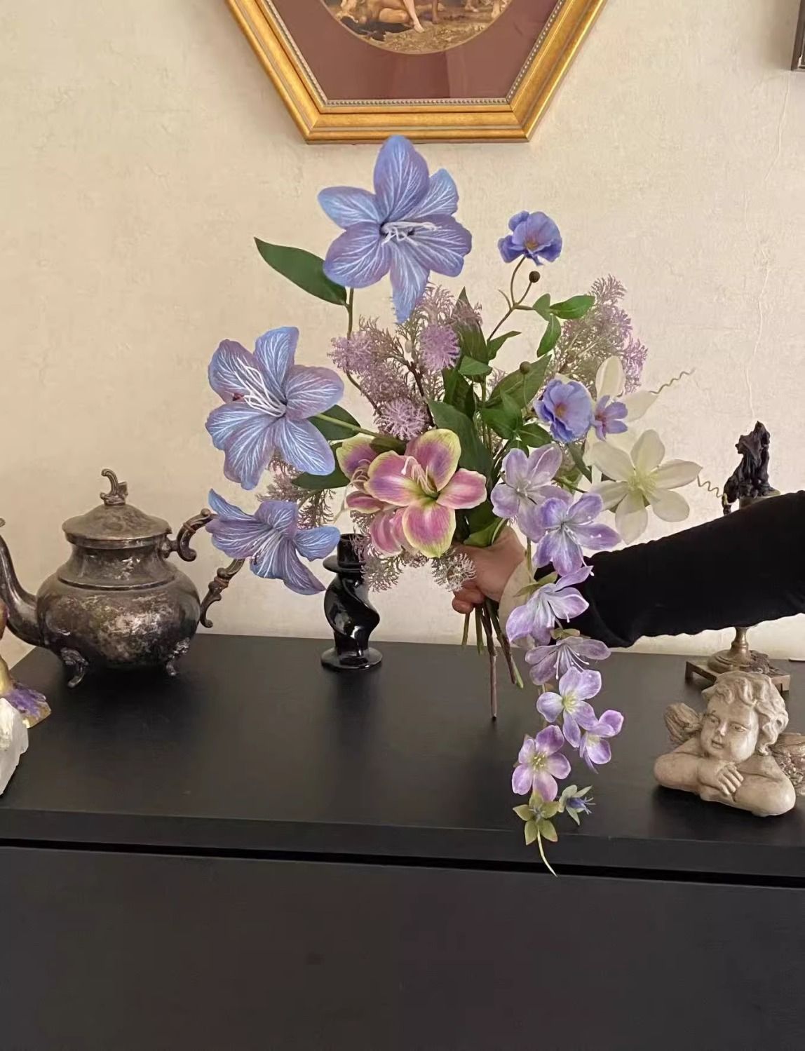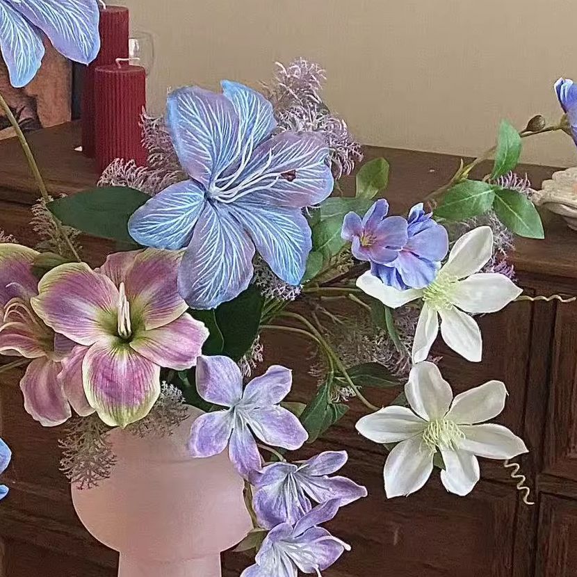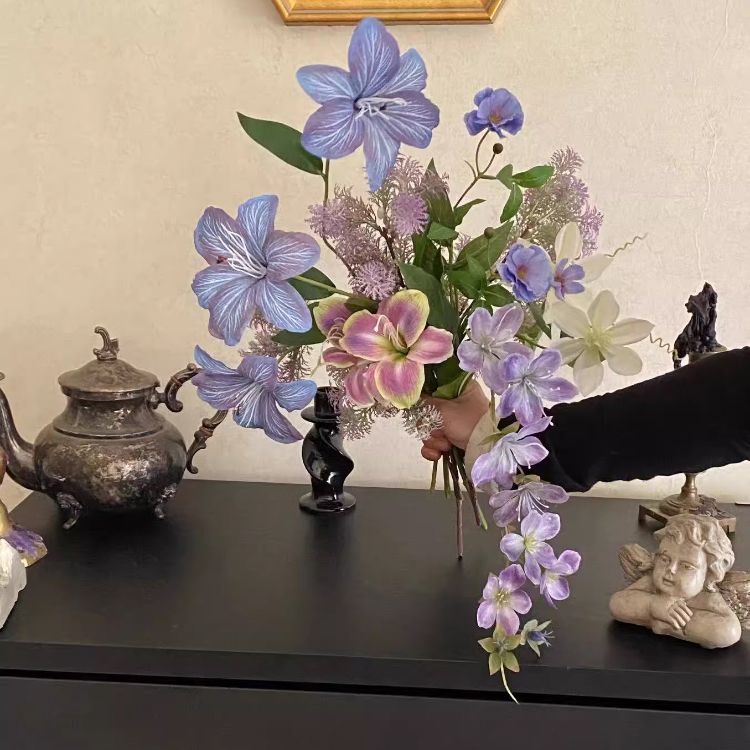 3d打印高质感法式复古仿真花假花束家居软装插花装饰紫色花艺套餐