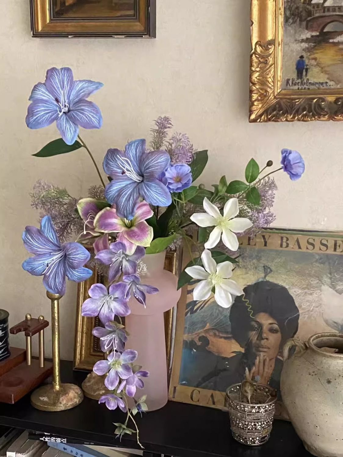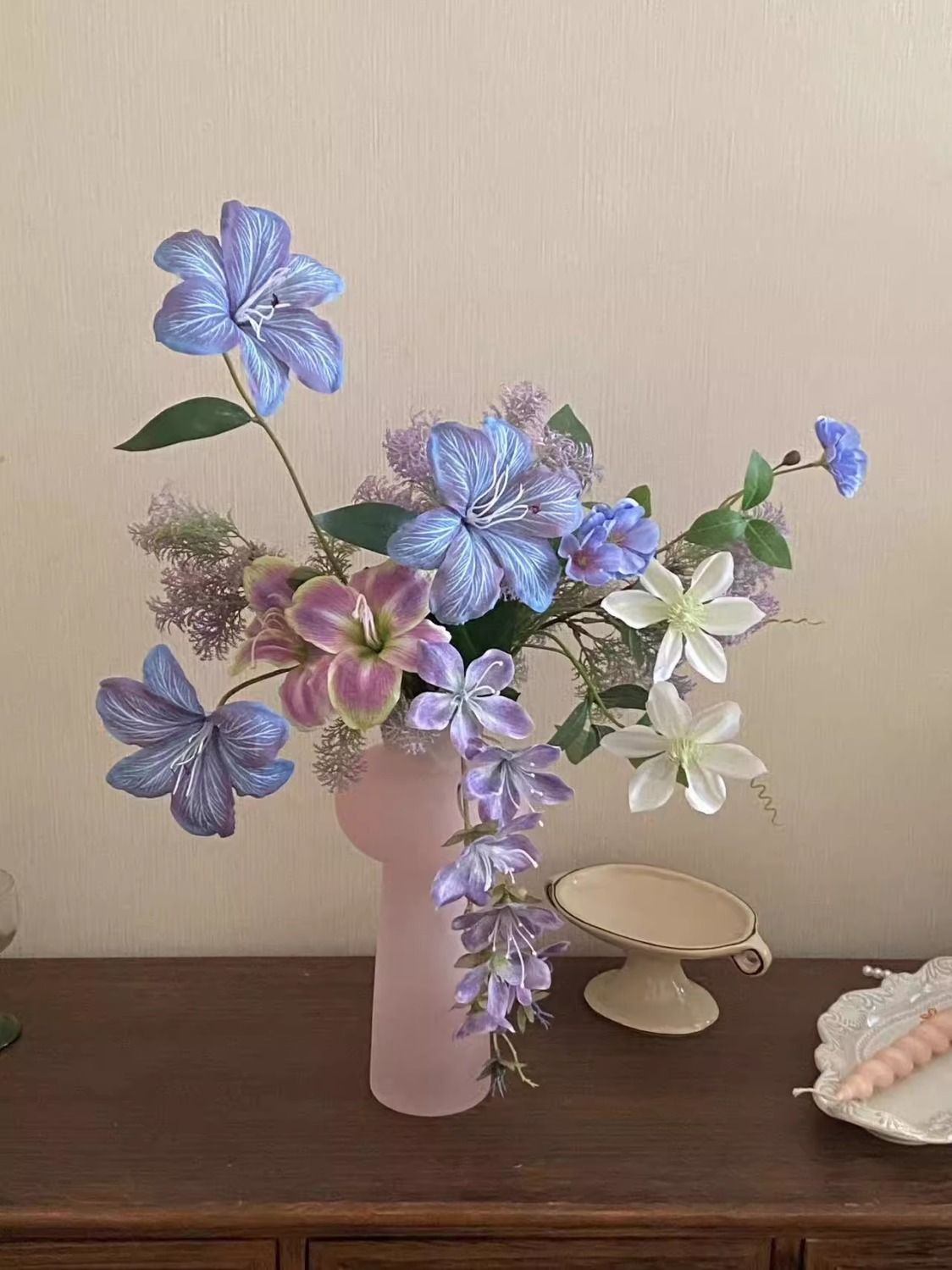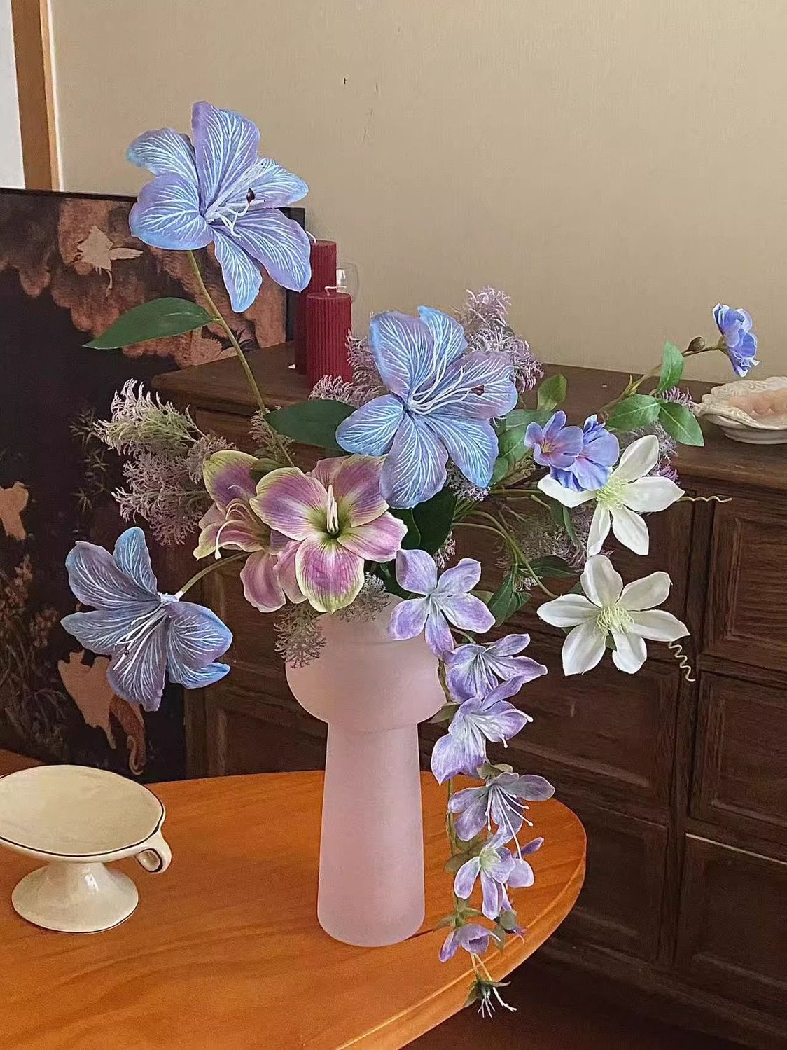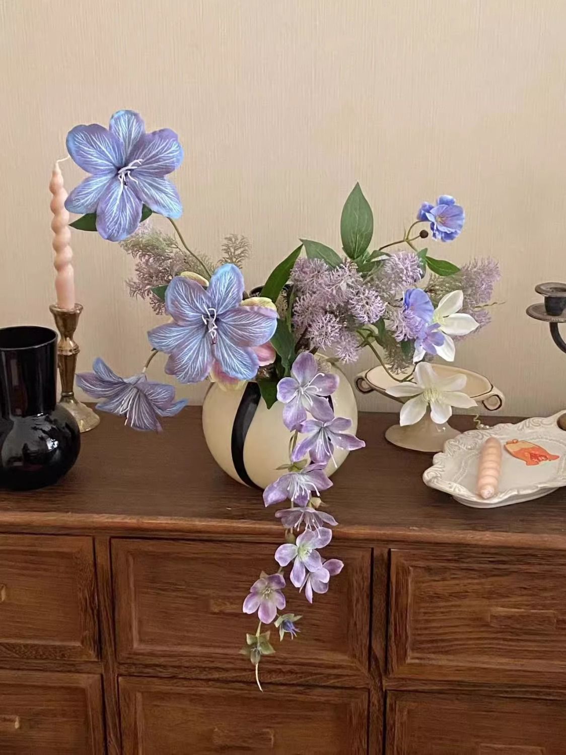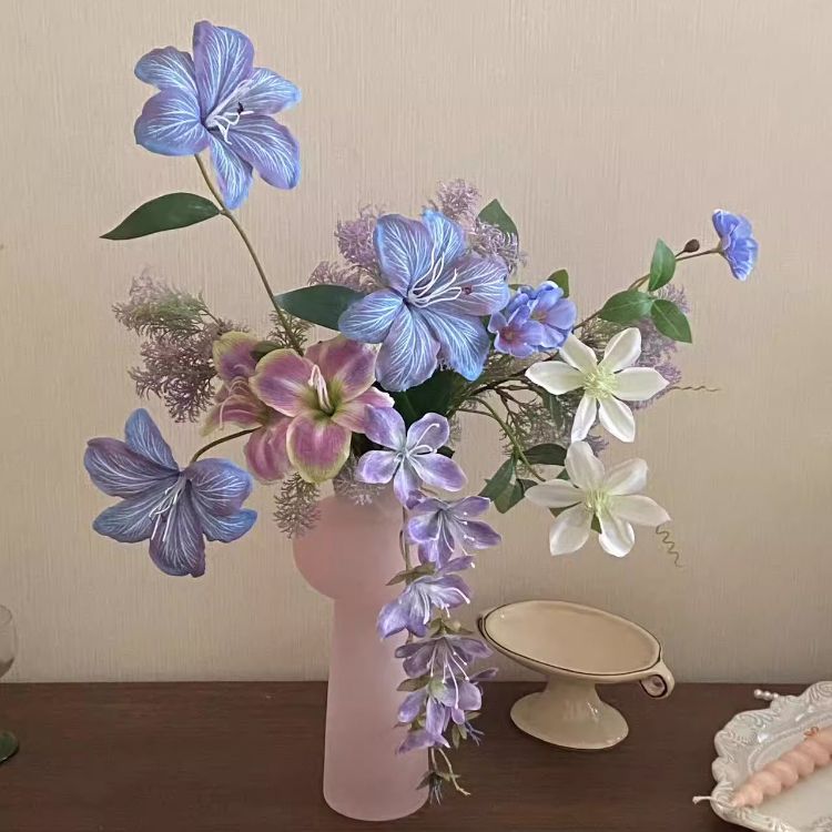 3d打印高质感法式复古仿真花假花束家居软装插花装饰紫色花艺套餐
