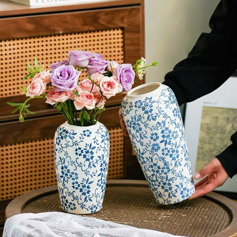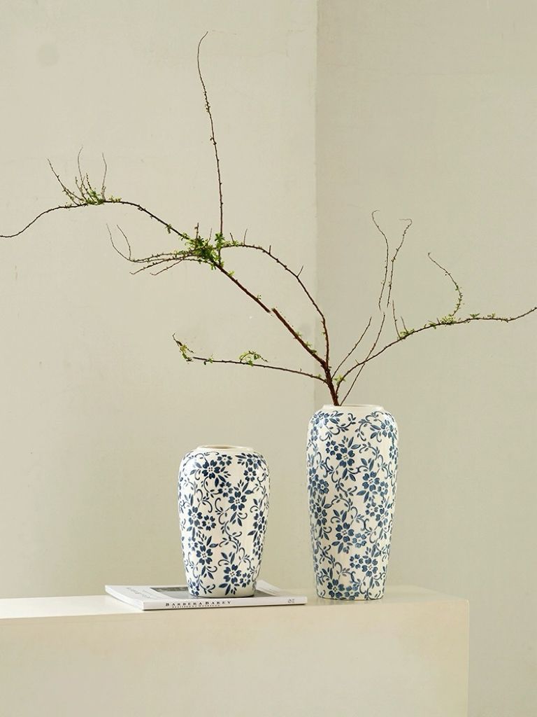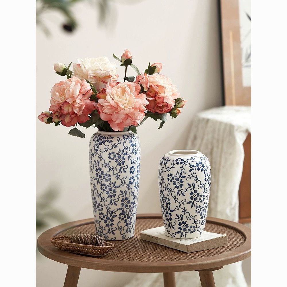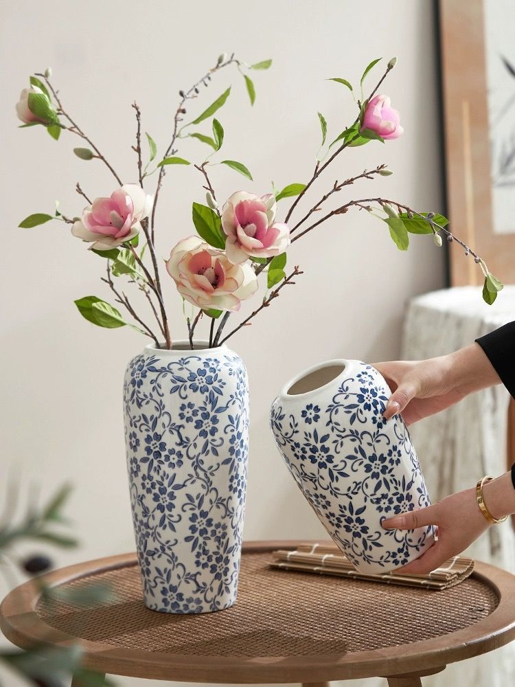 中国风景德镇陶瓷花瓶新中式复古青花瓷水培花瓶插花客厅玄关摆件