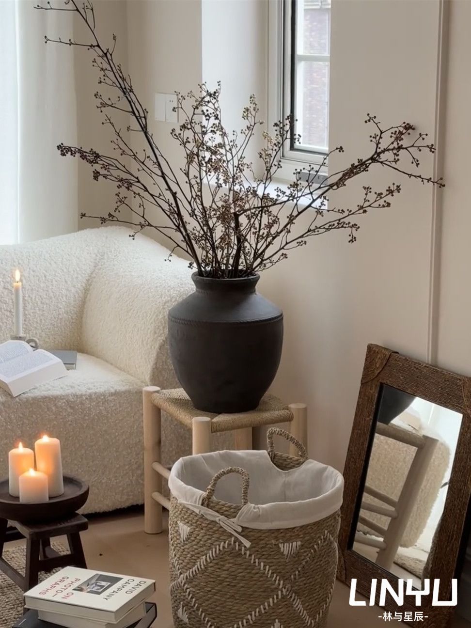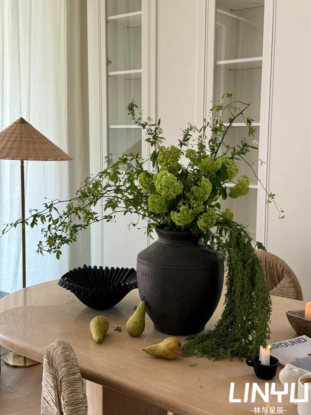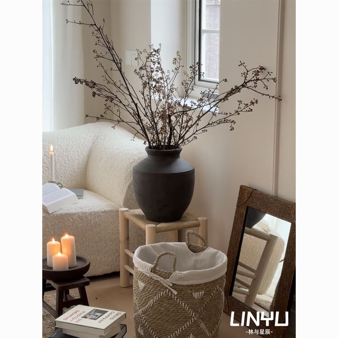 林与/欧式复古陶制花瓶侘寂风做旧陶罐新中式装饰落地陶瓷景德镇