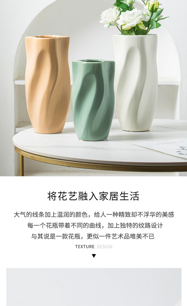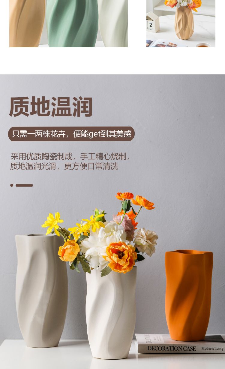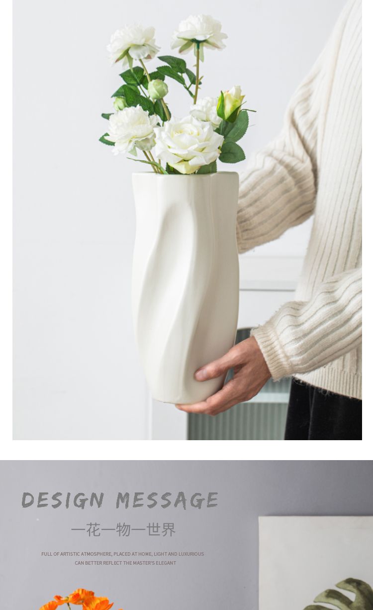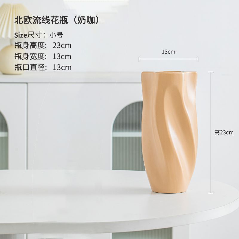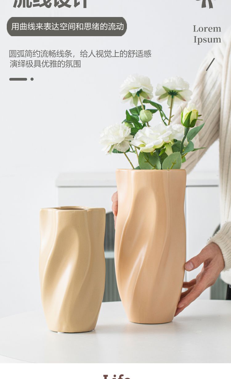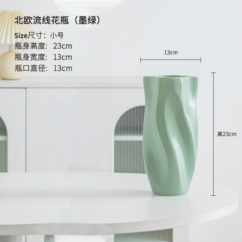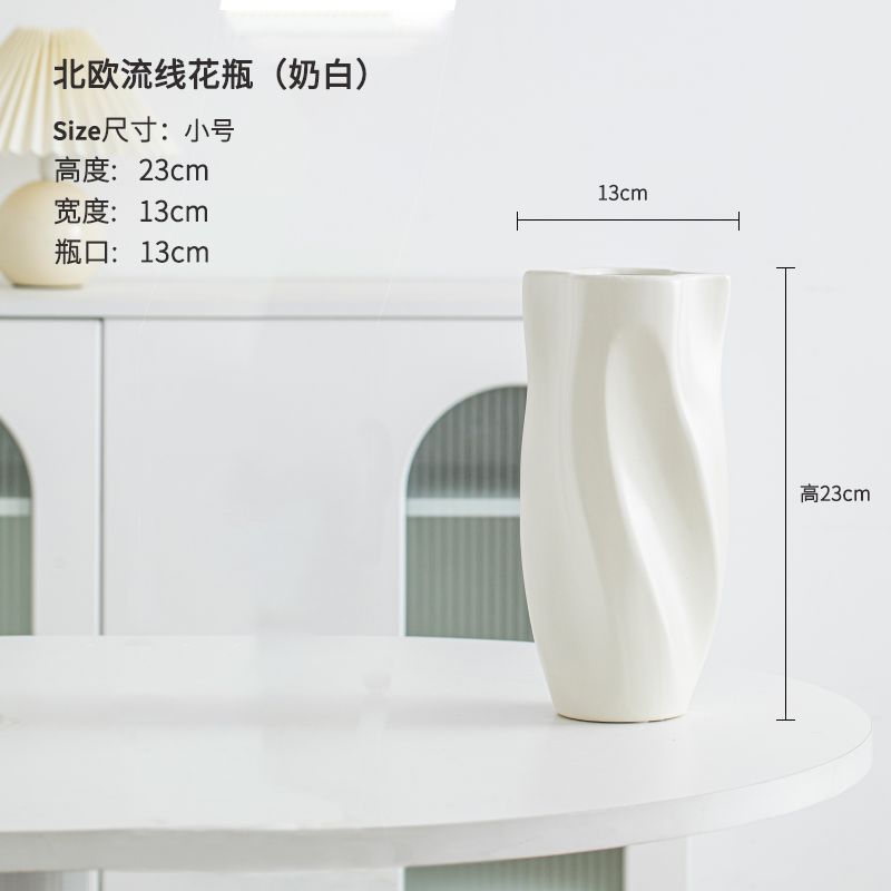 北欧ins现代高级感陶瓷花瓶摆件简约流线客厅餐厅插花水养装饰品