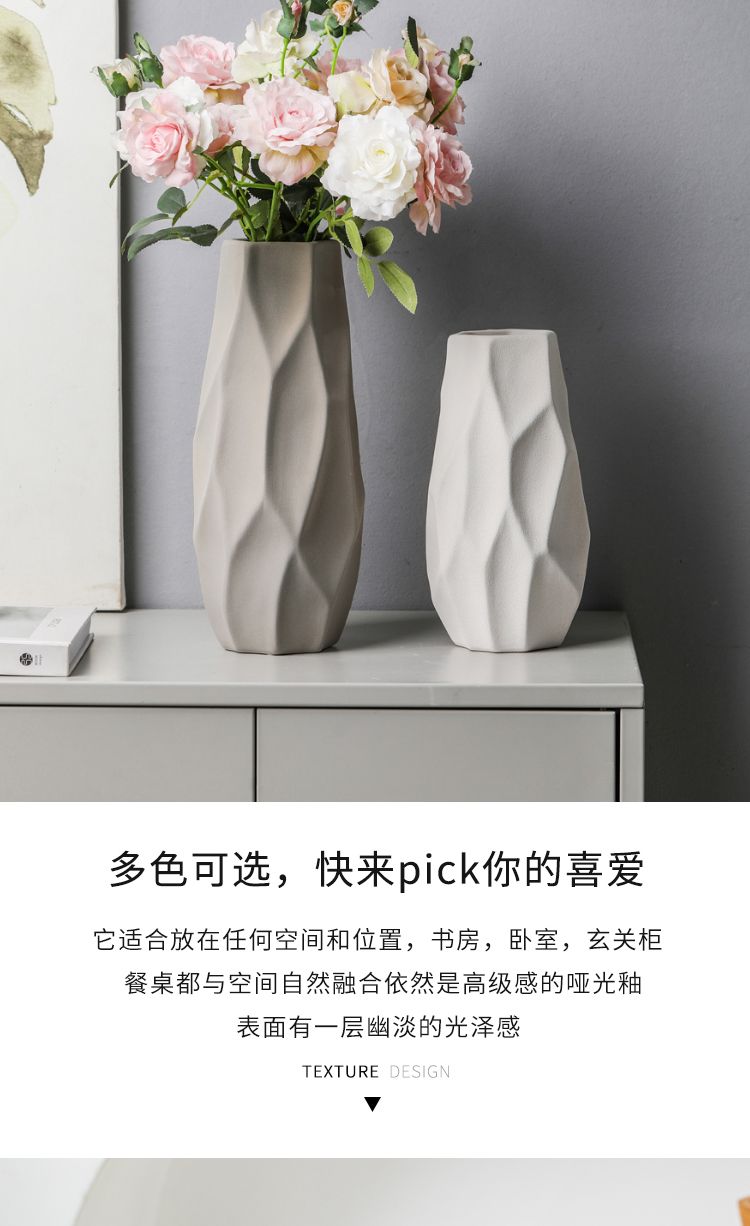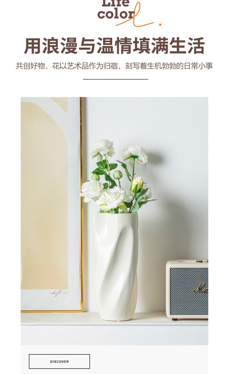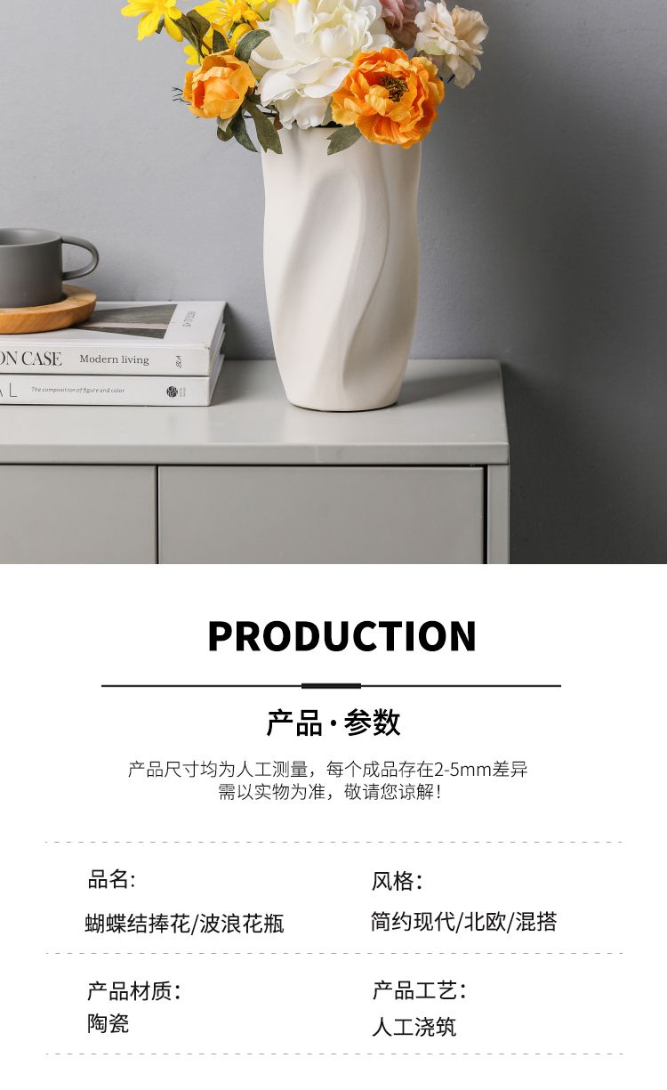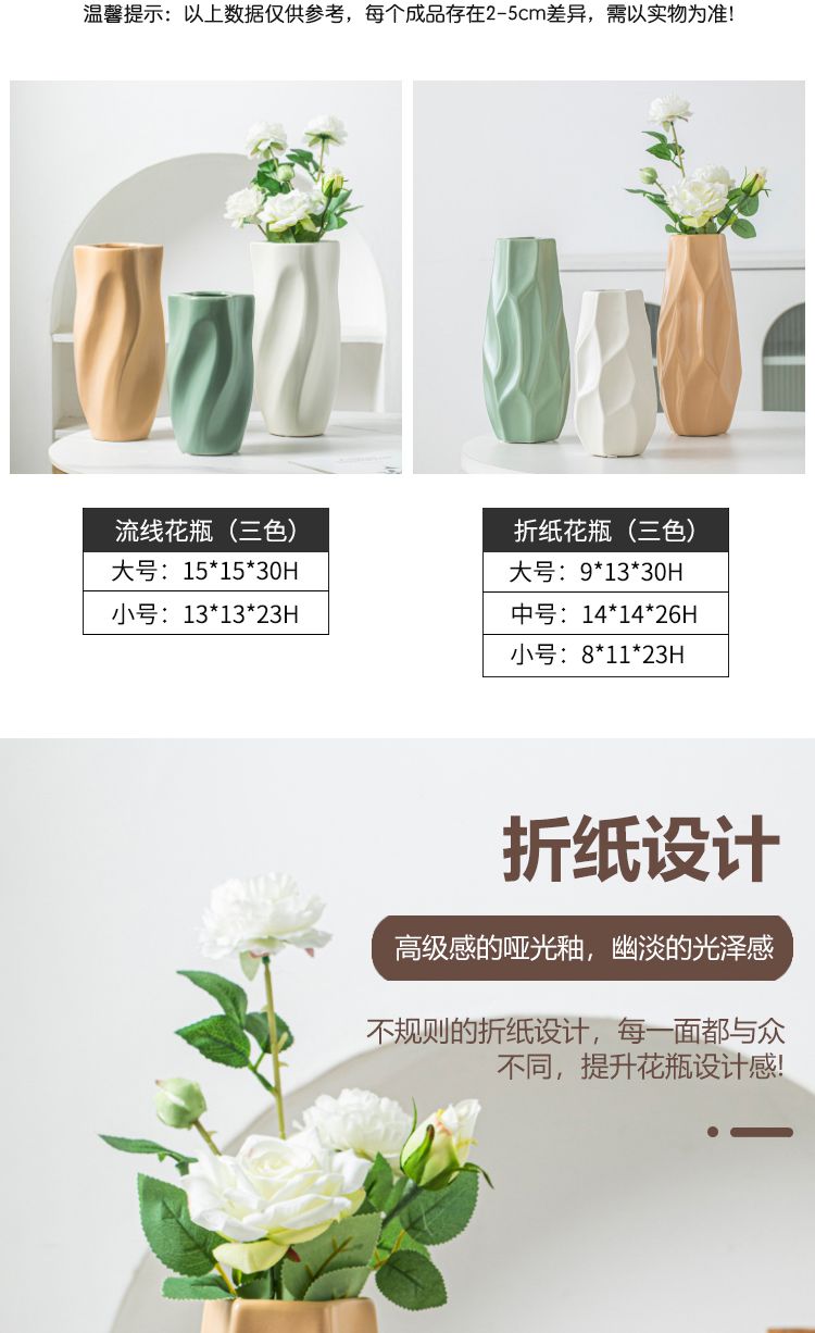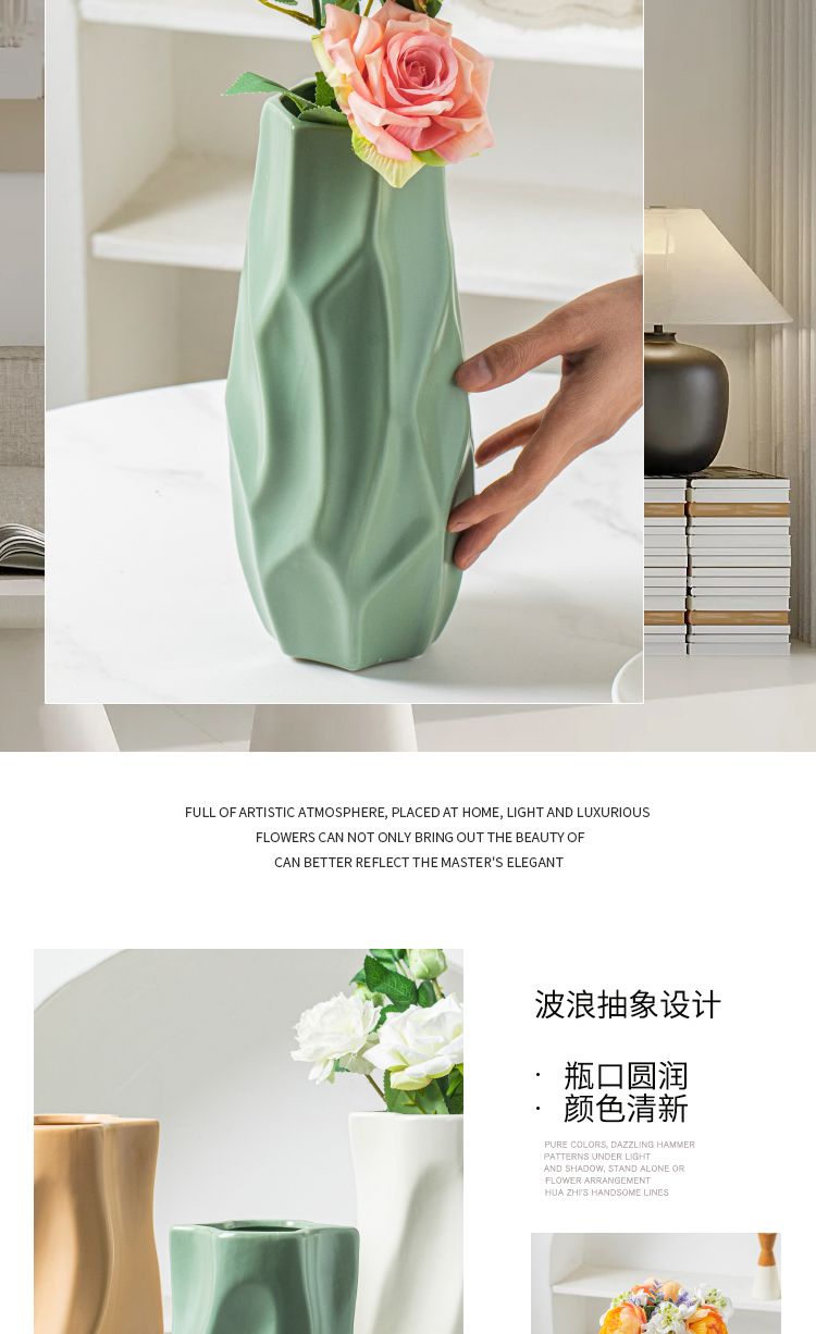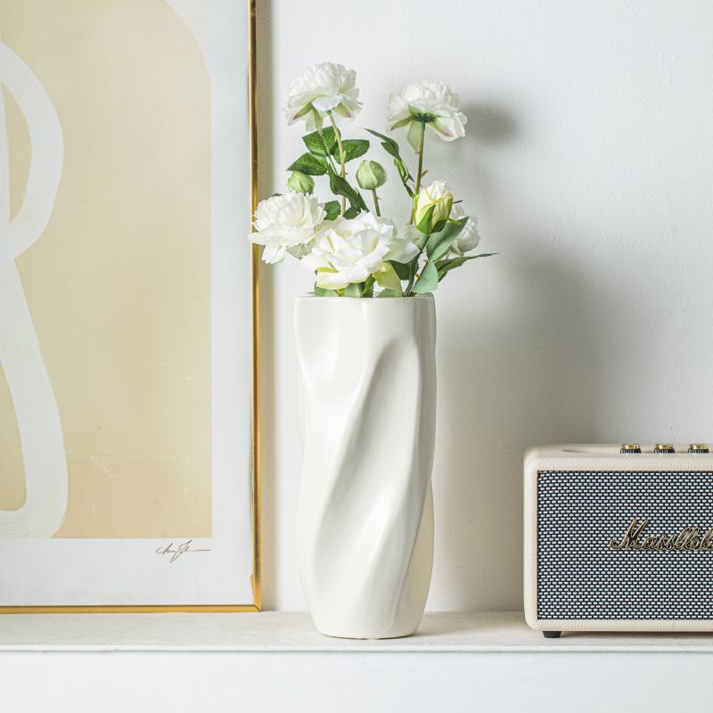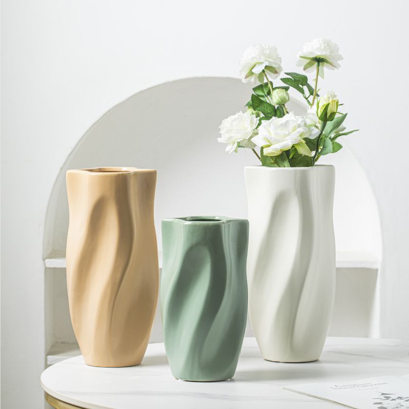 北欧ins现代高级感陶瓷花瓶摆件简约流线客厅餐厅插花水养装饰品