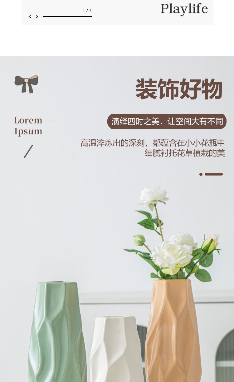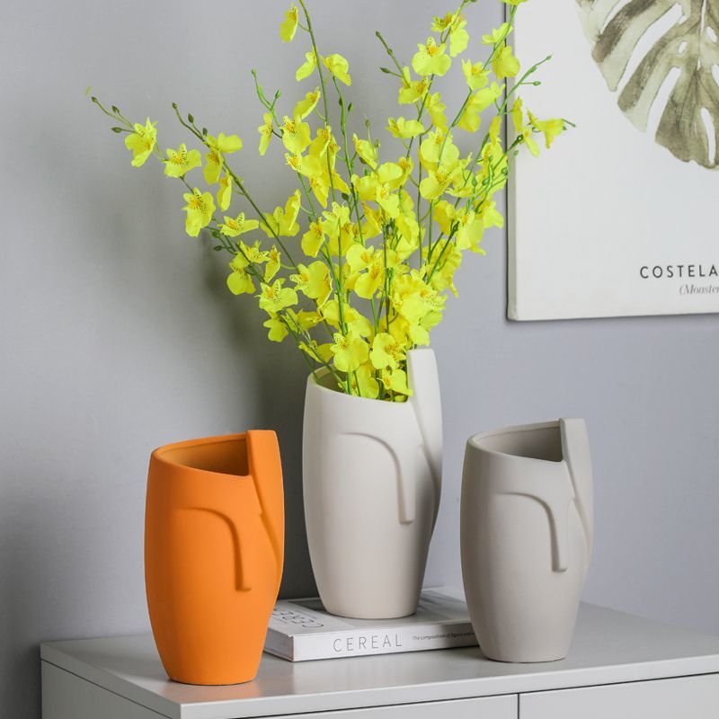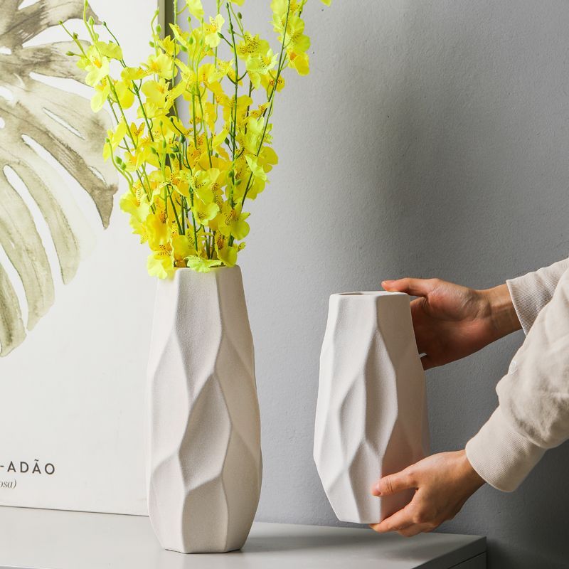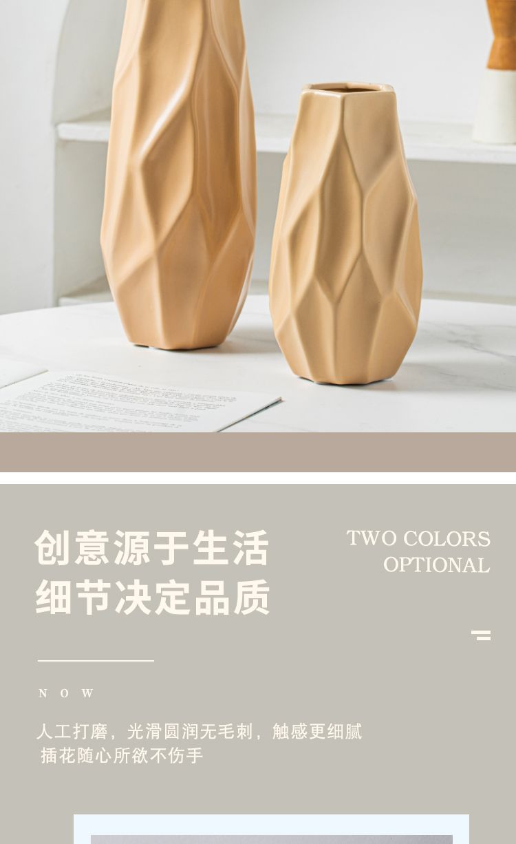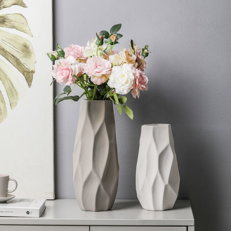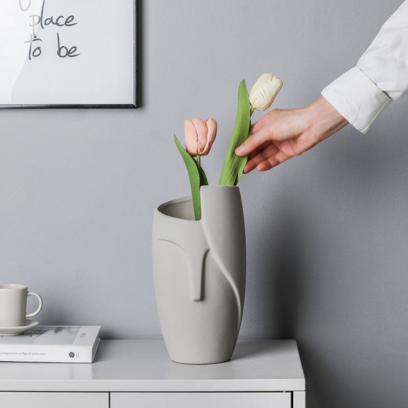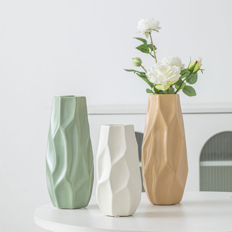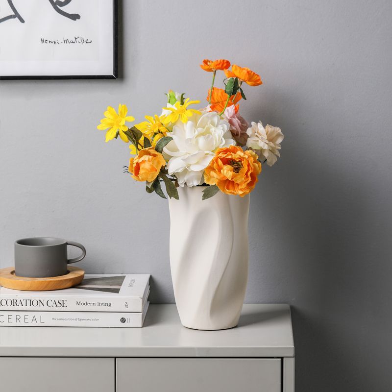 北欧ins现代高级感陶瓷花瓶摆件简约流线客厅餐厅插花水养装饰品