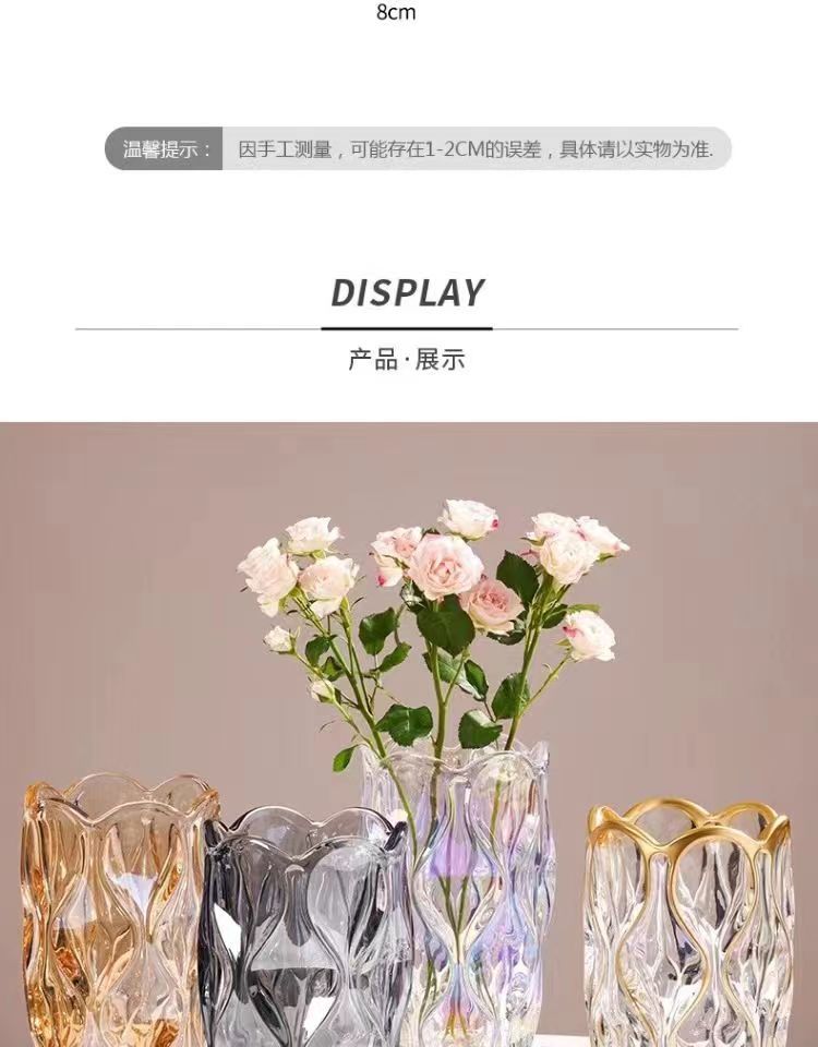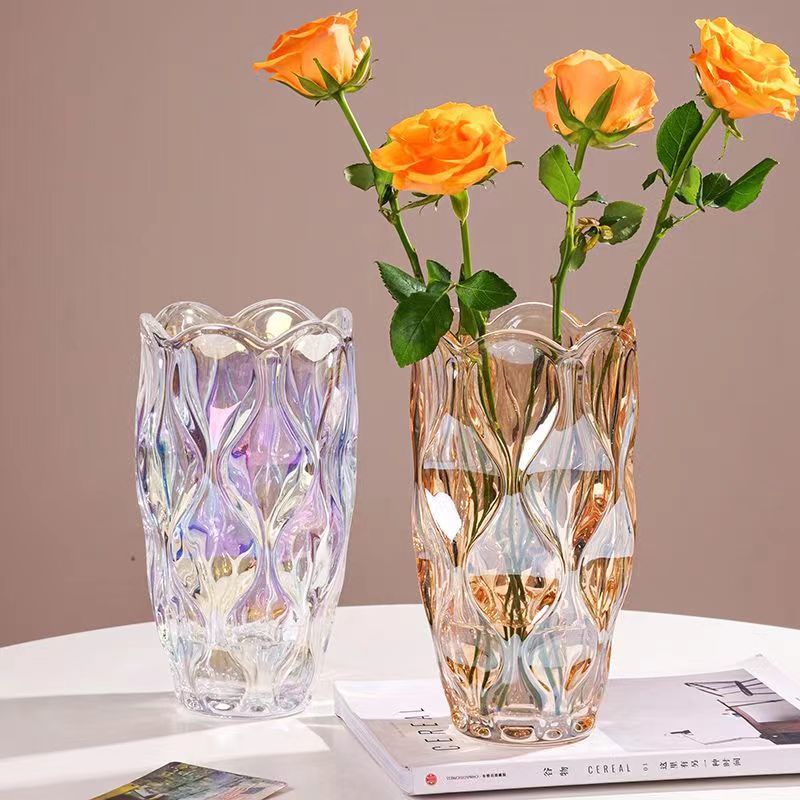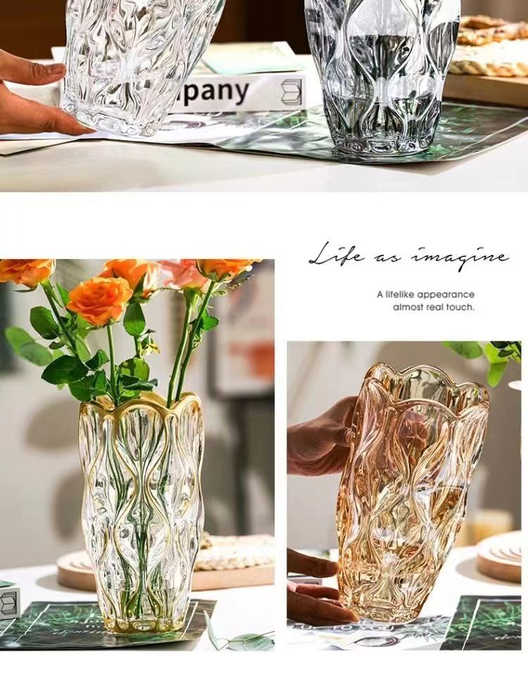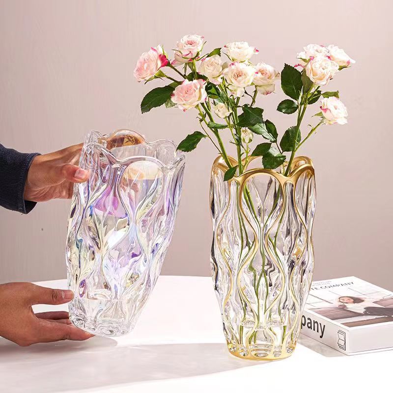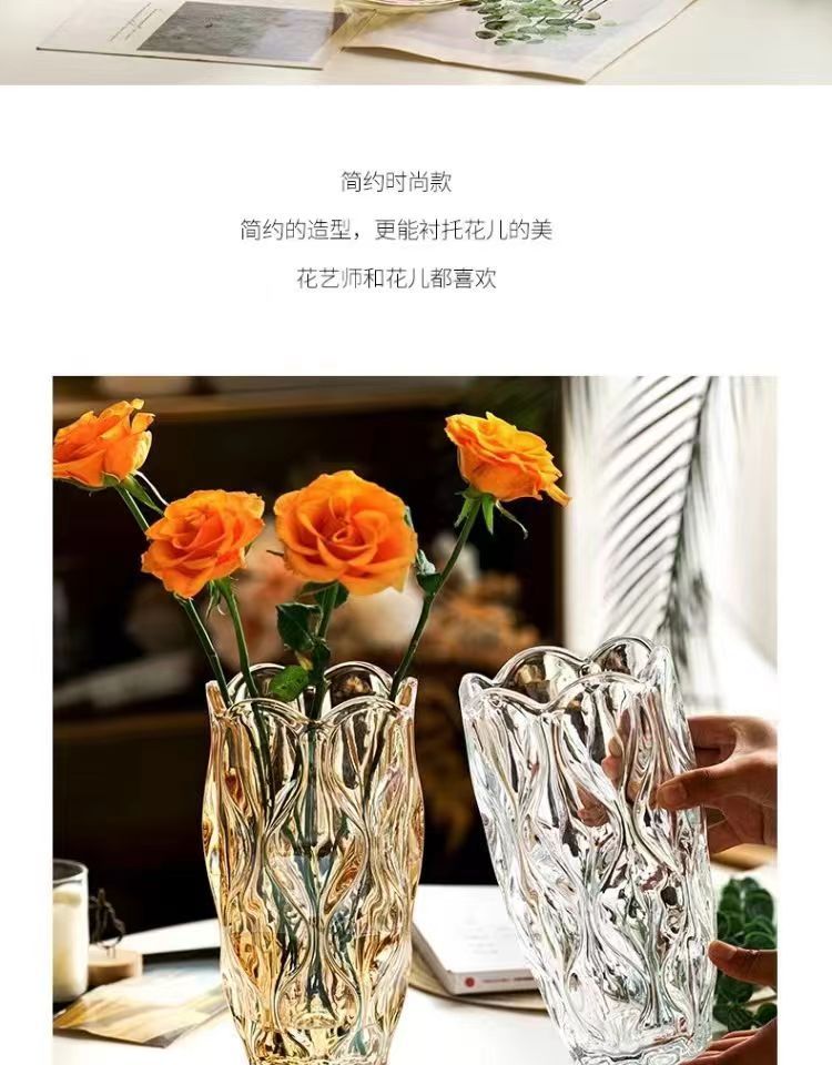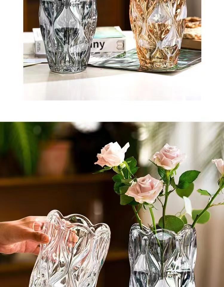 波西米亚透明水晶玻璃花瓶客厅ins风插花鲜花高级感餐桌装饰摆件