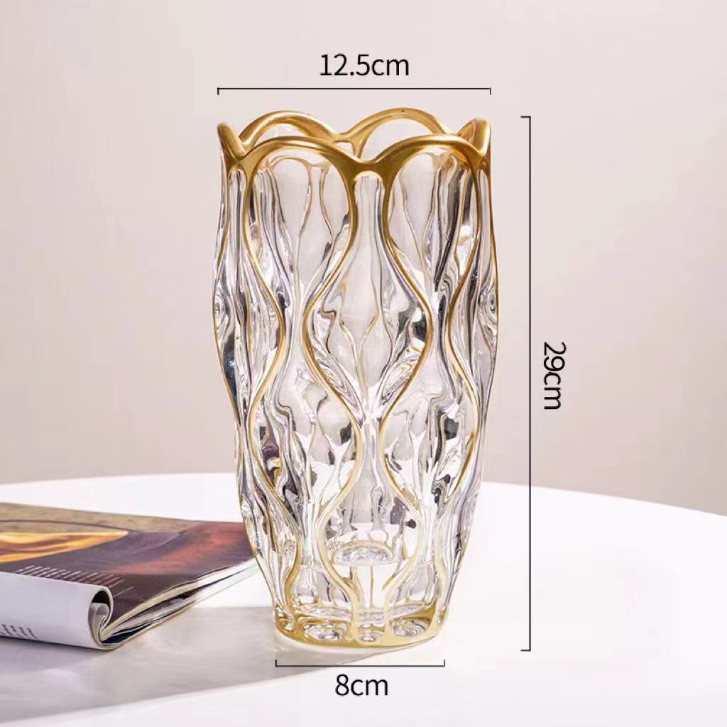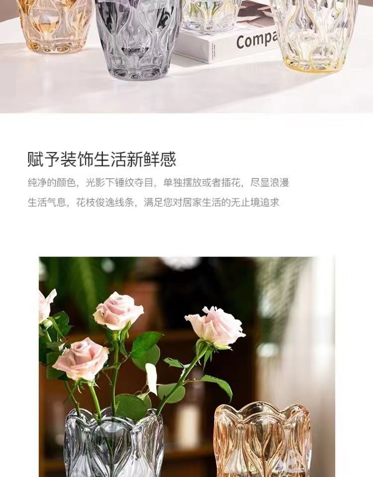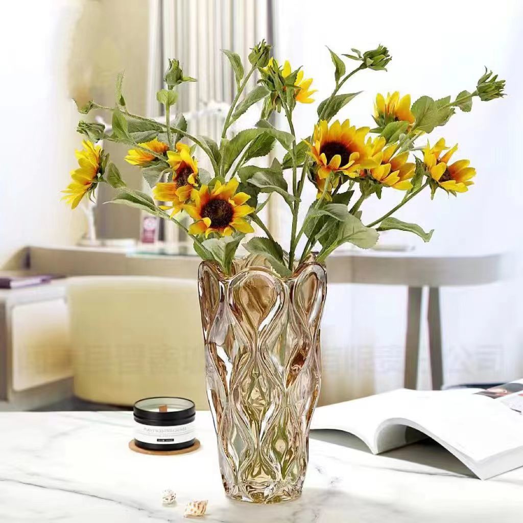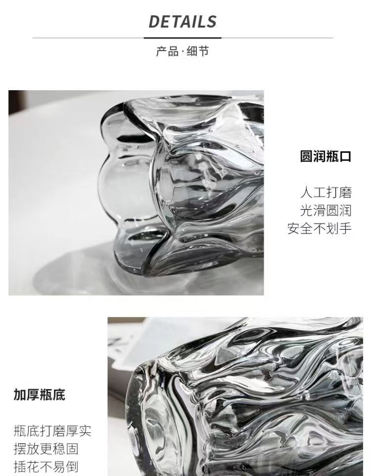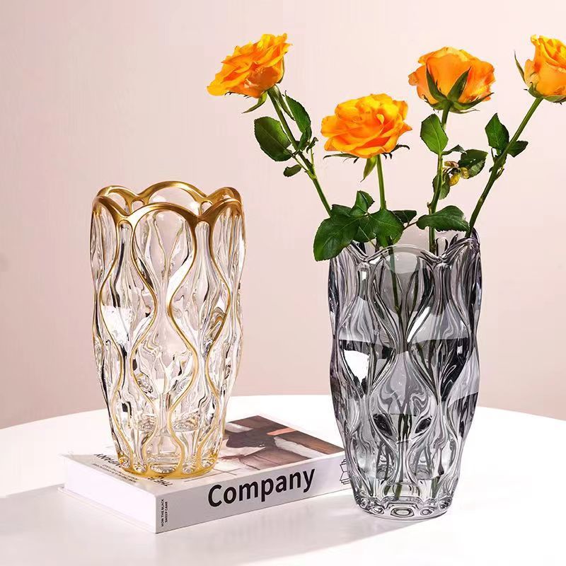 波西米亚透明水晶玻璃花瓶客厅ins风插花鲜花高级感餐桌装饰摆件