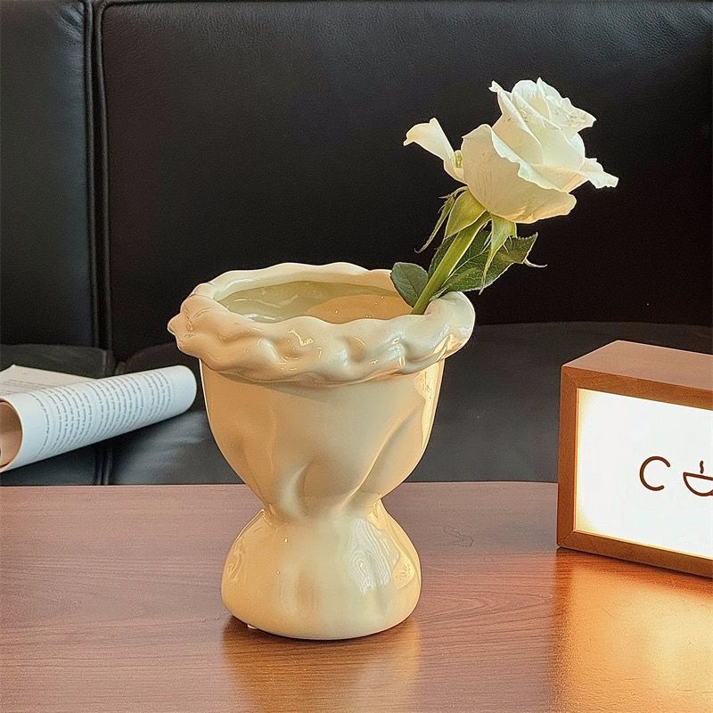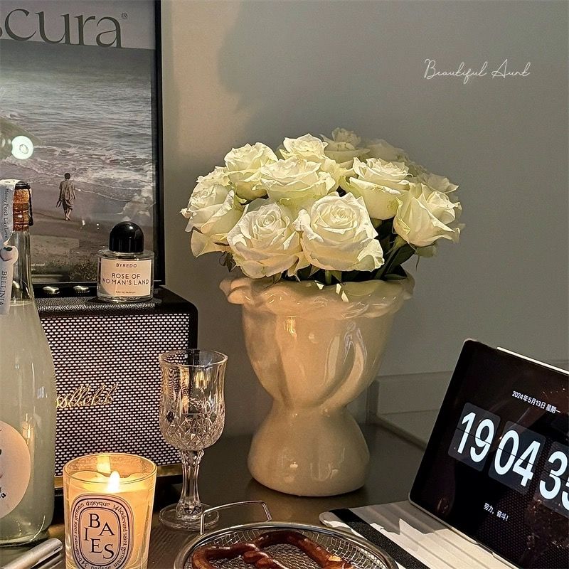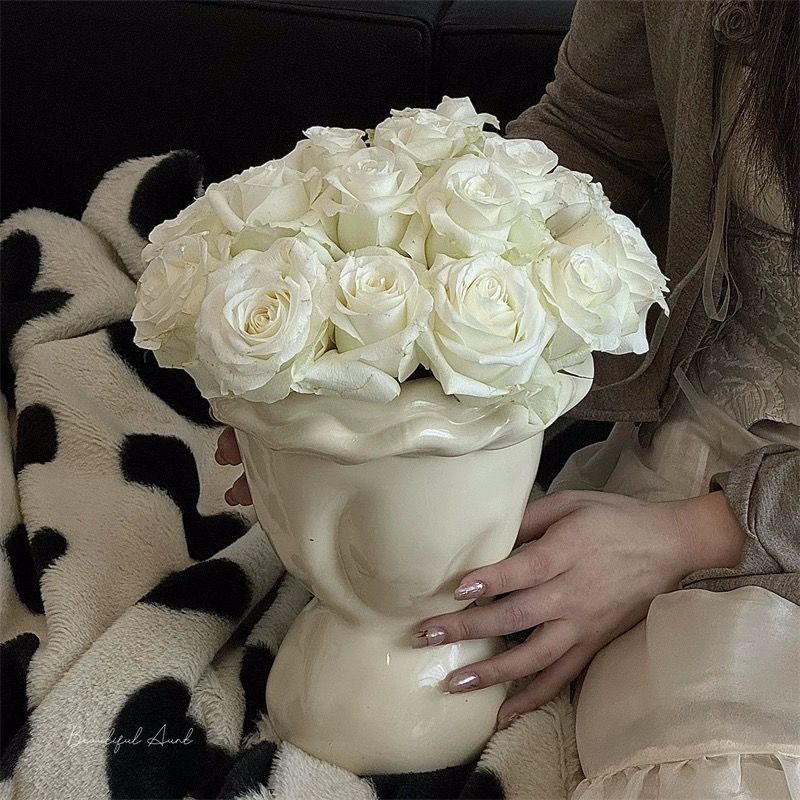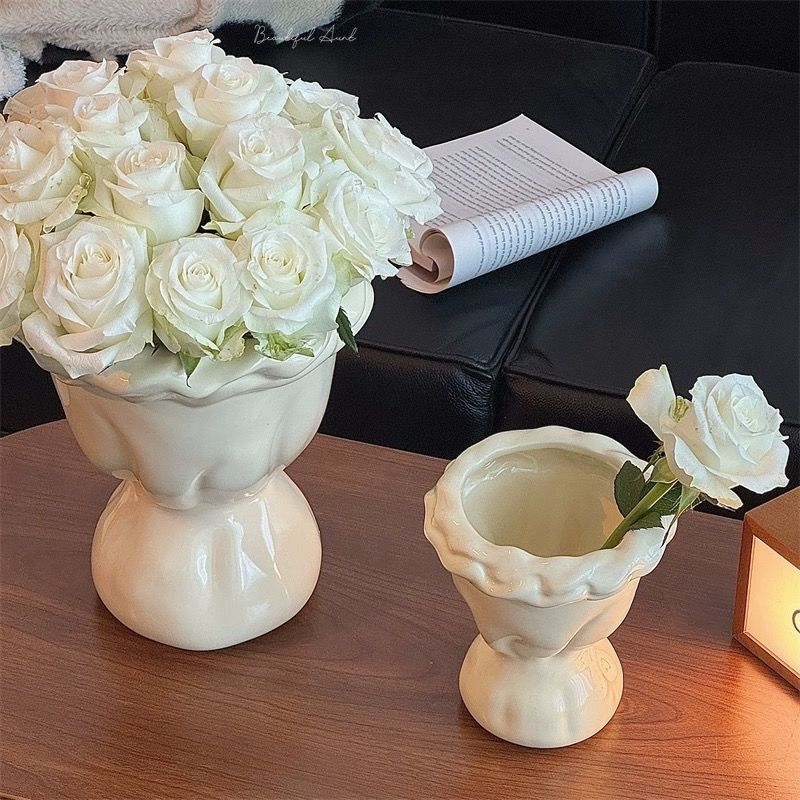 法式奶油风陶瓷花瓶轻奢北欧高级个性插花复古水培侘寂风客厅摆件