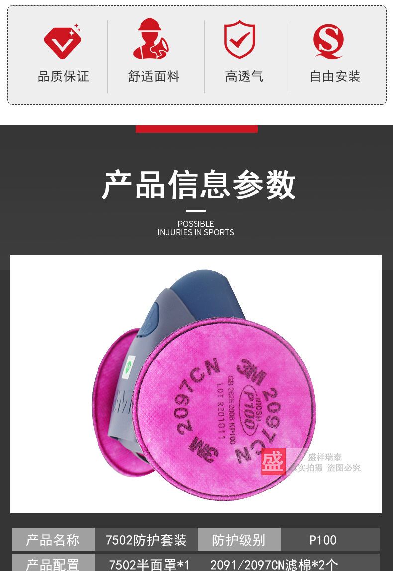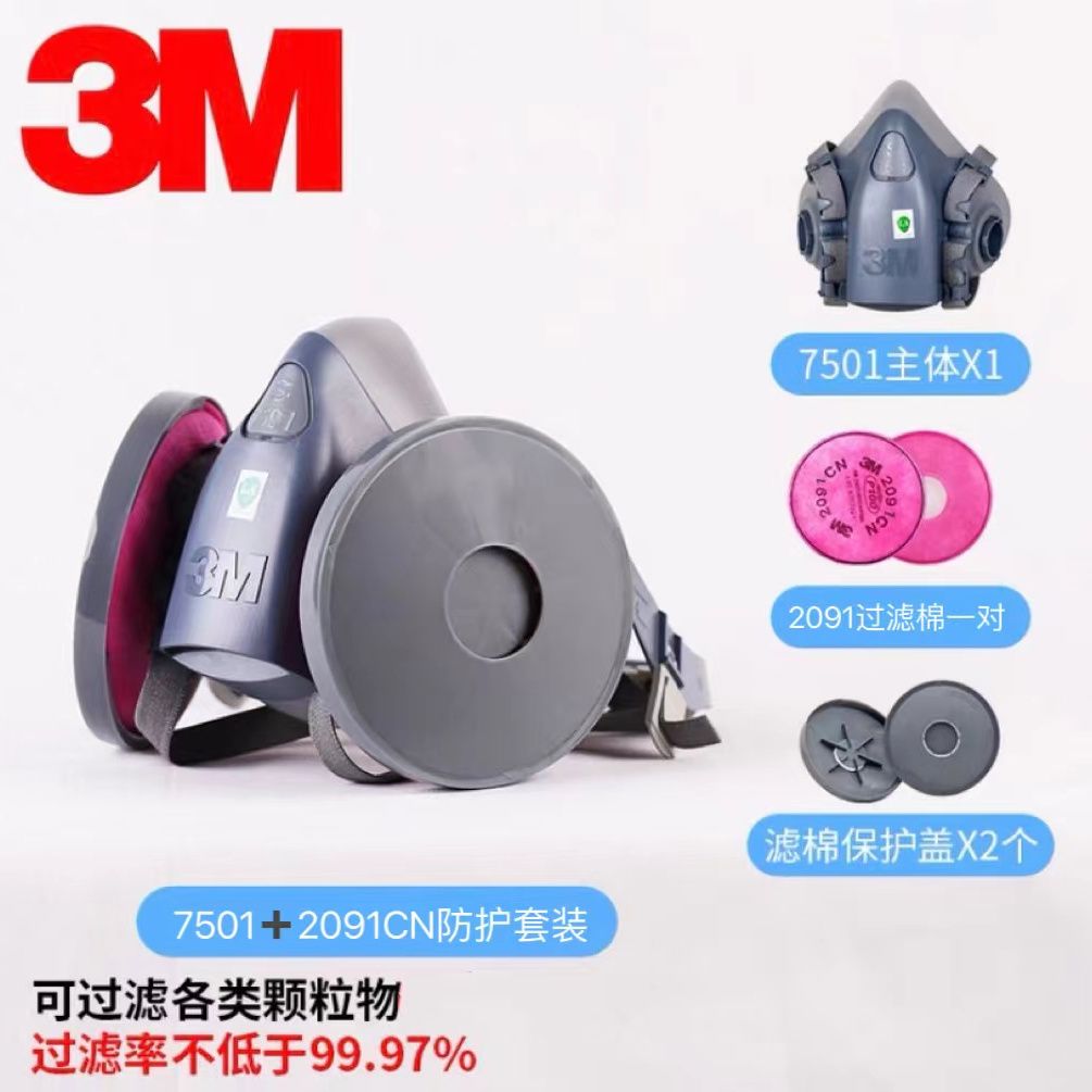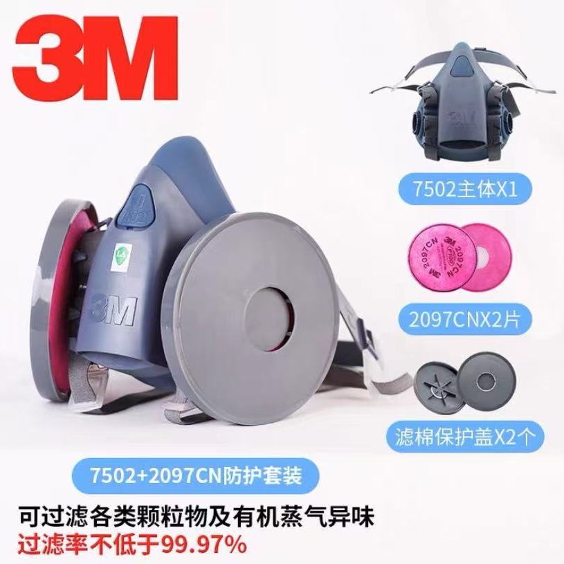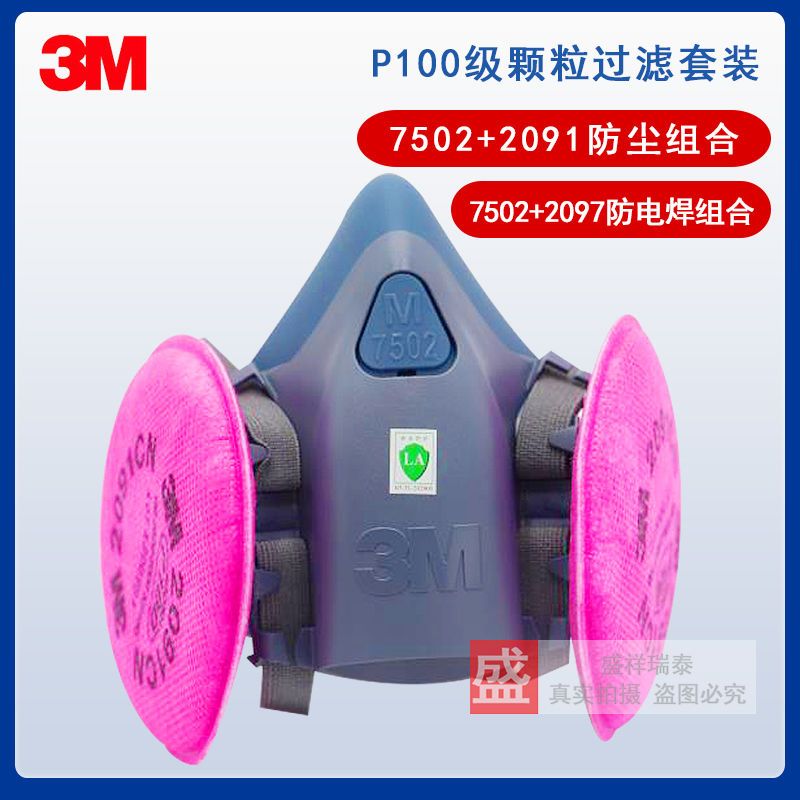 3M7502配2097CN/2091CN防粉尘电焊烟装修打磨颗粒物防护面具口罩