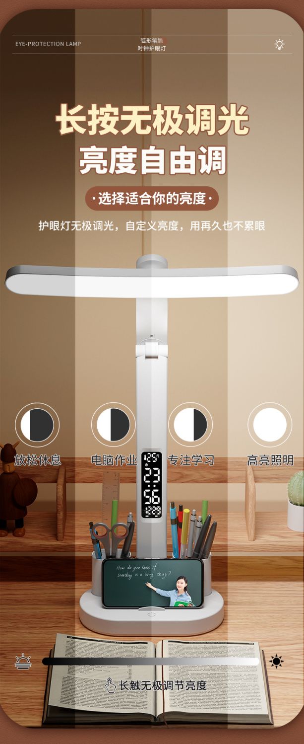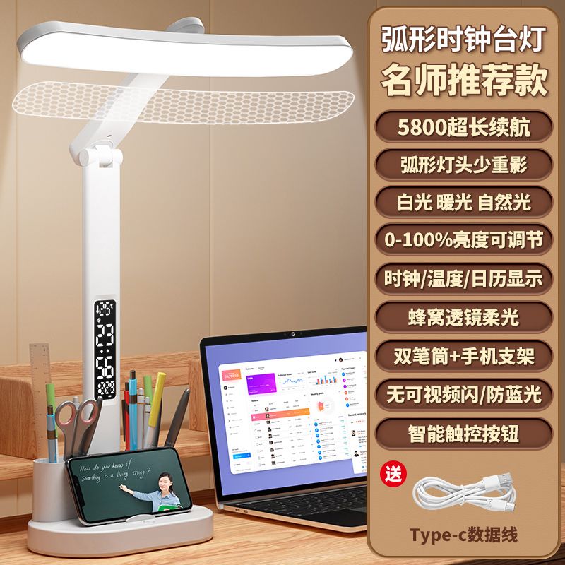 【智品乐】高品质led儿童护眼时钟台灯多功能学生宿舍充电阅读灯