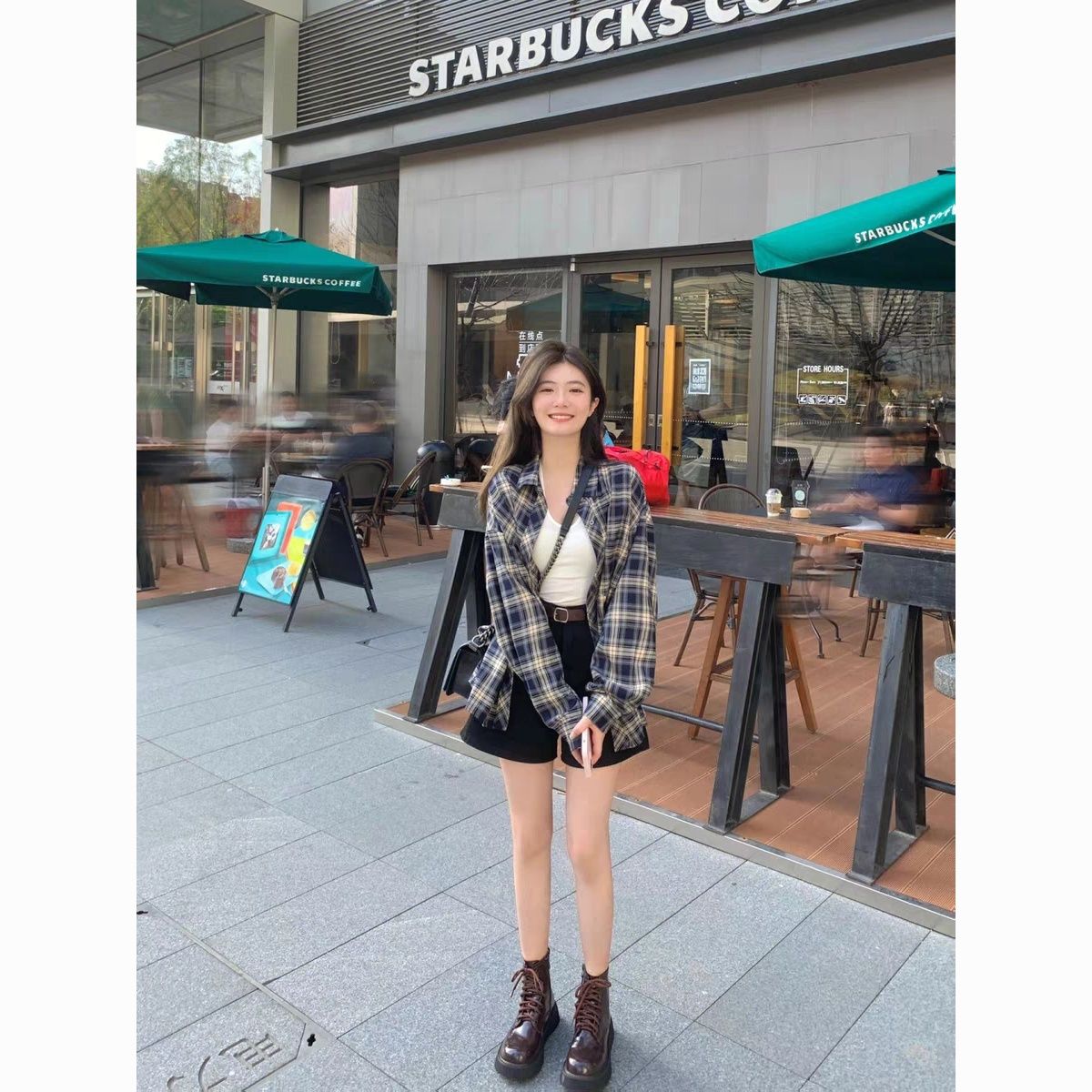 FELIPE VA幂式穿搭秋夏季格子衬衫女ins百搭衬衣开衫防晒衫外套新