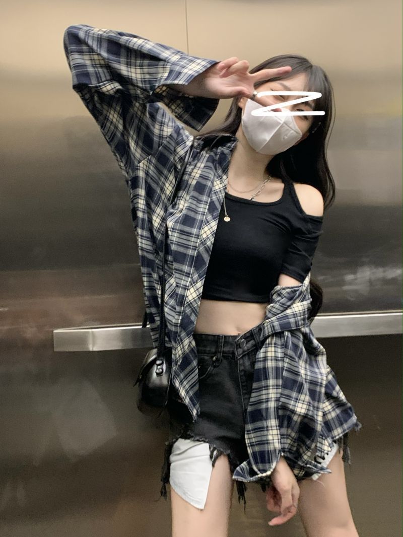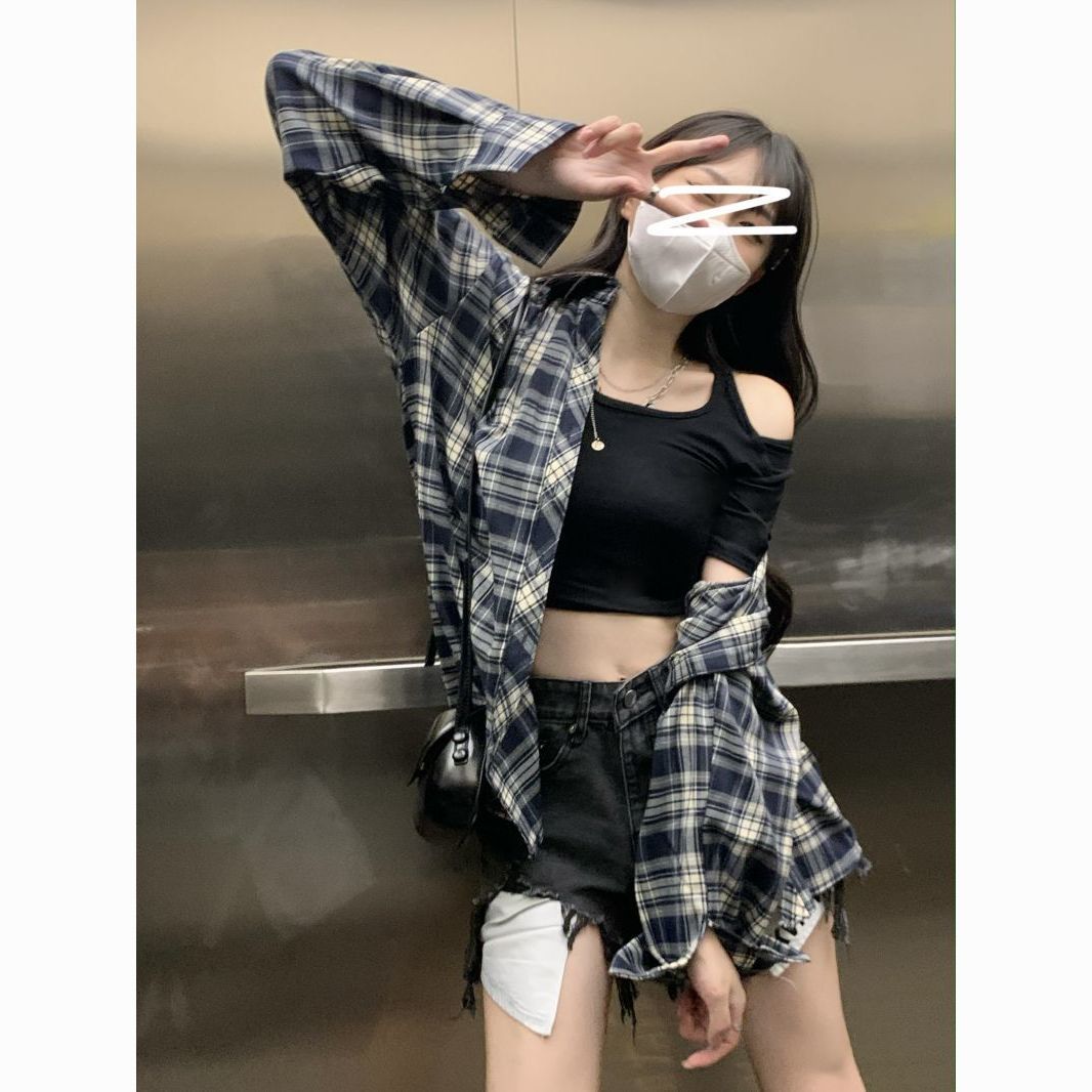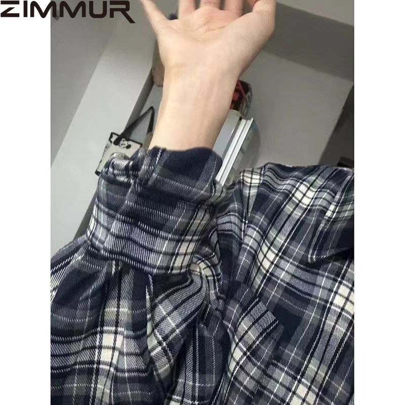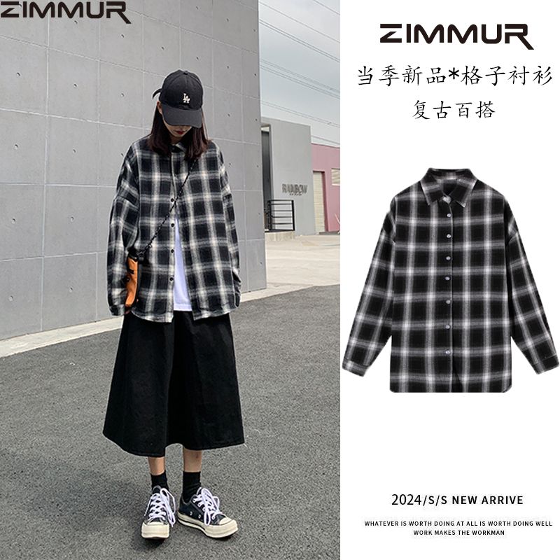 ZIMMUR复古格子衬衫女外套夏季薄款宽松休闲防晒长袖衬衣外穿上衣