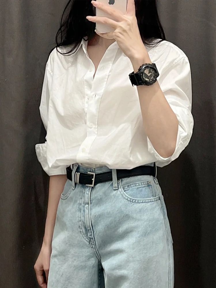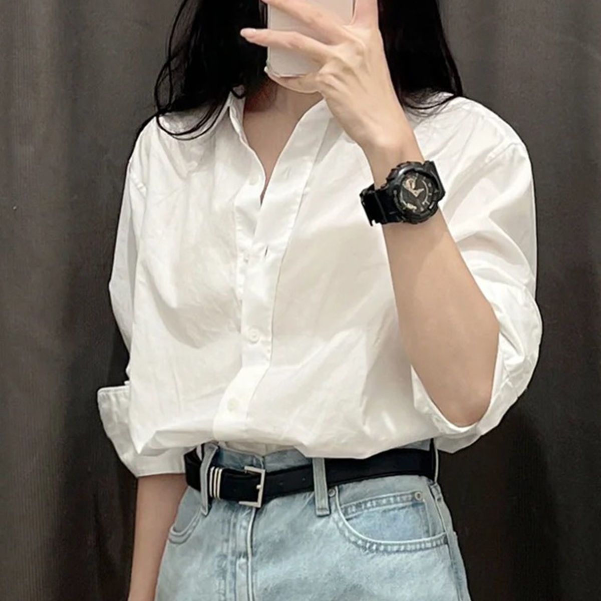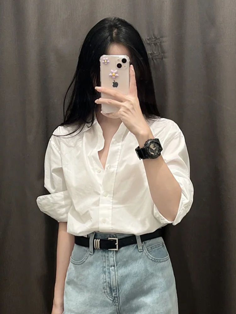 JECCIFIVE白色polo领长袖防晒衬衫女秋季款高级感防晒上衣外套潮