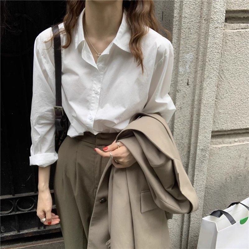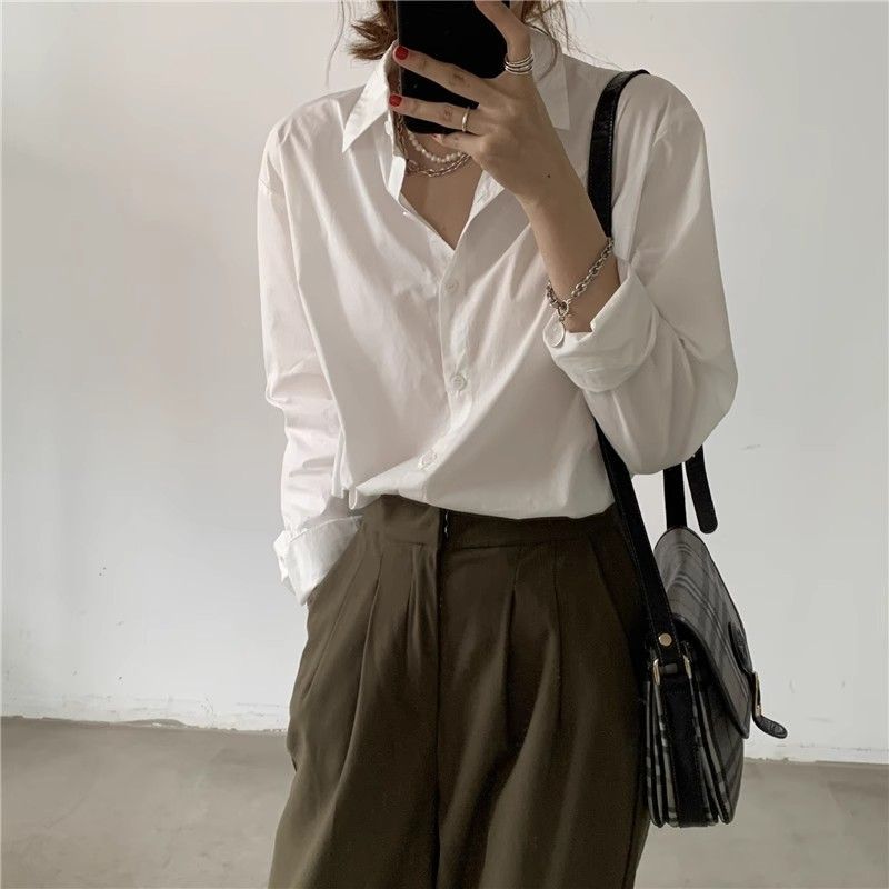 雨薇恋法式轻熟风长袖白色衬衫女夏季通勤设计感翻领上衣小众衬衣