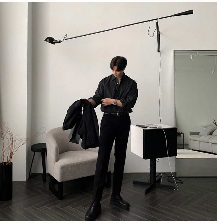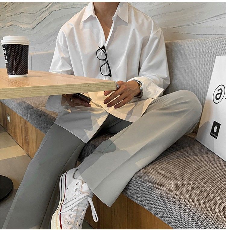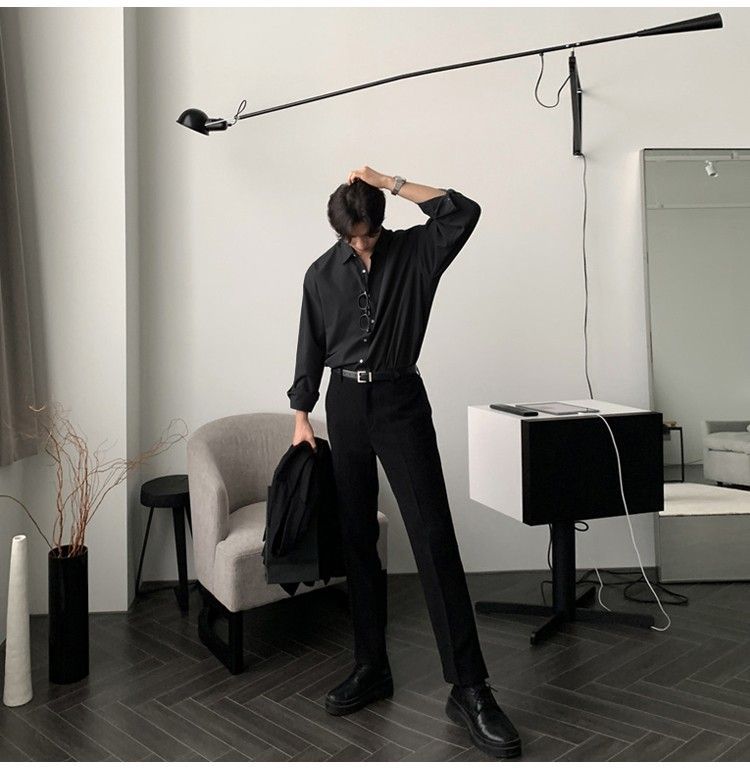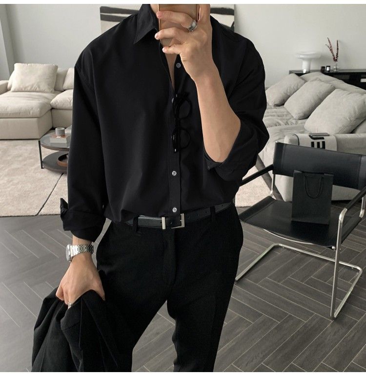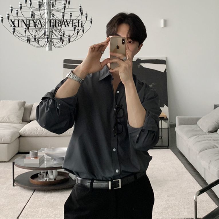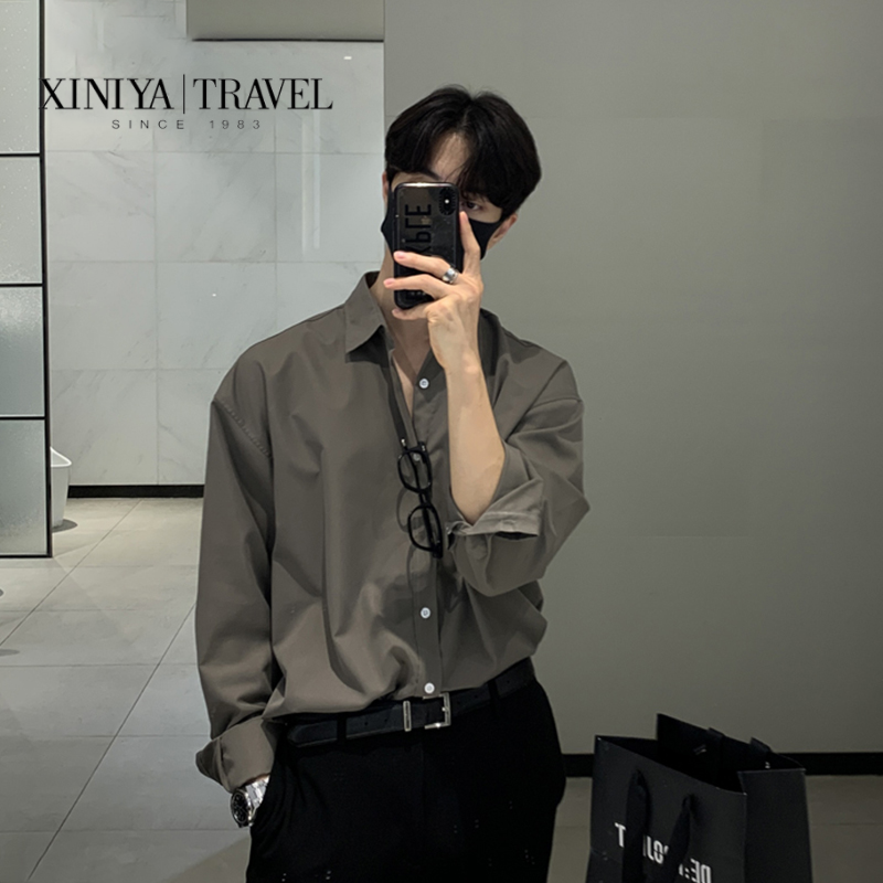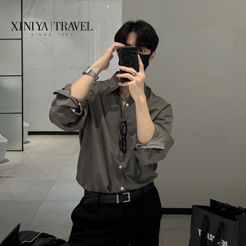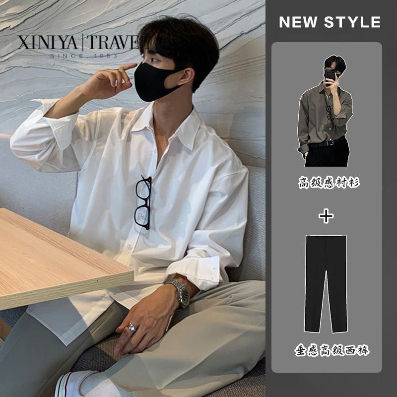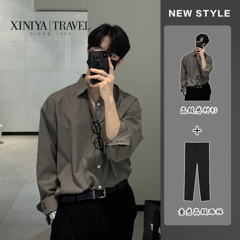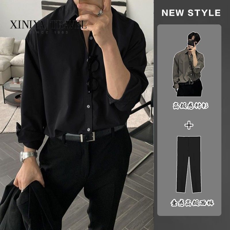 XINIYA长袖衬衫男士套装高级感痞帅外套西装内搭休闲商务韩系上衣