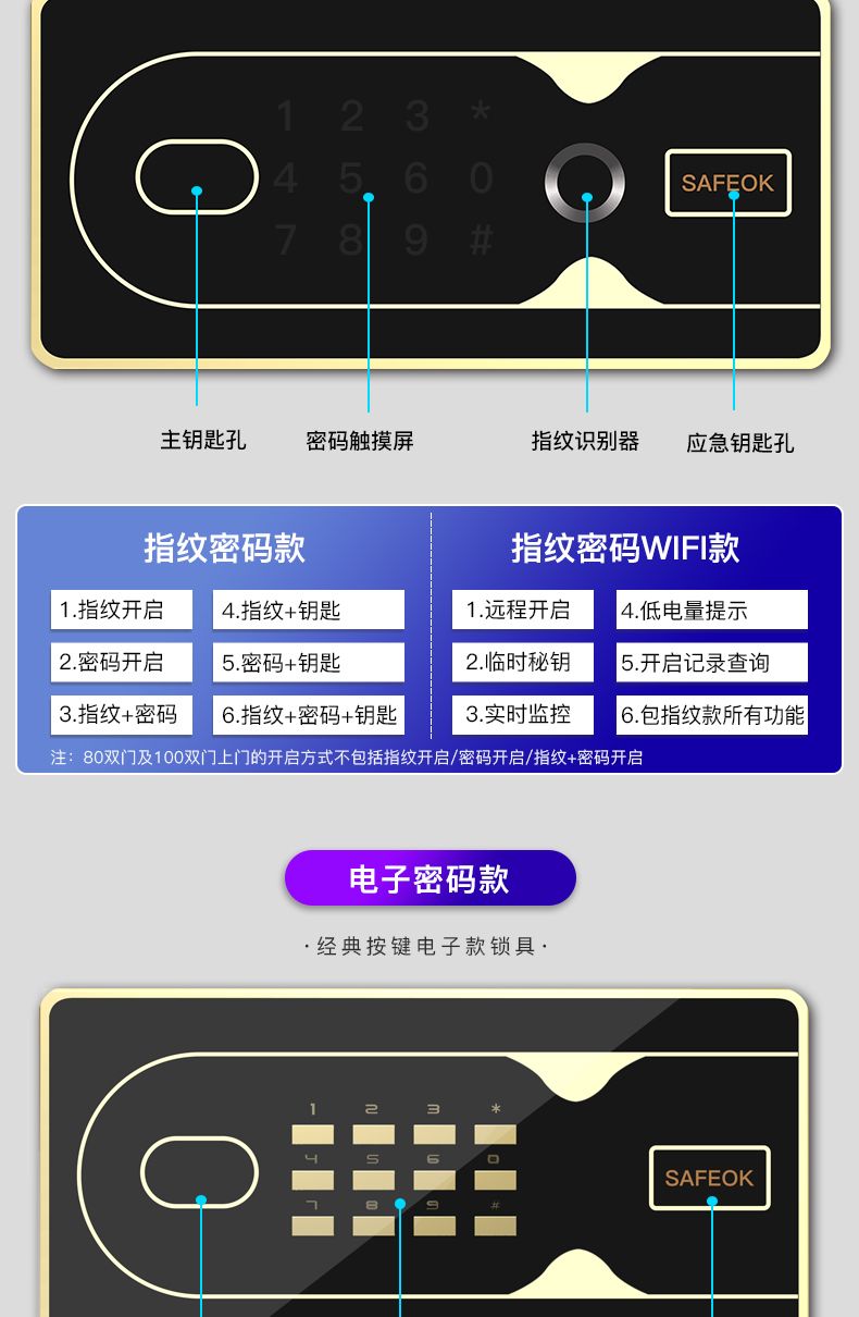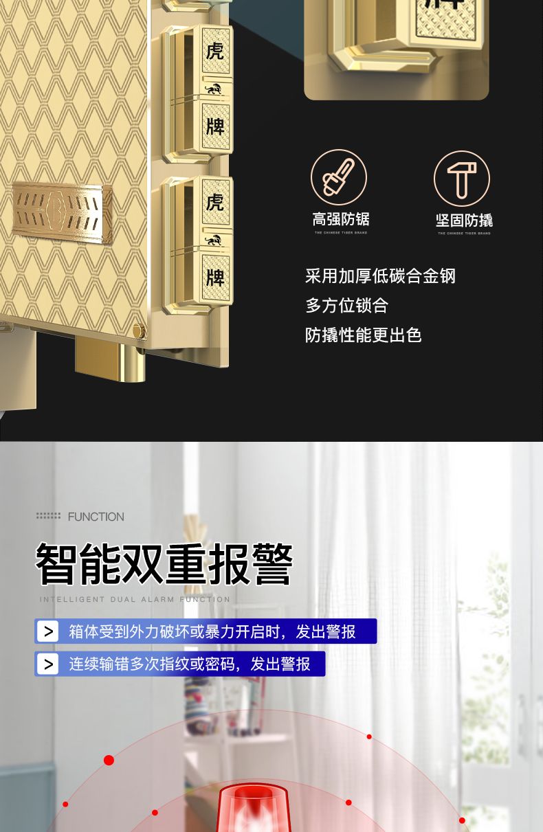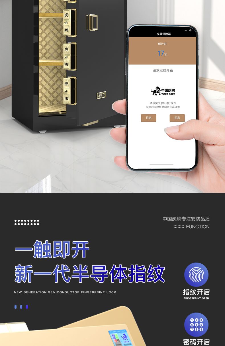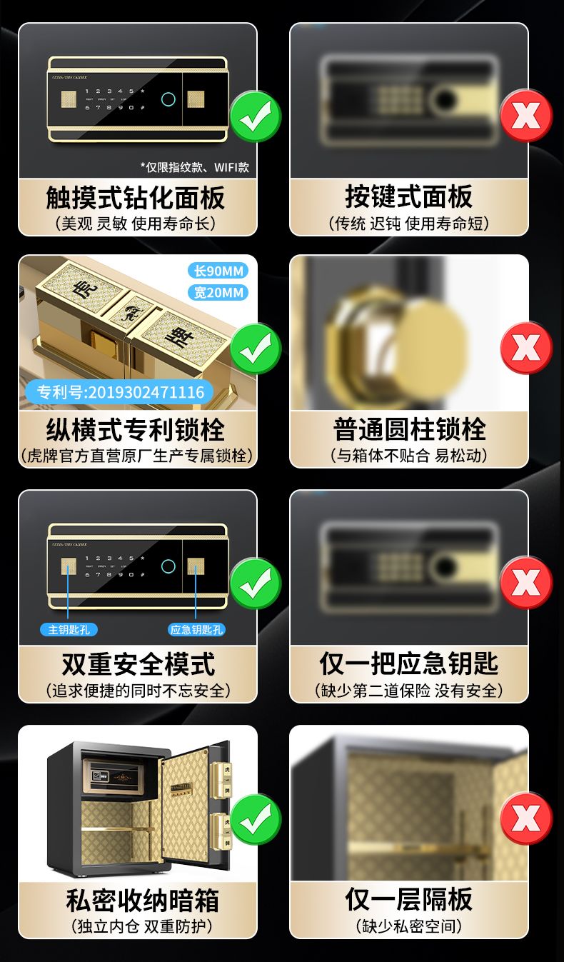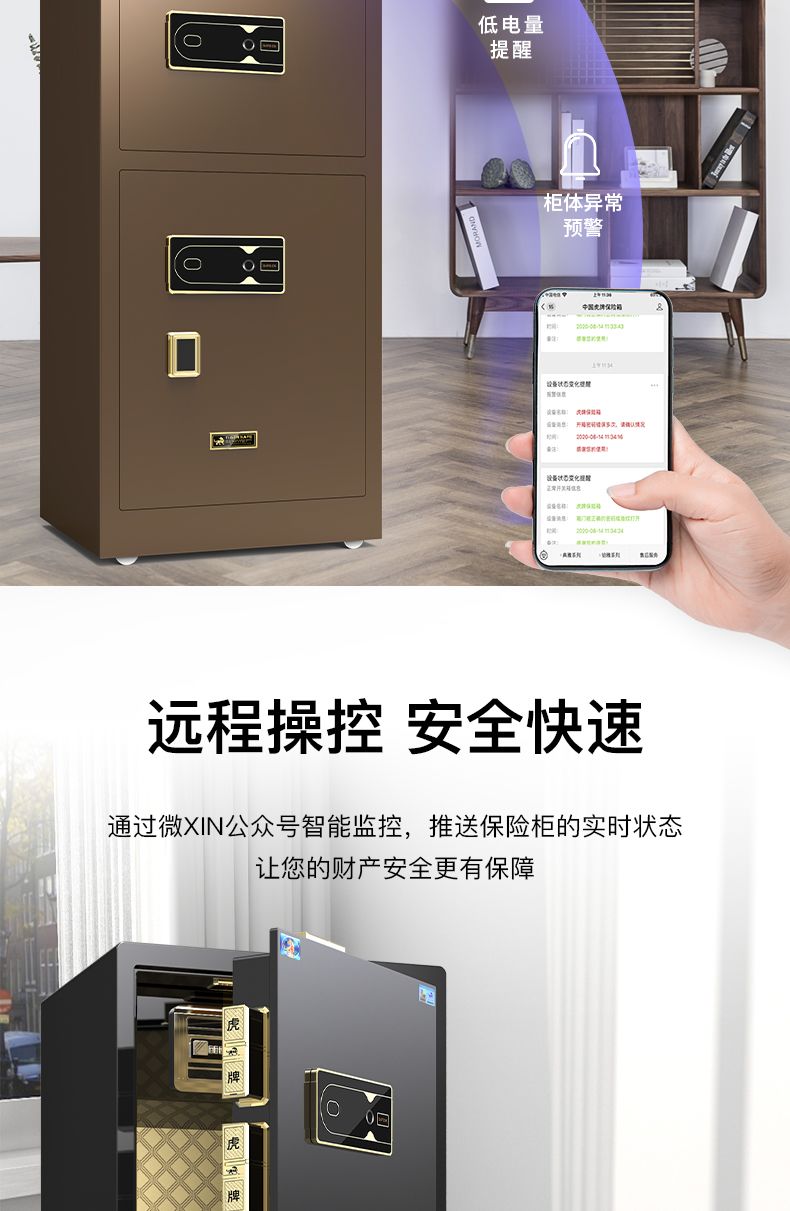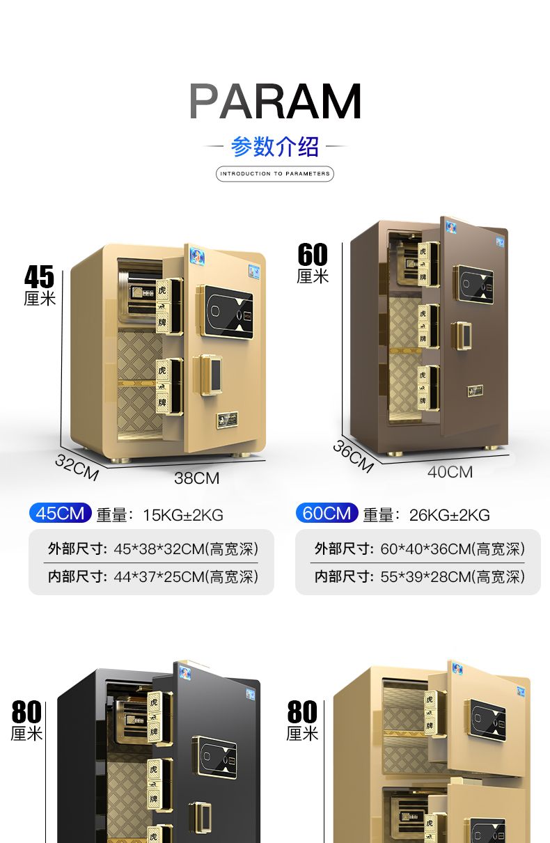 虎牌保险柜家用小型60/80单双门指纹密码办公防盗大型全钢保险箱