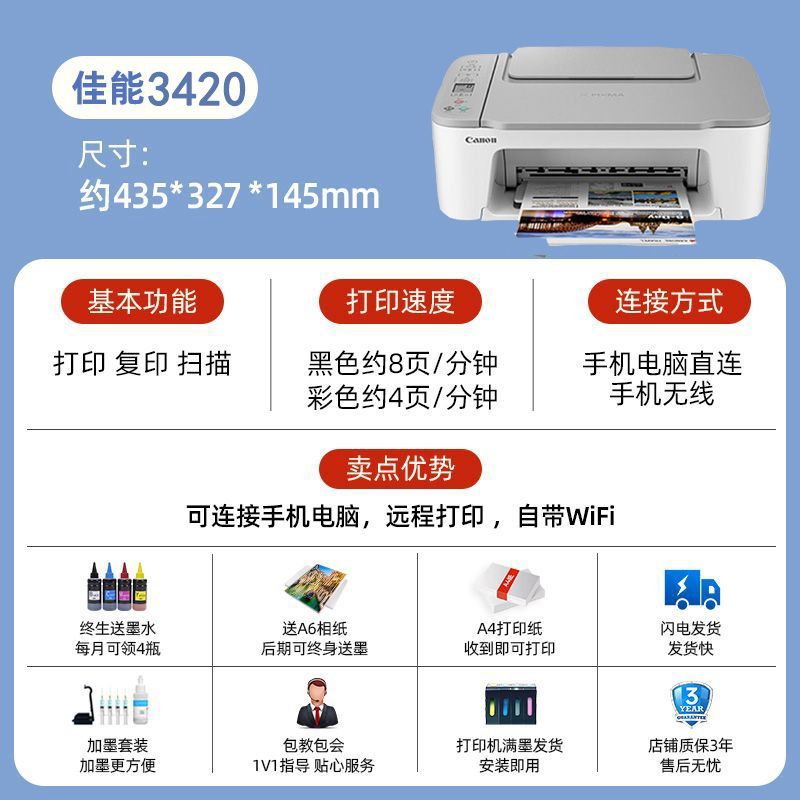 佳能3480打印机家用小型复印一体机家庭喷墨学生彩色手机照片办公