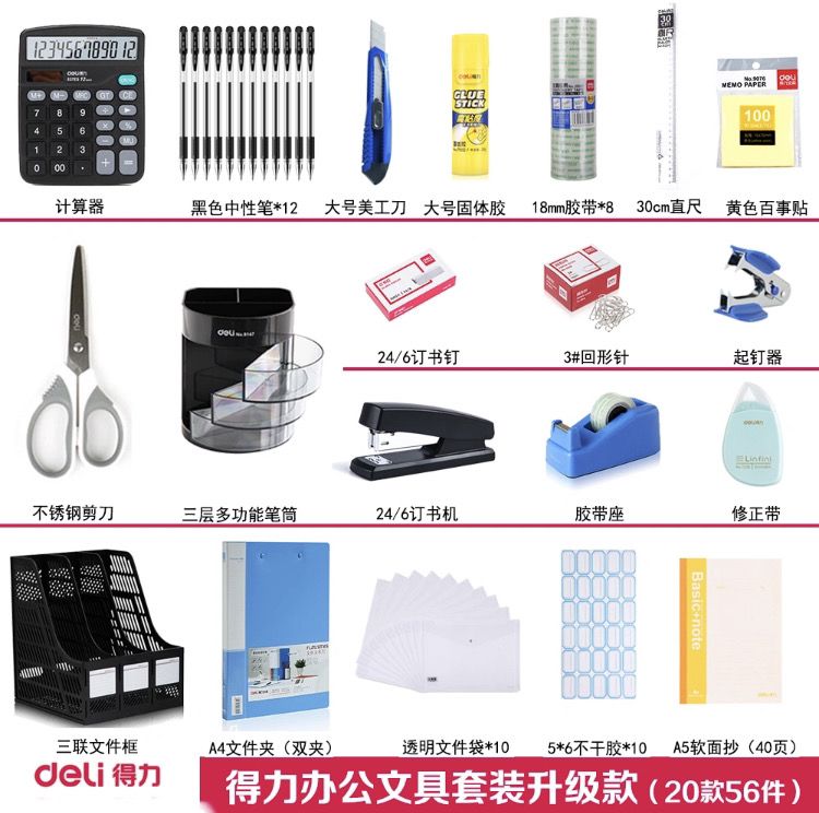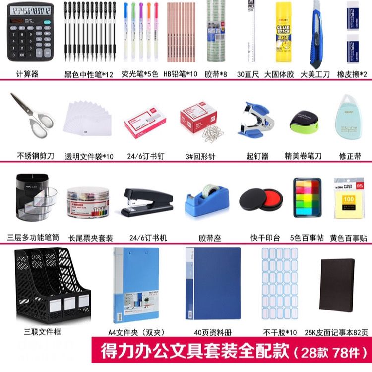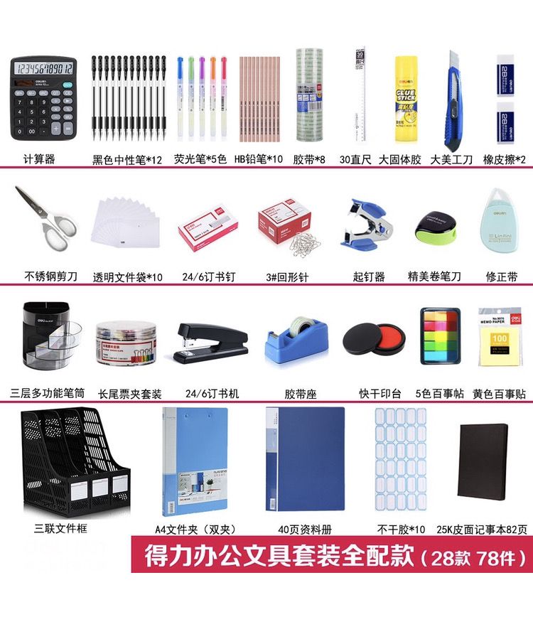 得力办公用品文具套装餐多款组合新职场员工开工开学必备全套创意