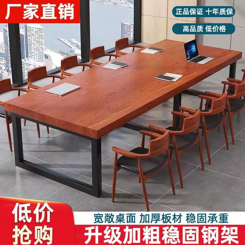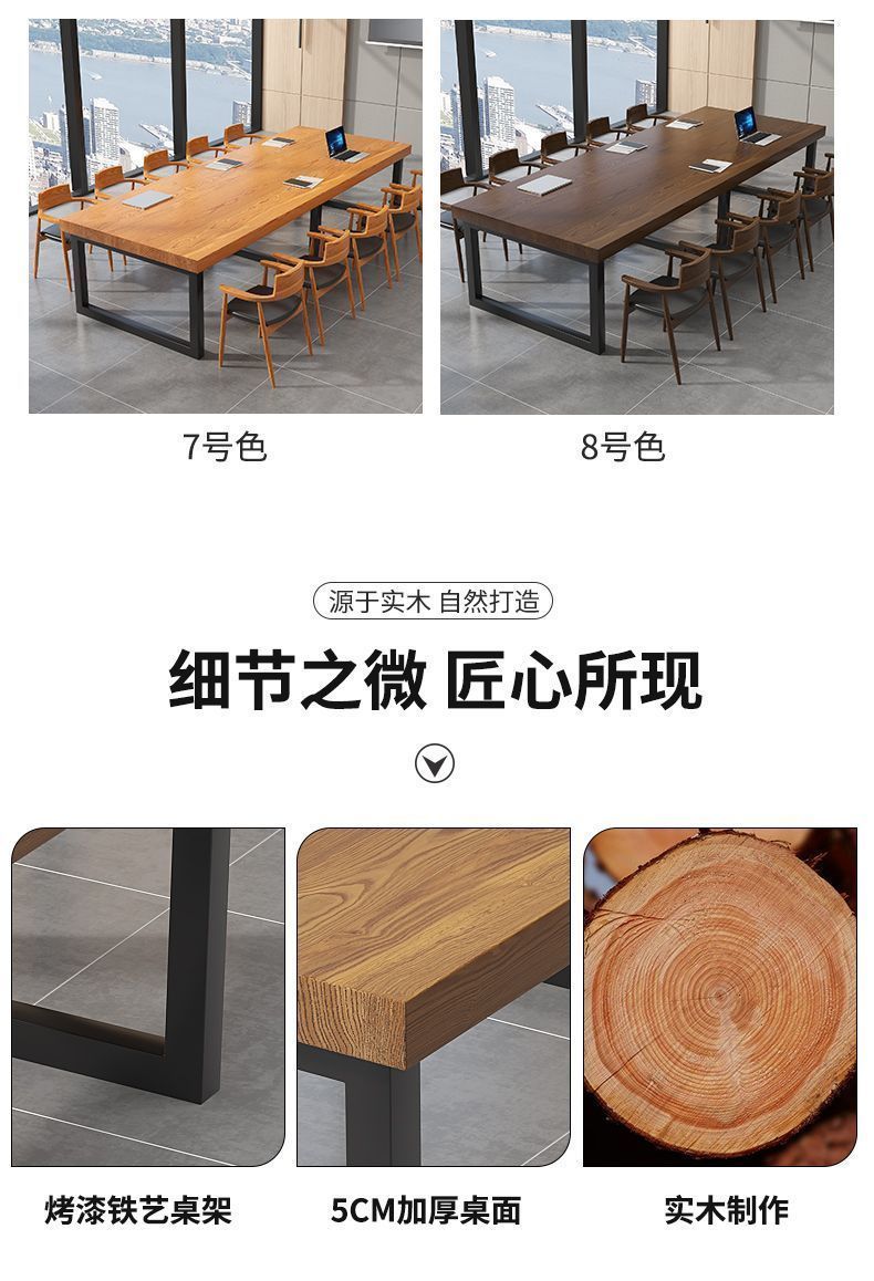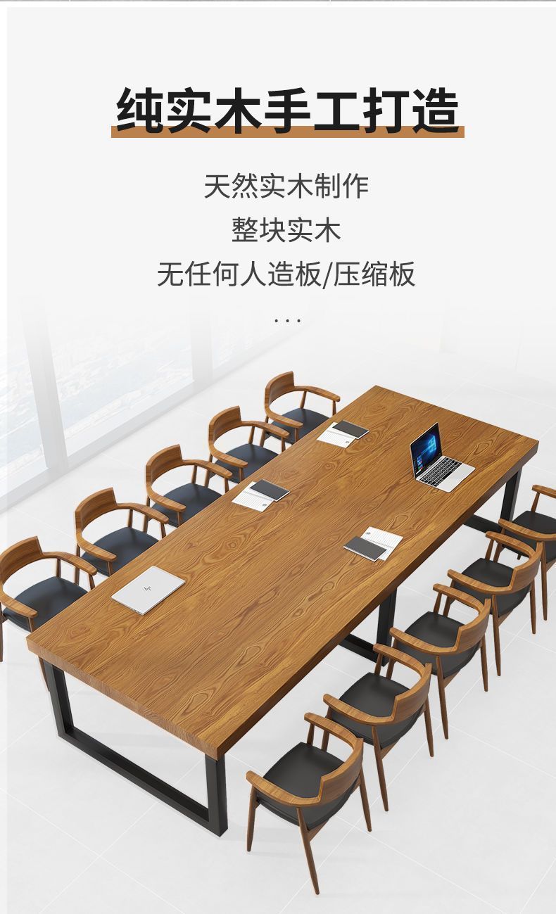 实木办公室会议桌洽谈桌简约现代职员工培训桌会议室长条桌办公桌