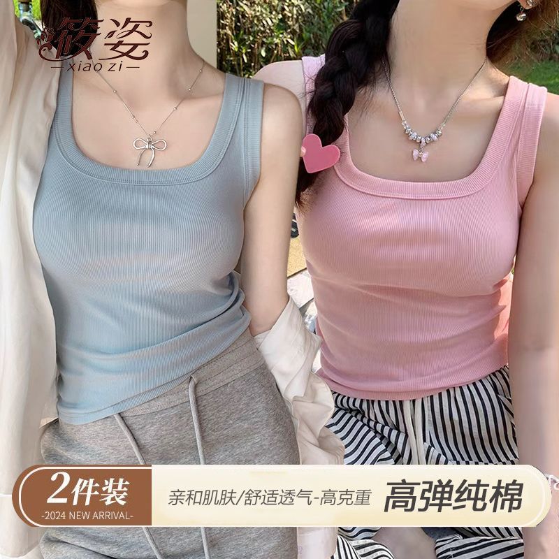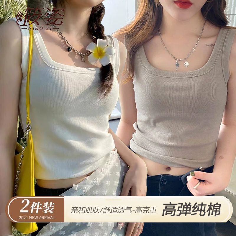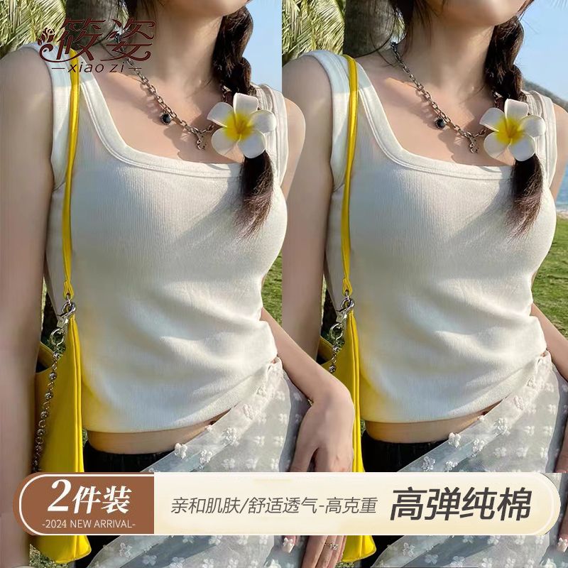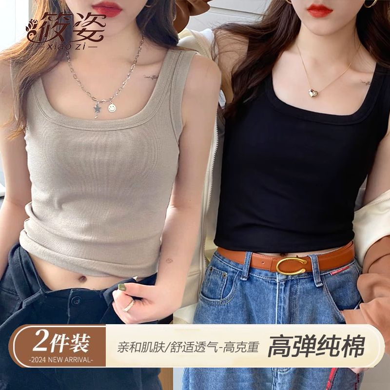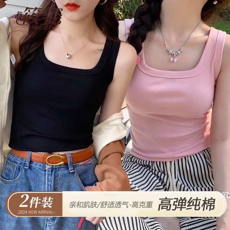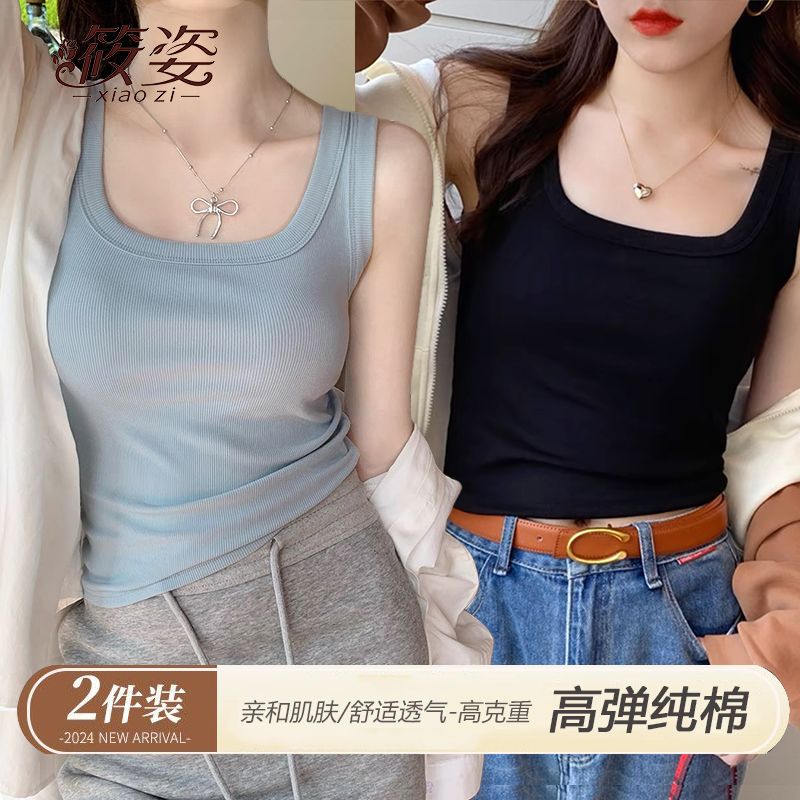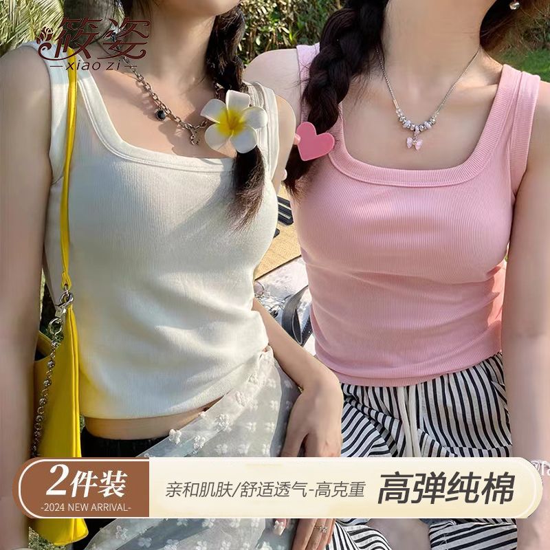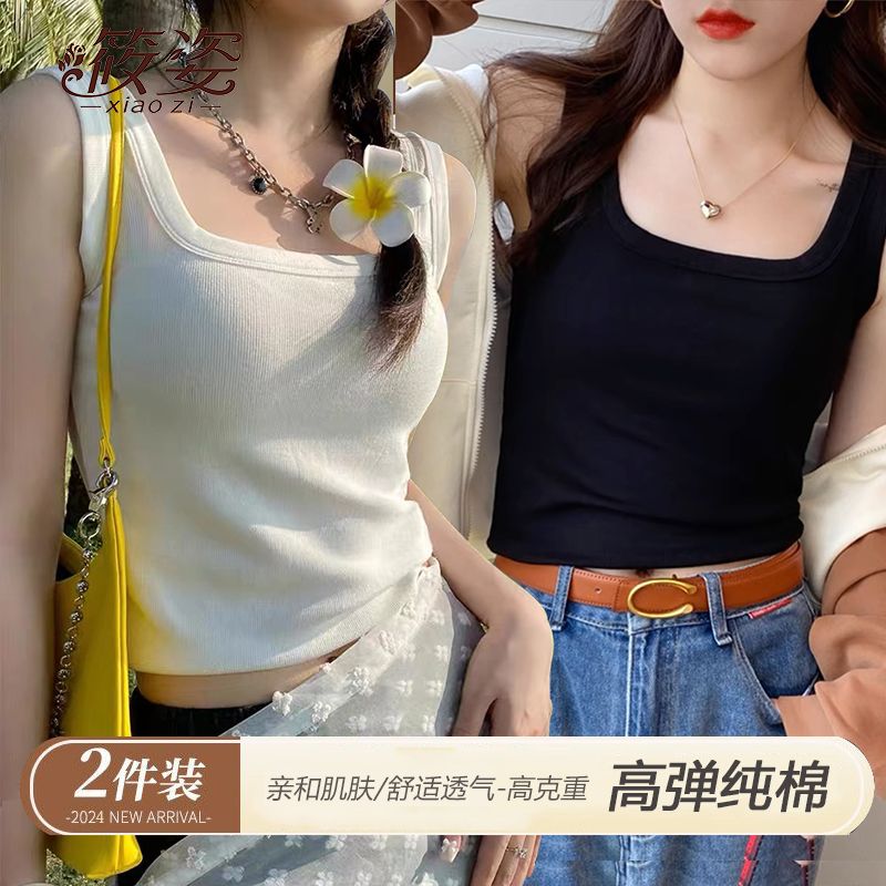 纯棉方领背心女夏季纯欲风打底螺纹修身吊带显瘦美式工装无袖上衣