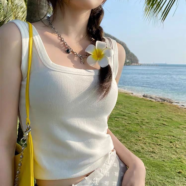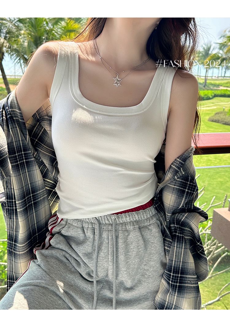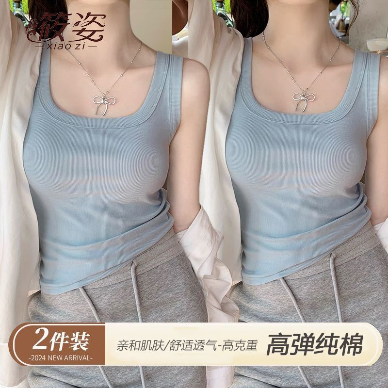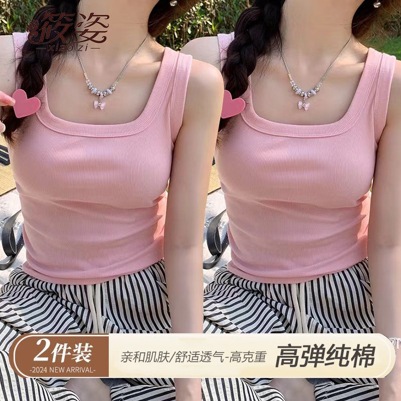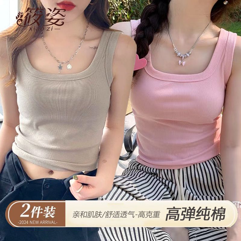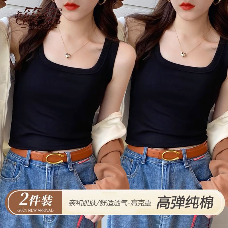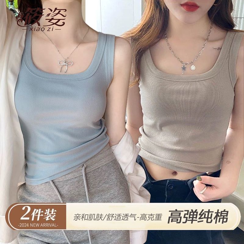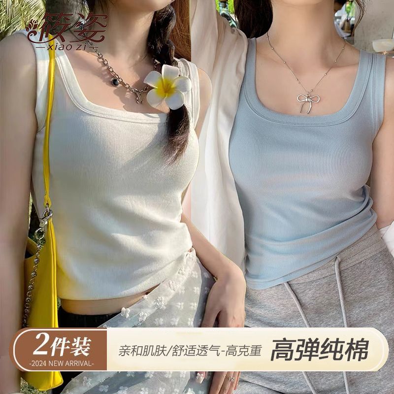 纯棉方领背心女夏季纯欲风打底螺纹修身吊带显瘦美式工装无袖上衣