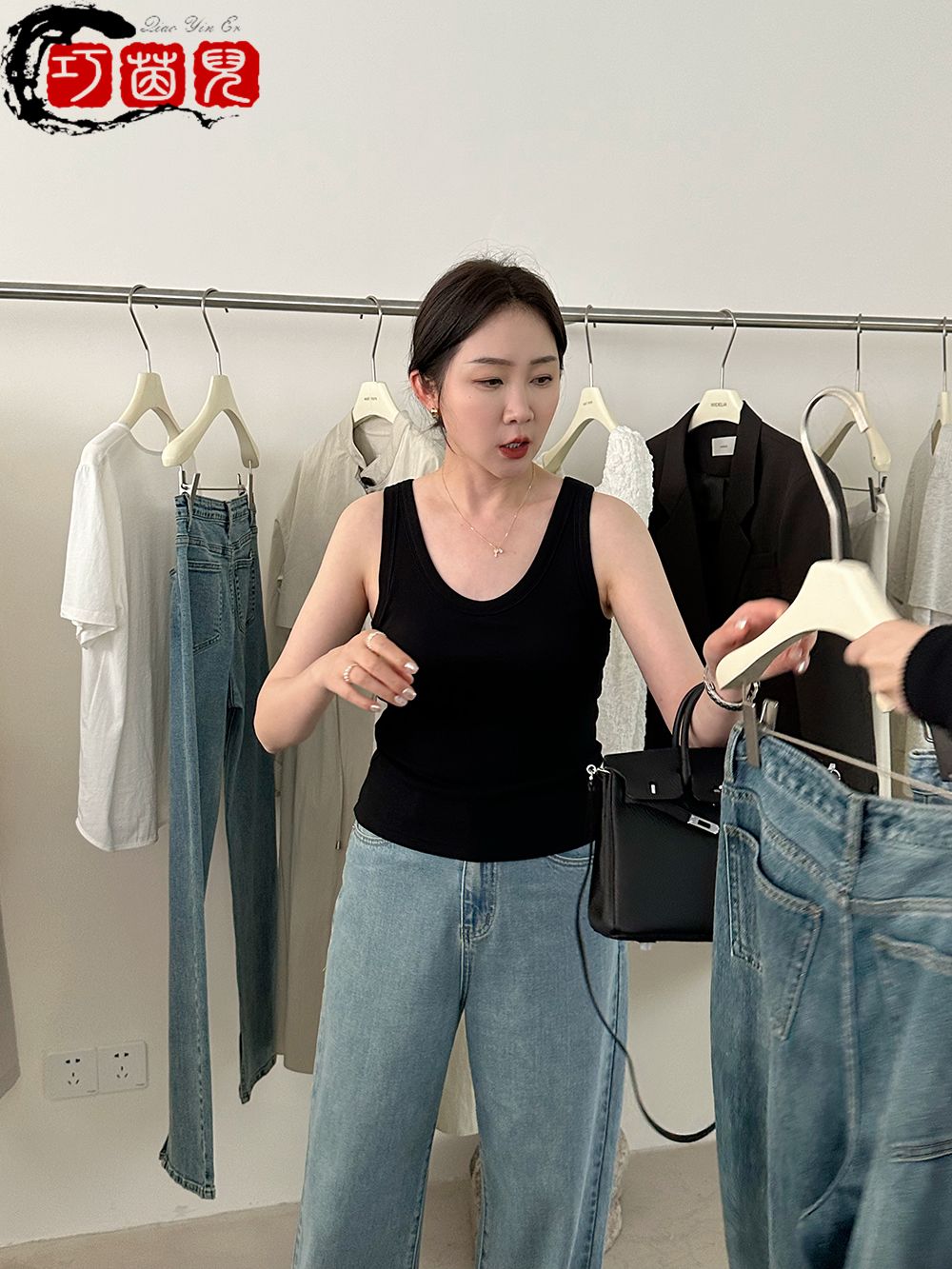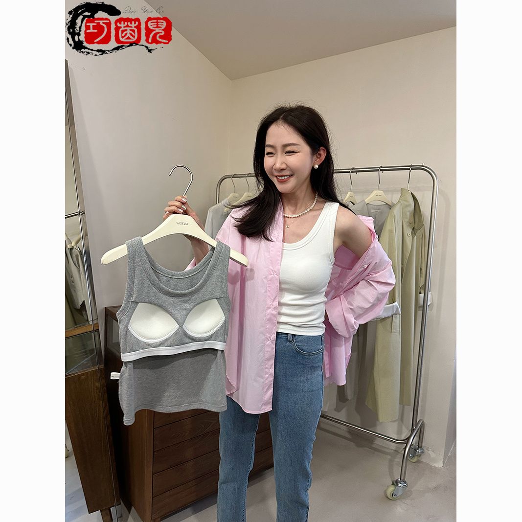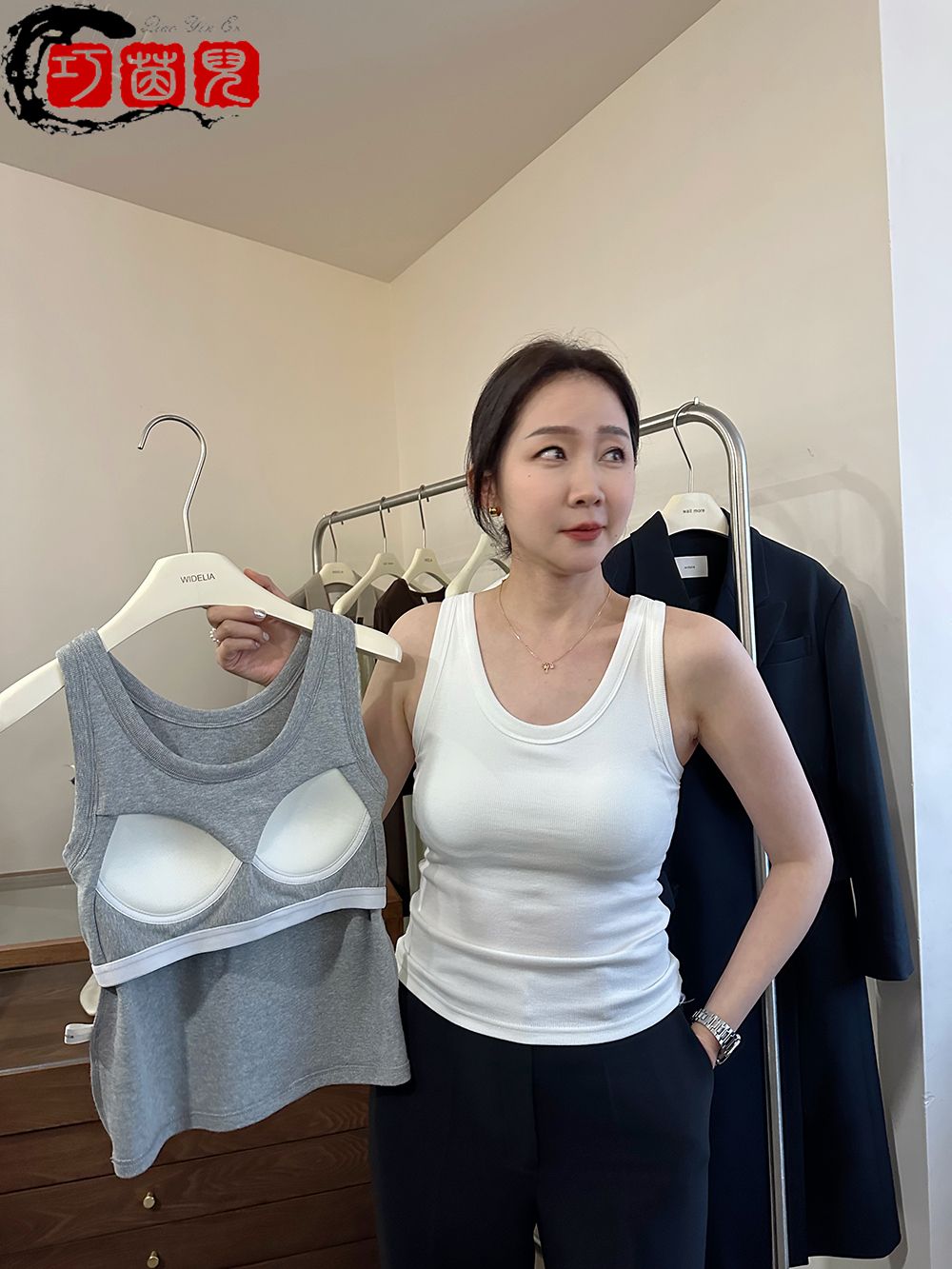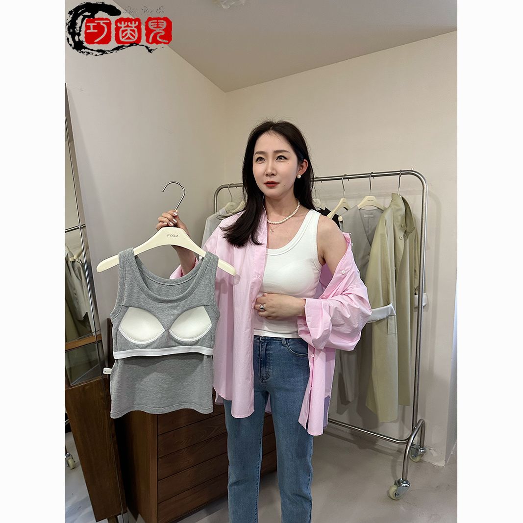40支显瘦螺纹吊带背心女外穿修身防走光带胸垫一体打底衫内搭上衣