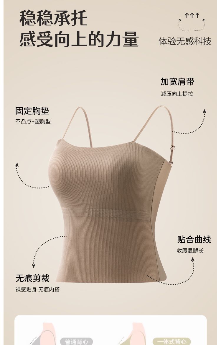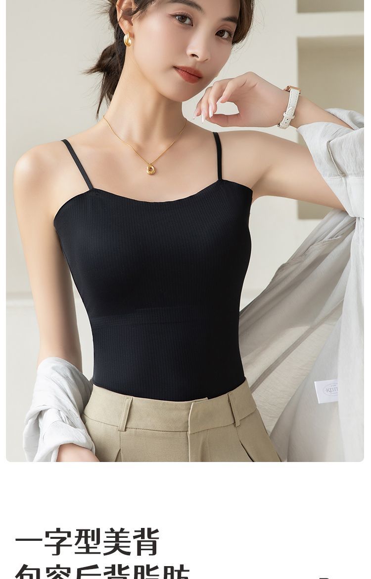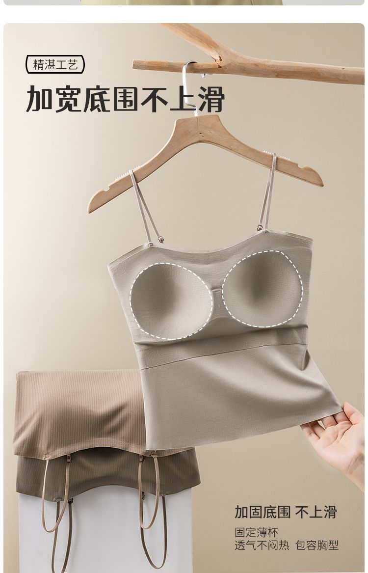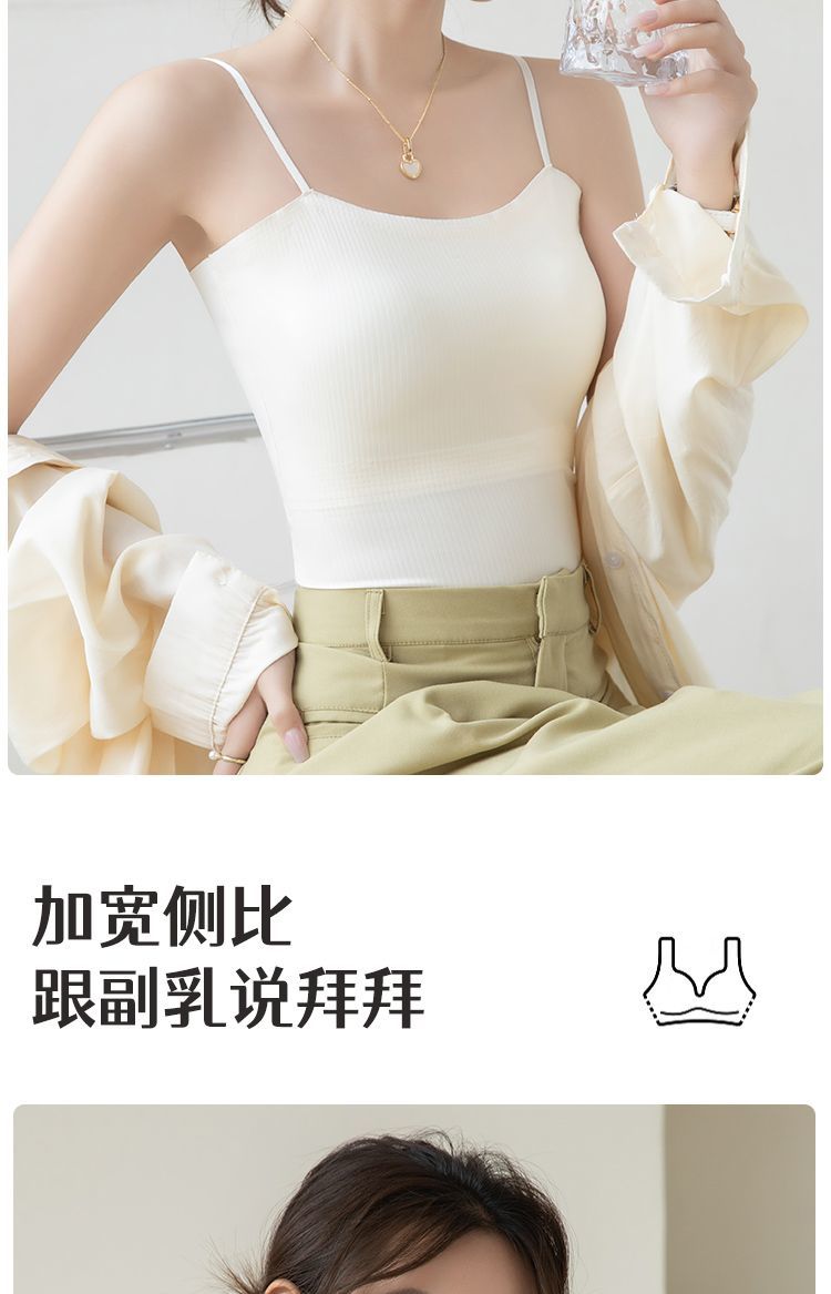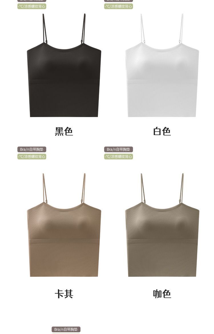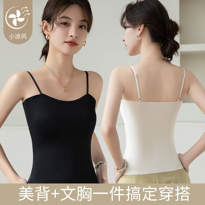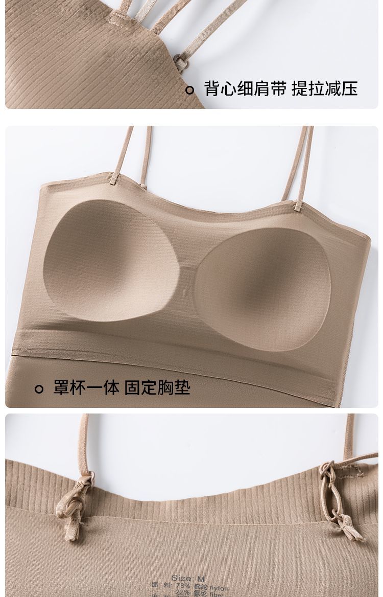 冰丝吊带美背文胸一体固定杯2024夏网红内搭显瘦夏无痕带胸垫背心