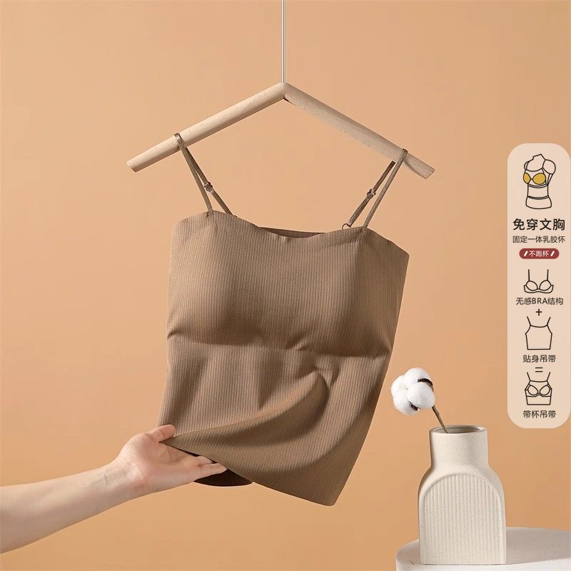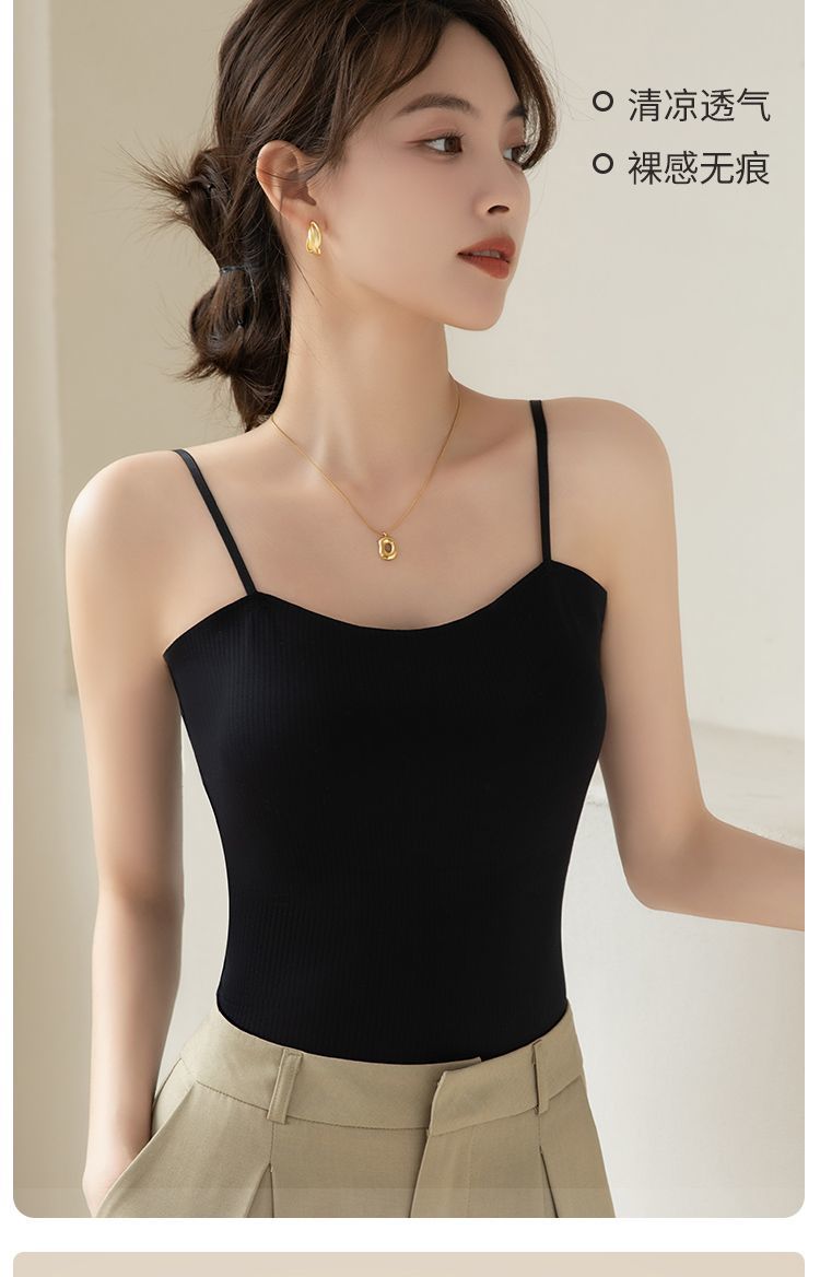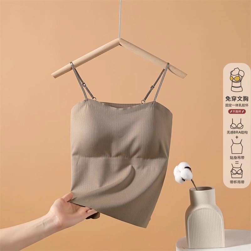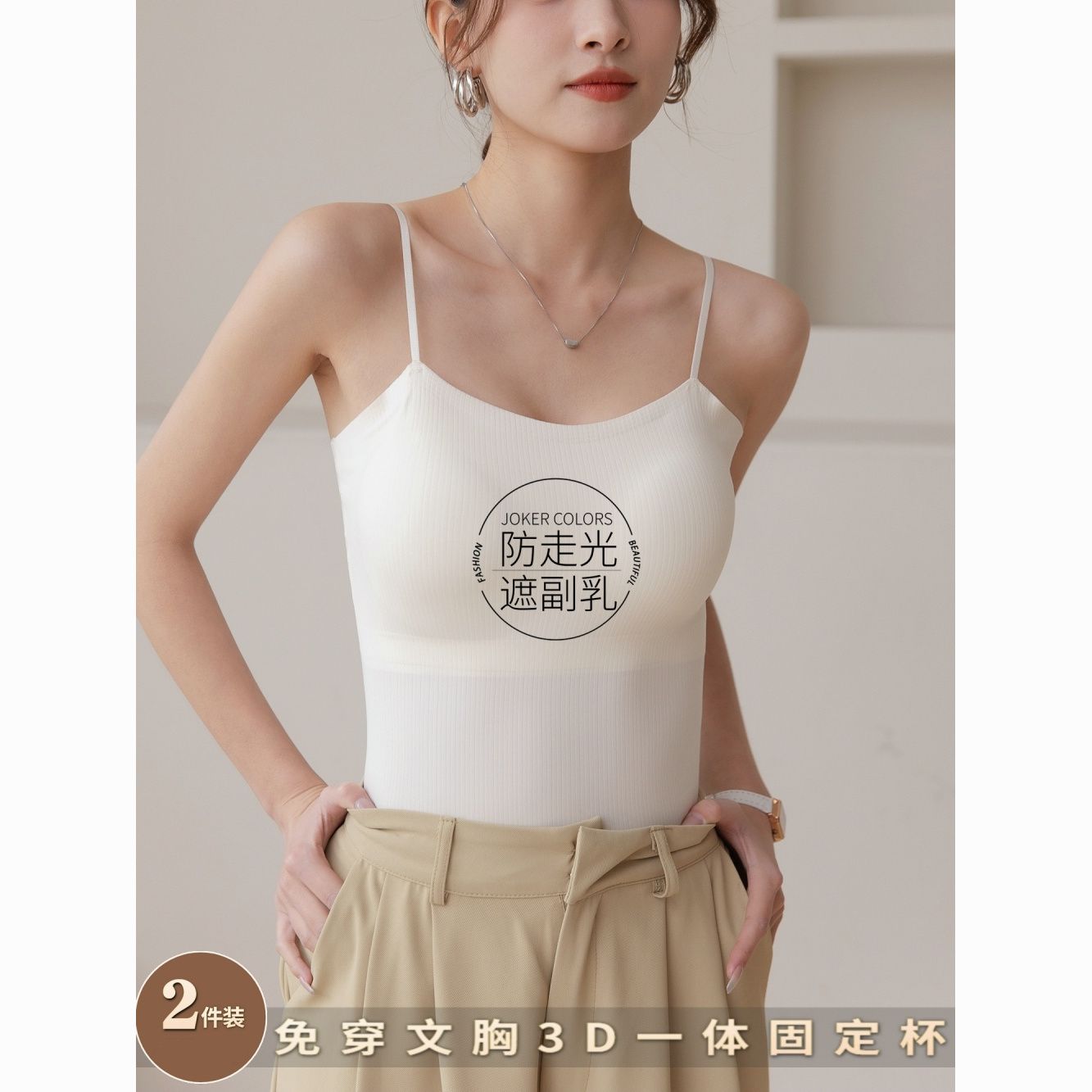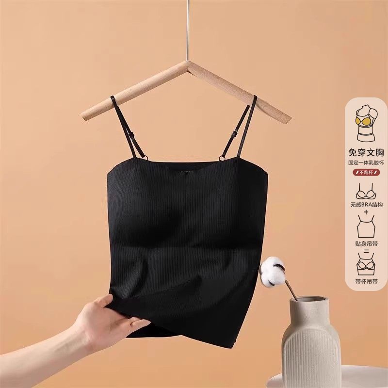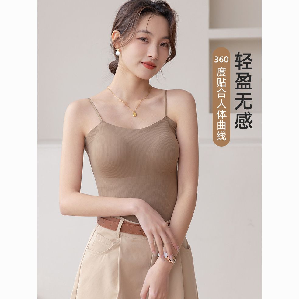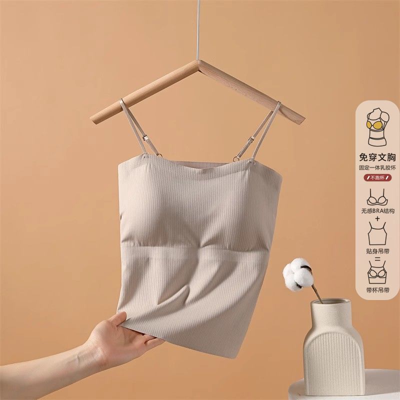 冰丝吊带美背文胸一体固定杯2024夏网红内搭显瘦夏无痕带胸垫背心