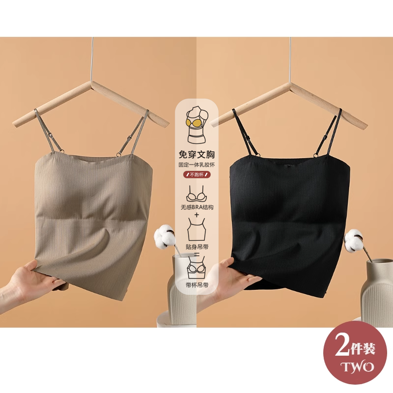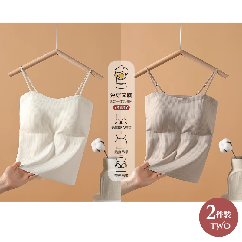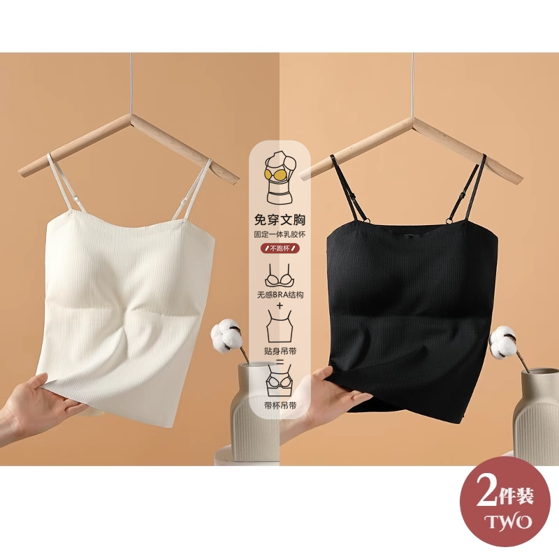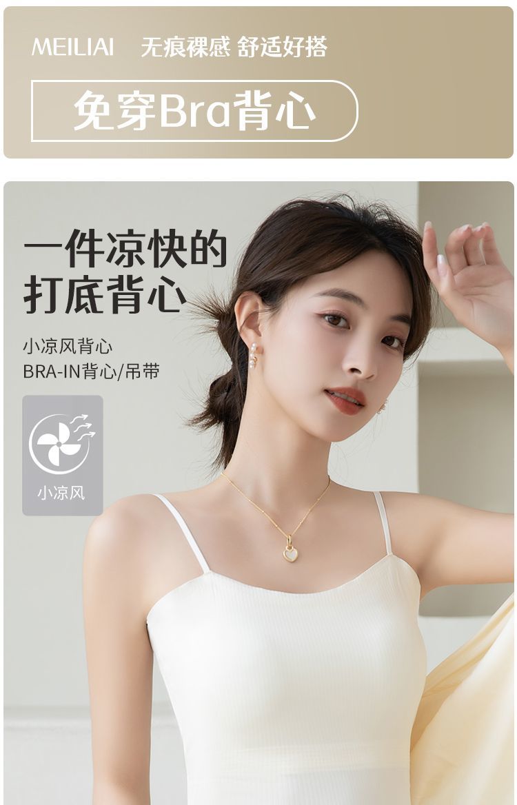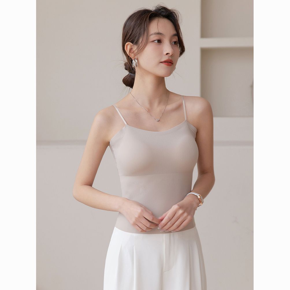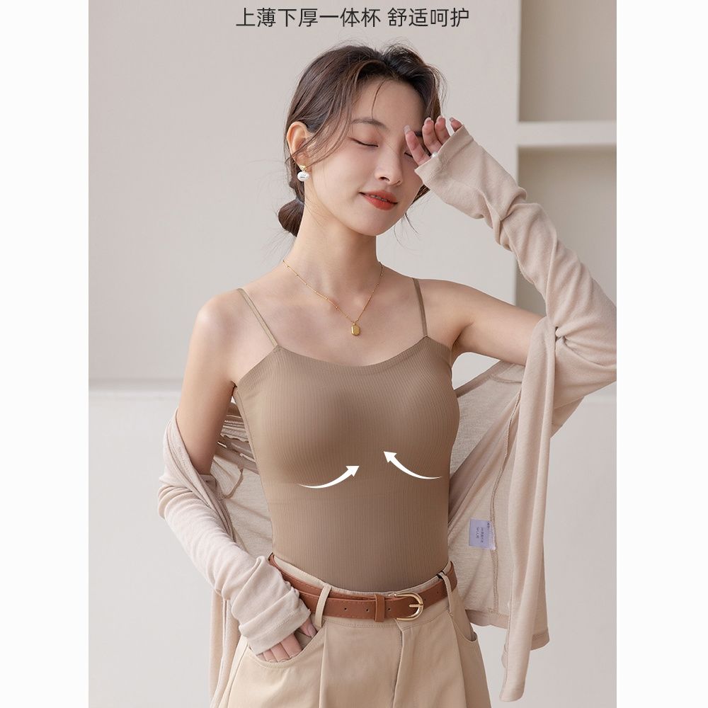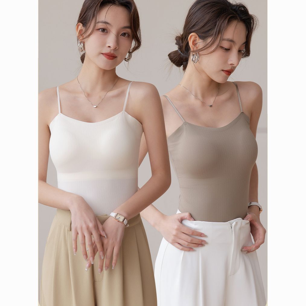 冰丝吊带美背文胸一体固定杯2024夏网红内搭显瘦夏无痕带胸垫背心