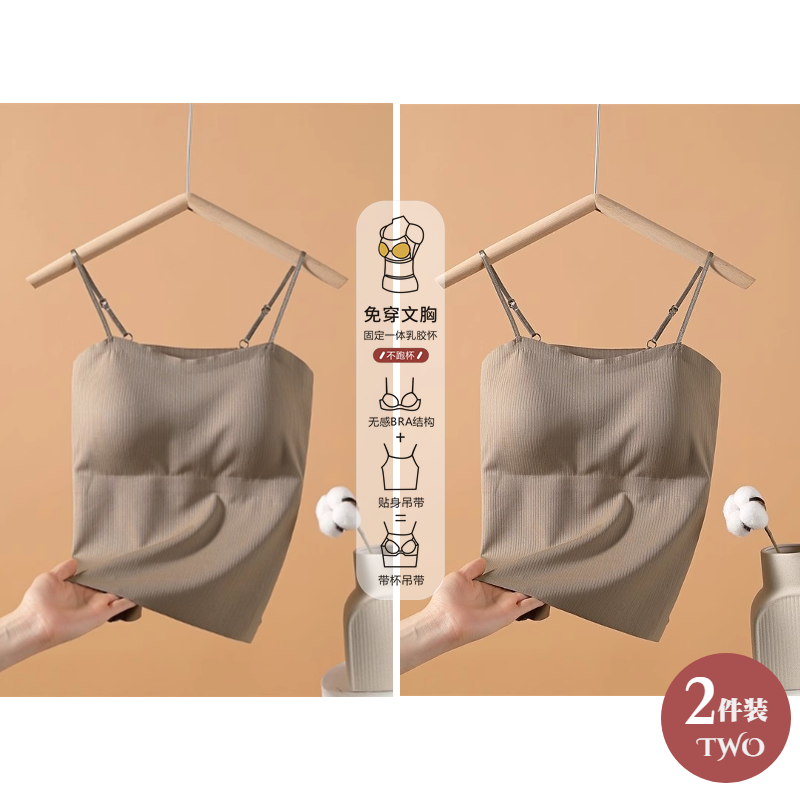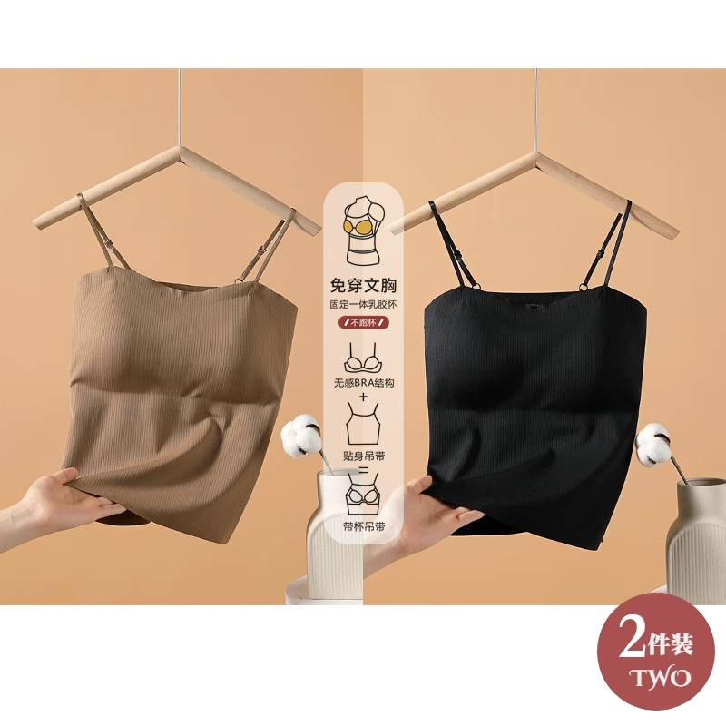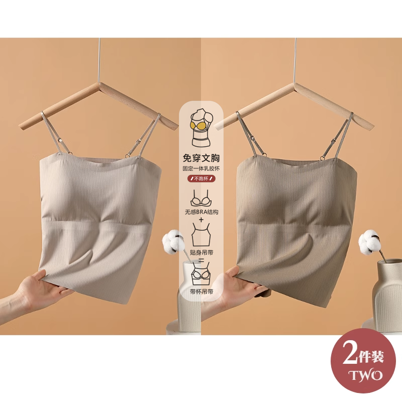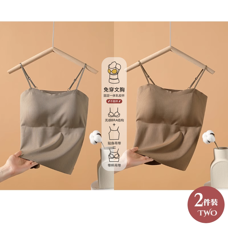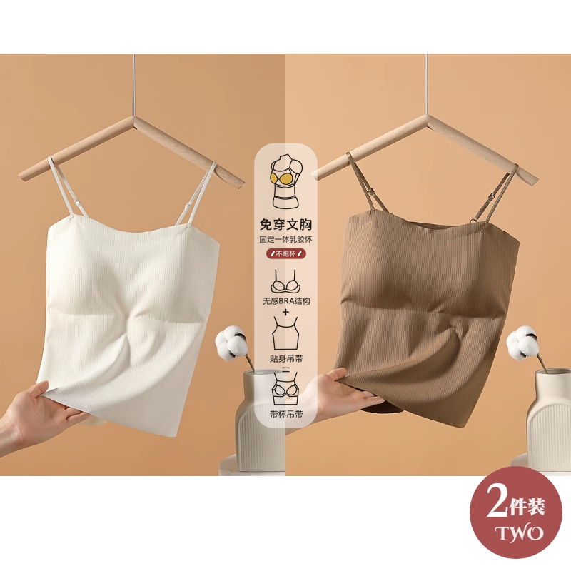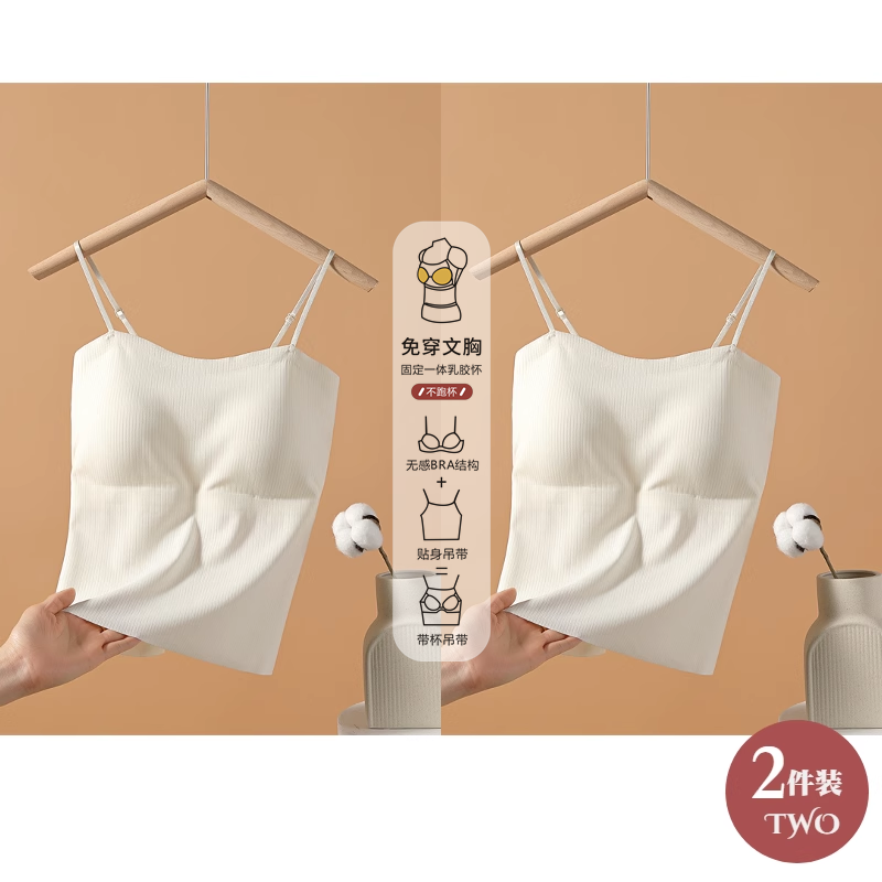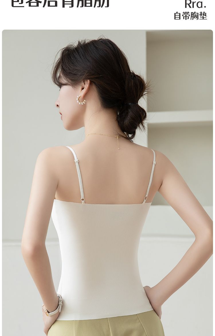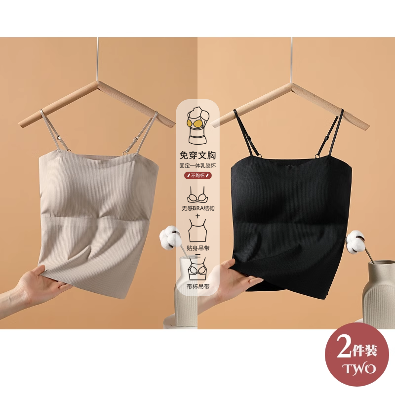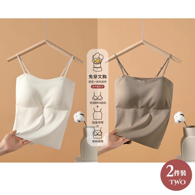 冰丝吊带美背文胸一体固定杯2024夏网红内搭显瘦夏无痕带胸垫背心