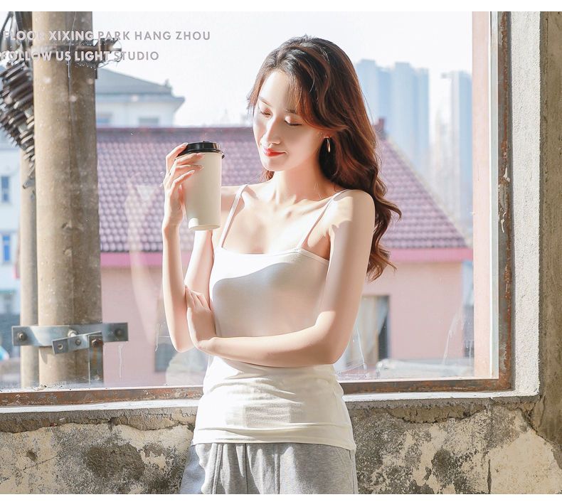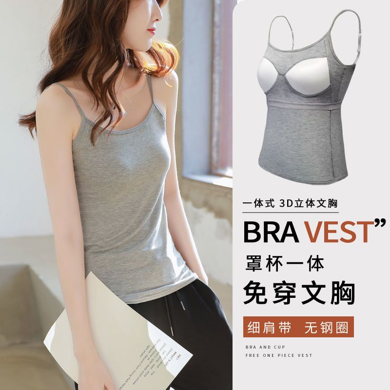 莫代尔带胸垫聚拢吊带背心女夏外穿显瘦露肩美背无袖上衣内搭性感