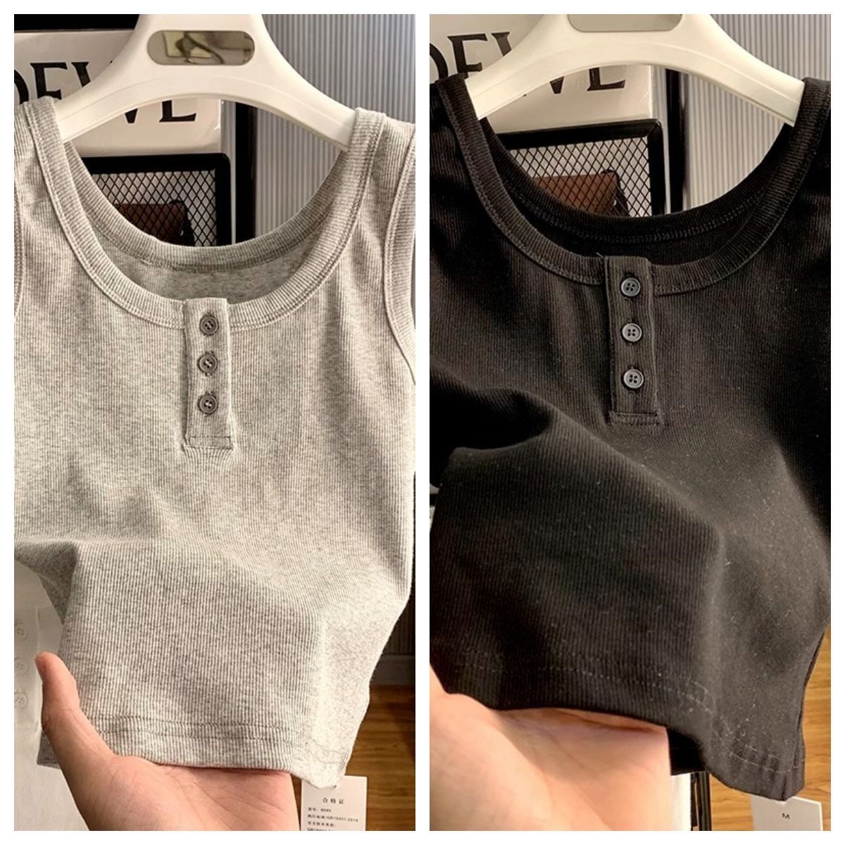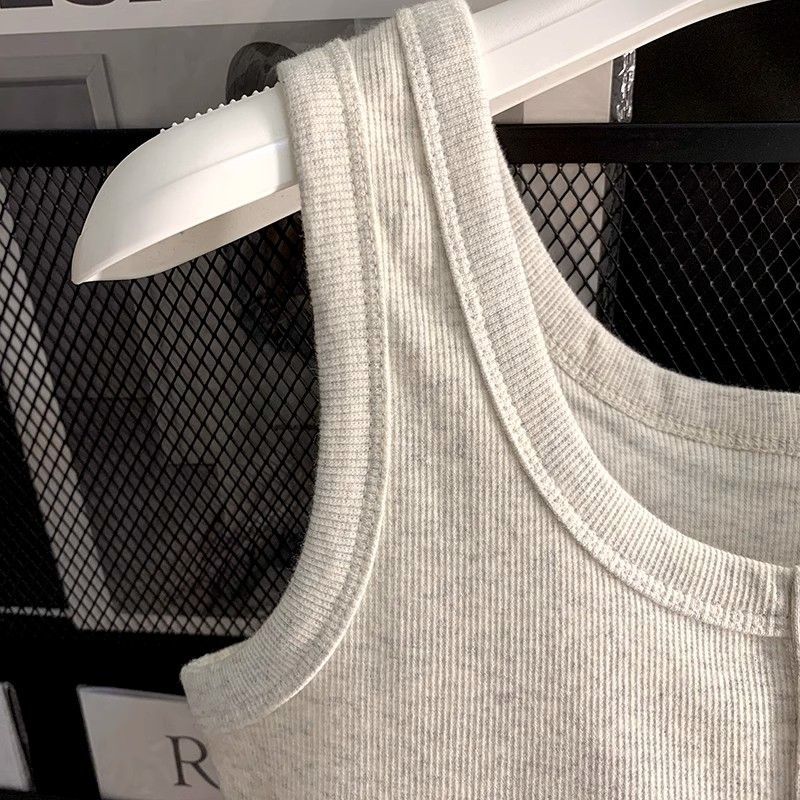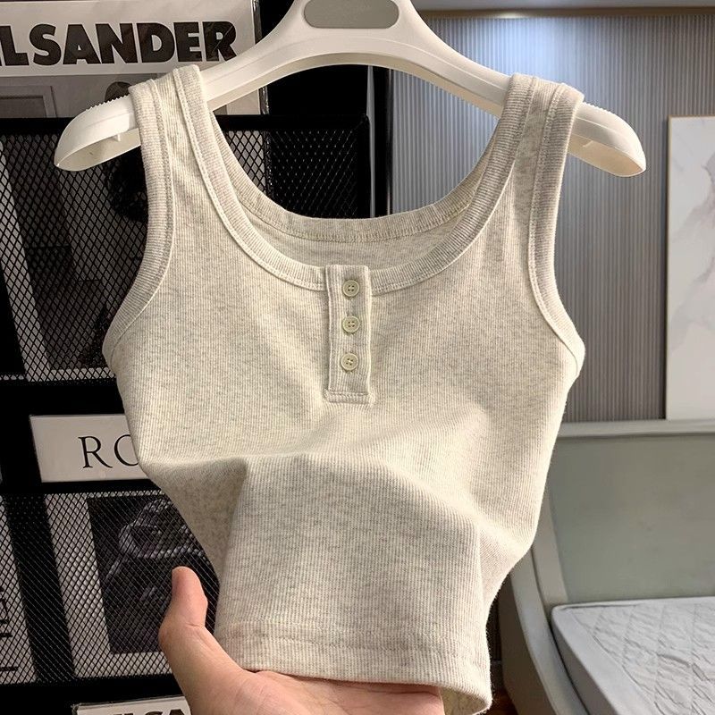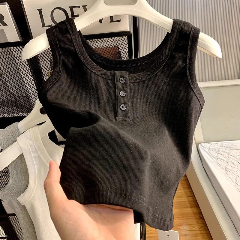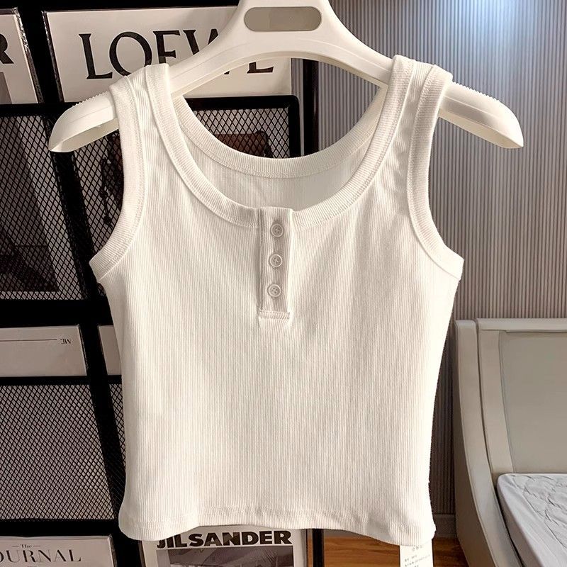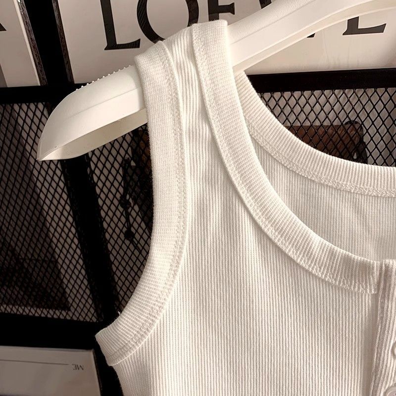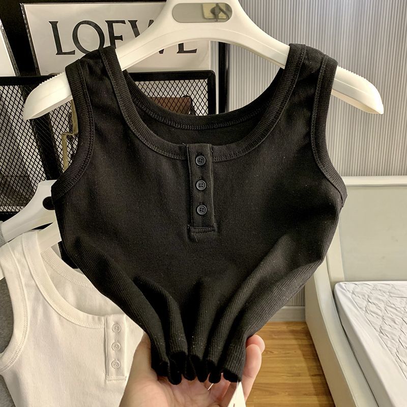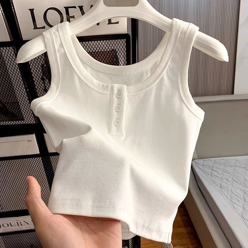 吊带背心女纽扣螺纹夏季甜辣风打底衫修身显瘦短款上衣背心女外穿