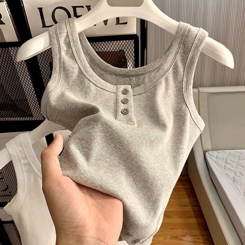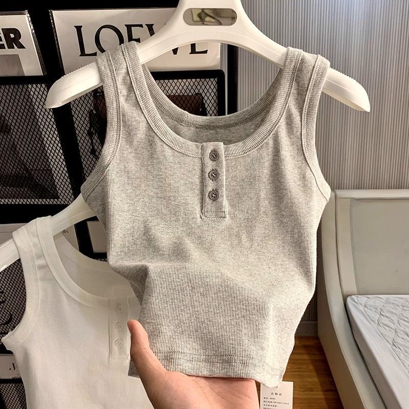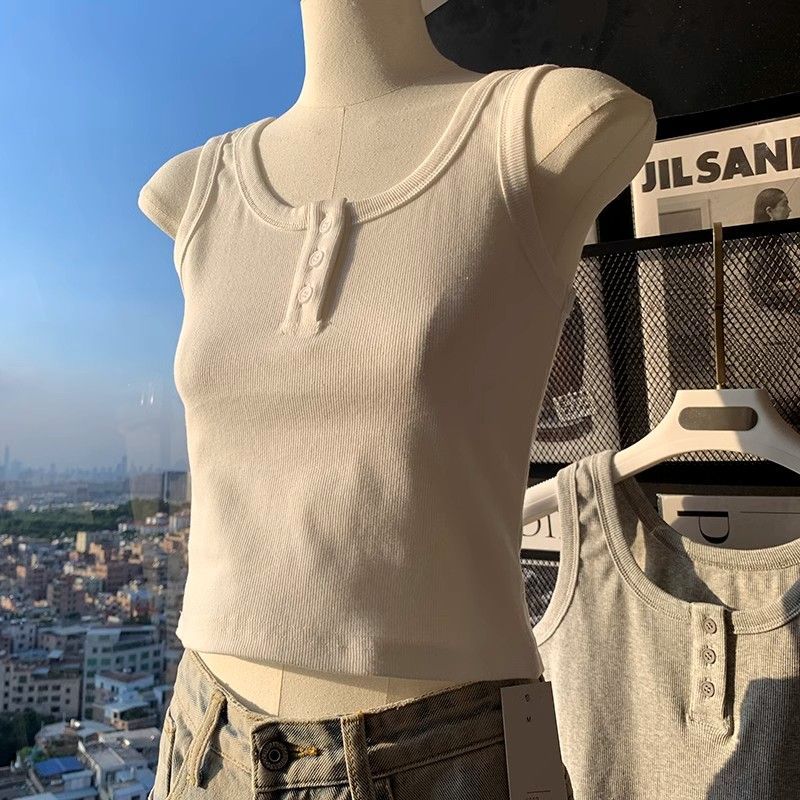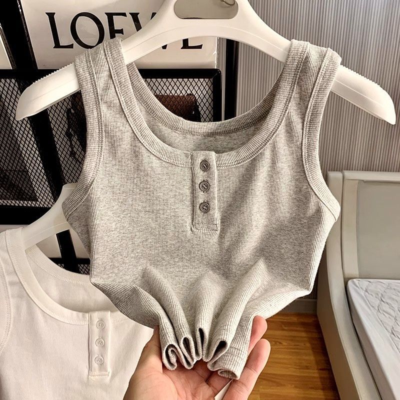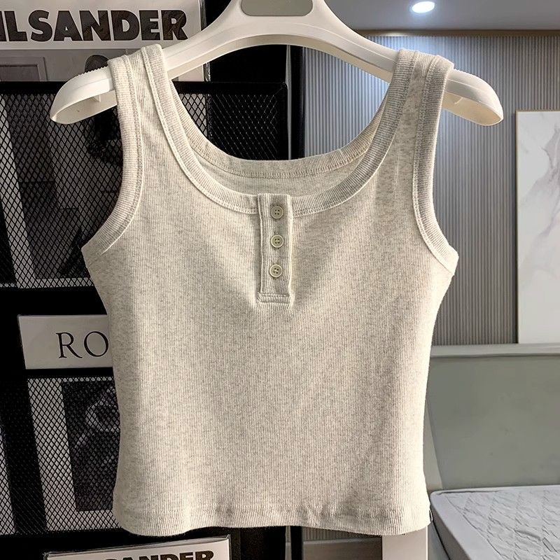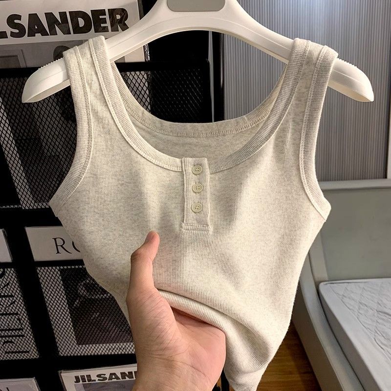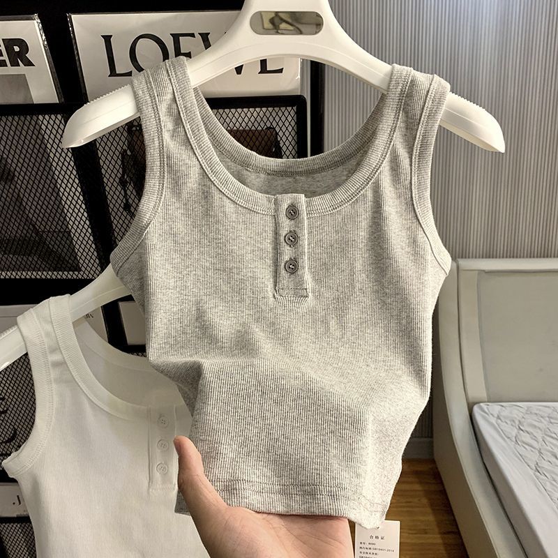 吊带背心女纽扣螺纹夏季甜辣风打底衫修身显瘦短款上衣背心女外穿