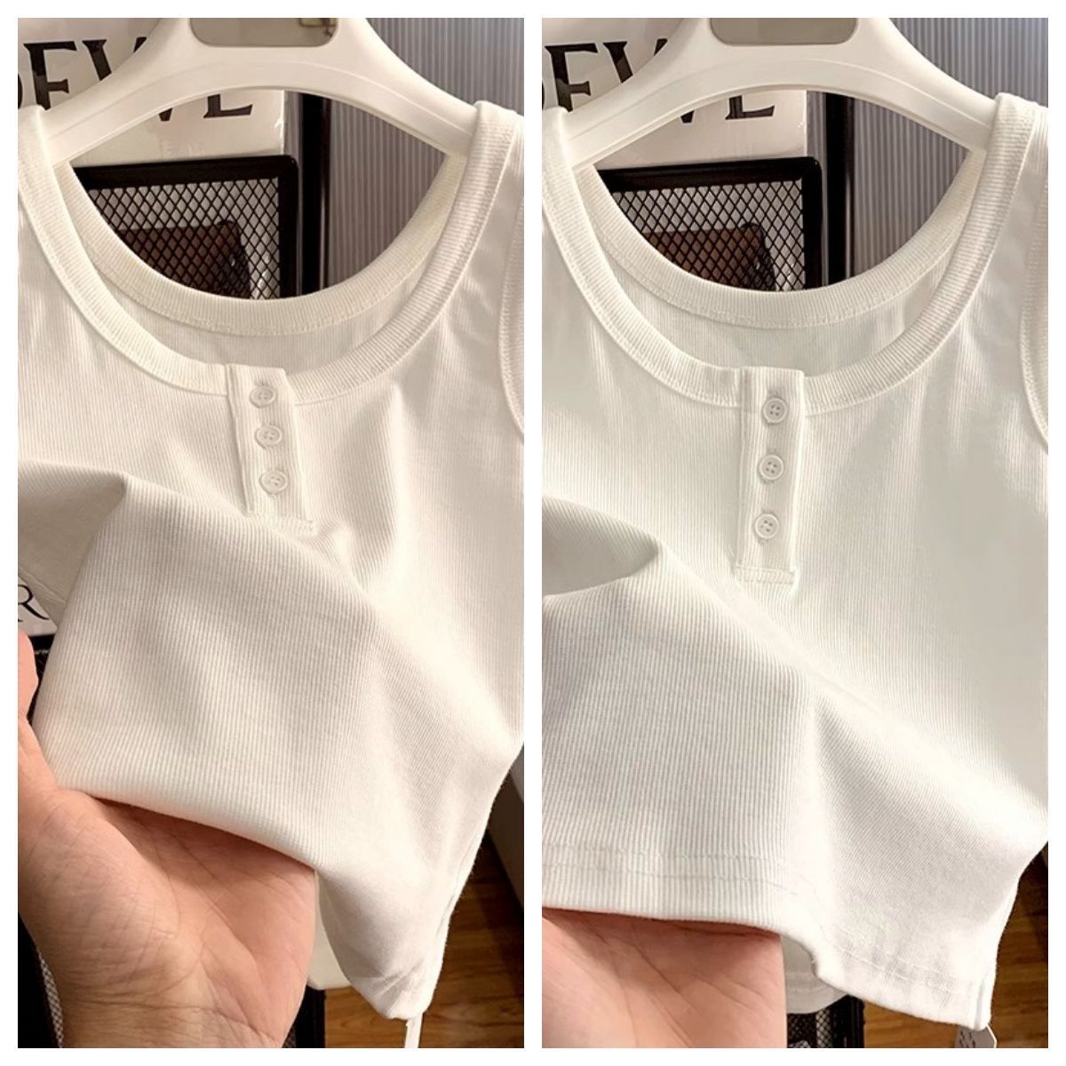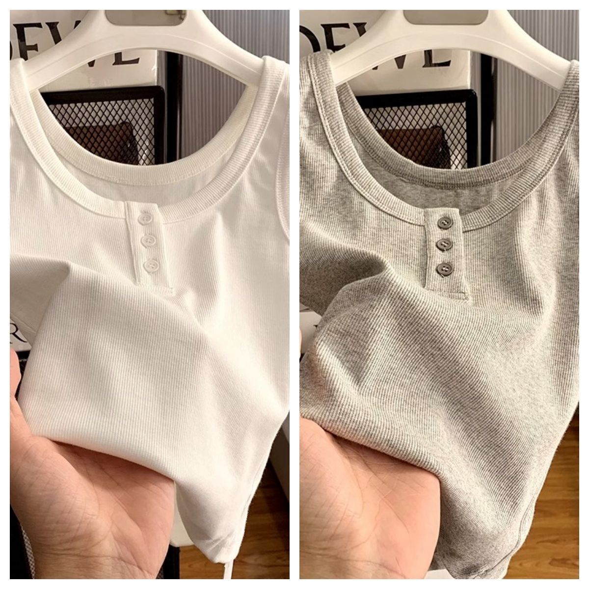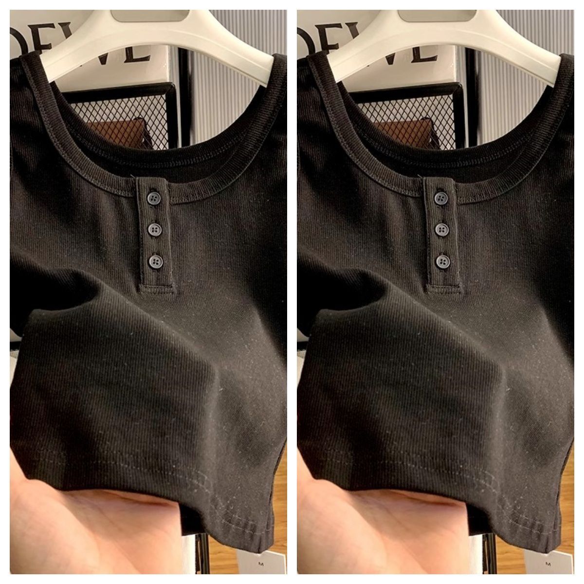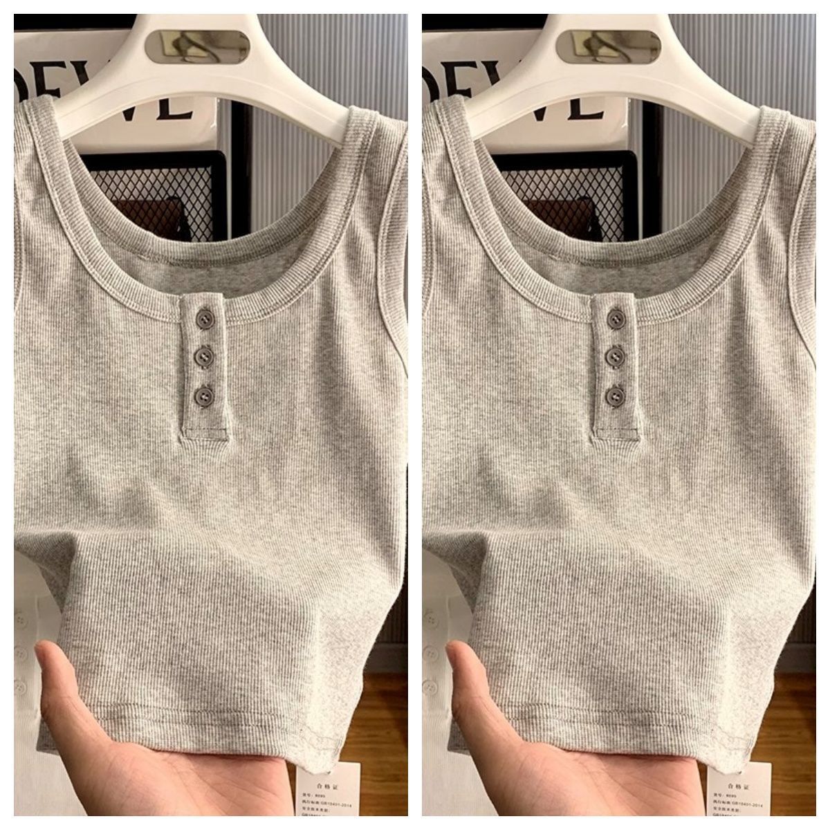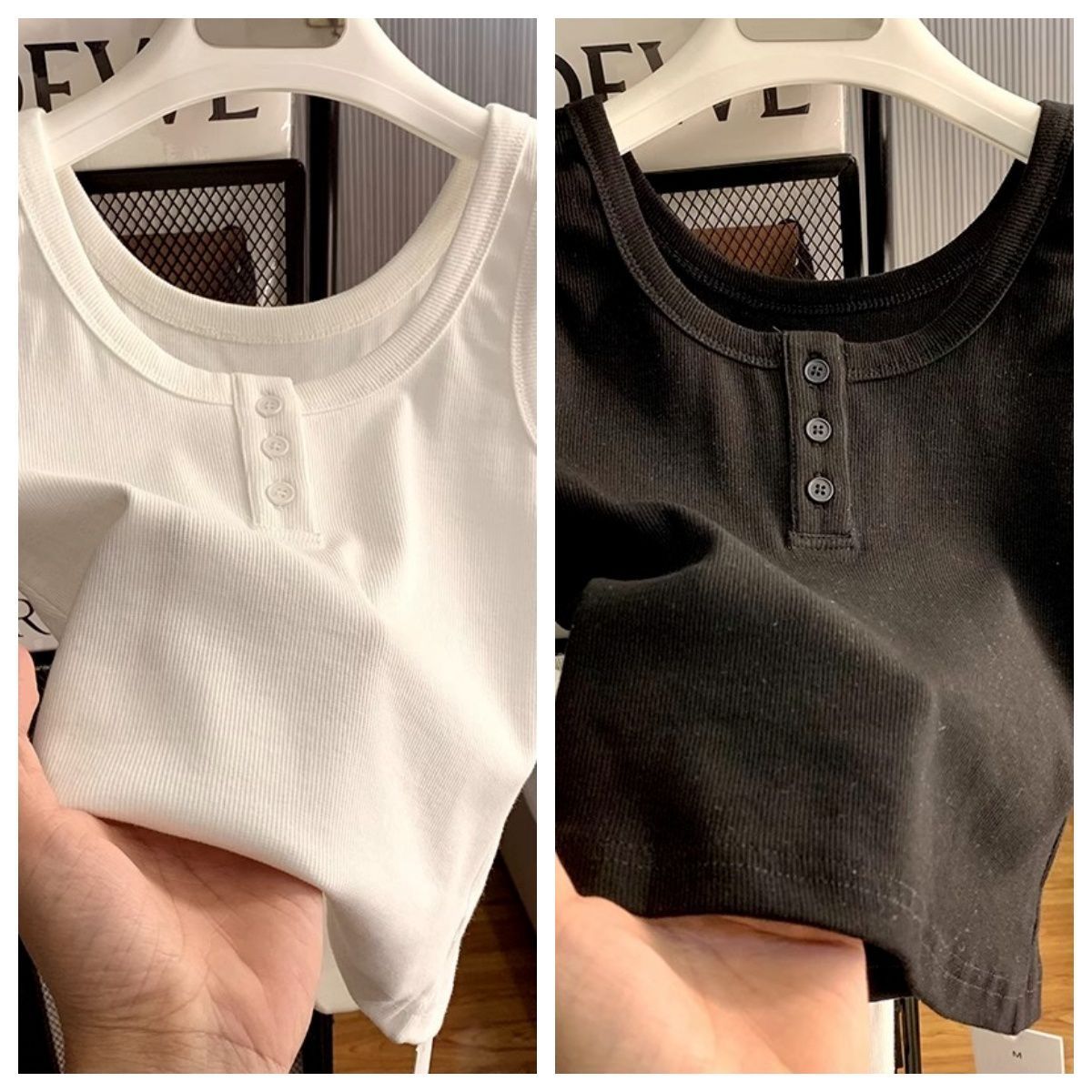 吊带背心女纽扣螺纹夏季甜辣风打底衫修身显瘦短款上衣背心女外穿