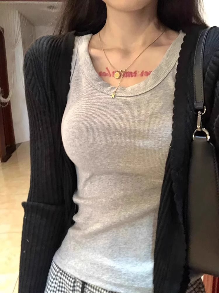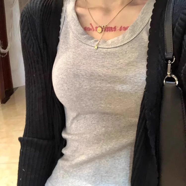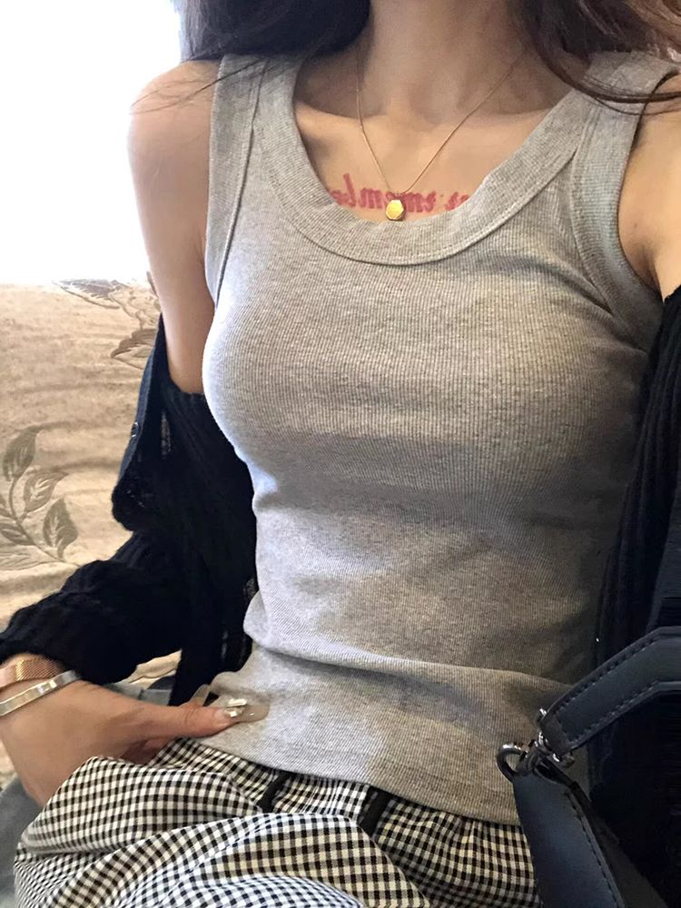 灰色辣妹莫代尔螺纹吊带背心女夏季新款修身显瘦小众无袖内搭上衣