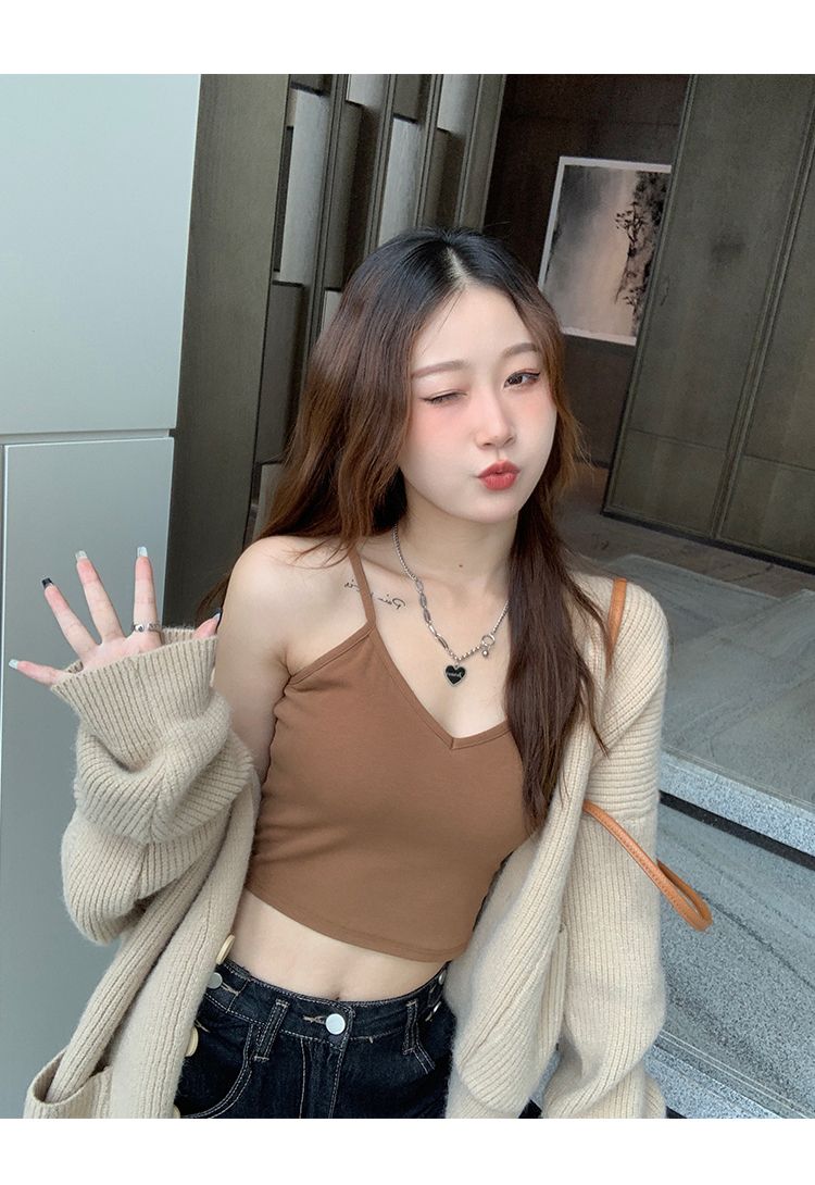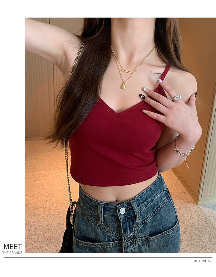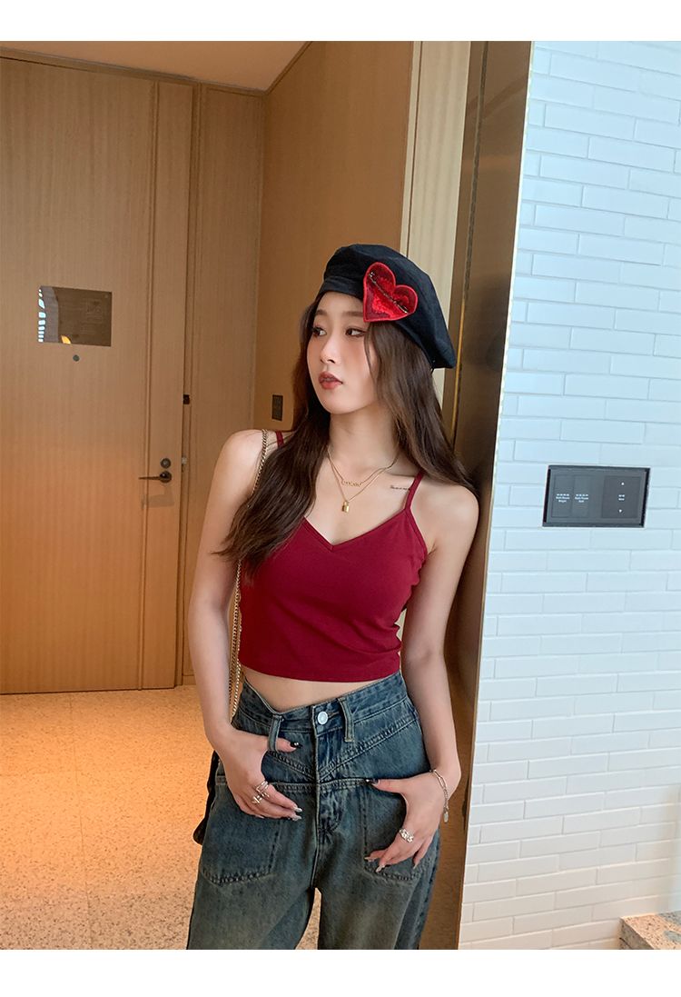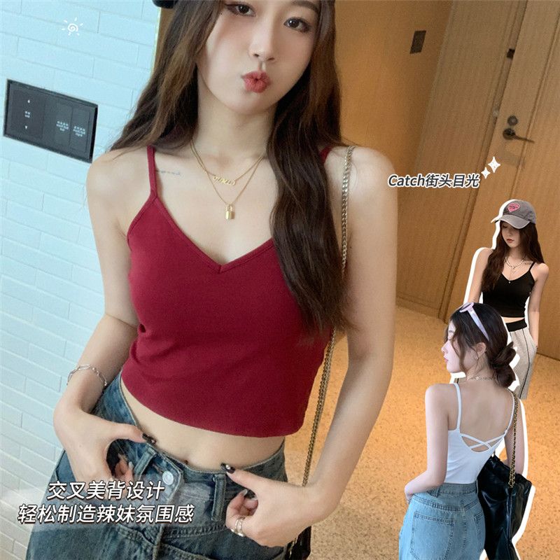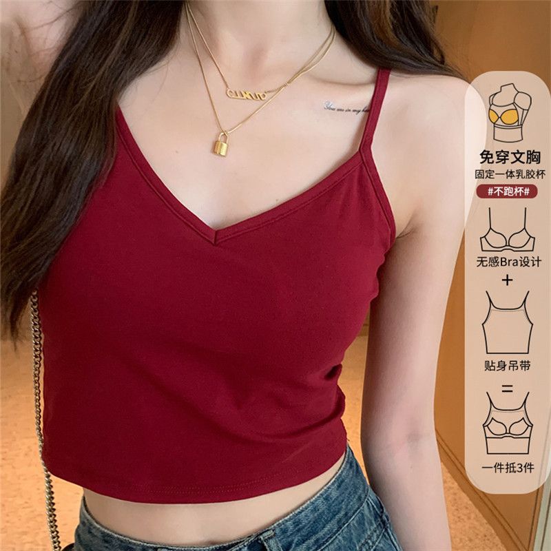 法式红色美背吊带带胸垫背心女夏外穿内搭2024新款v领甜辣小上衣
